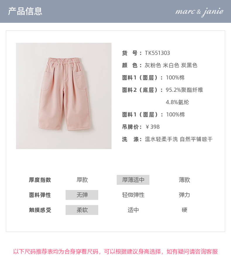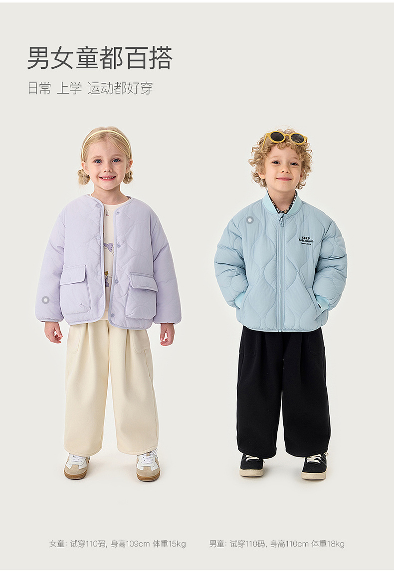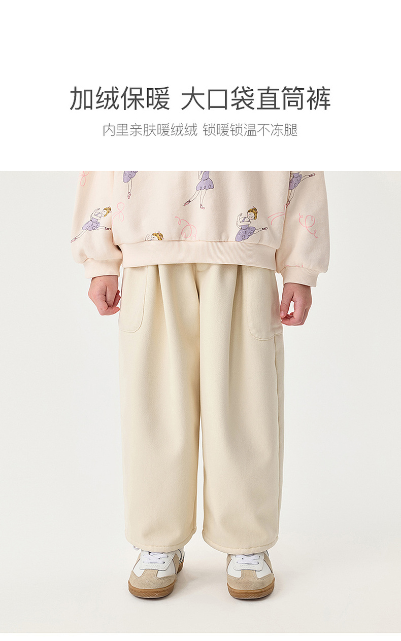 【奥利绒】马克珍妮男女童加绒大口袋直筒裤2025年秋冬新款551303