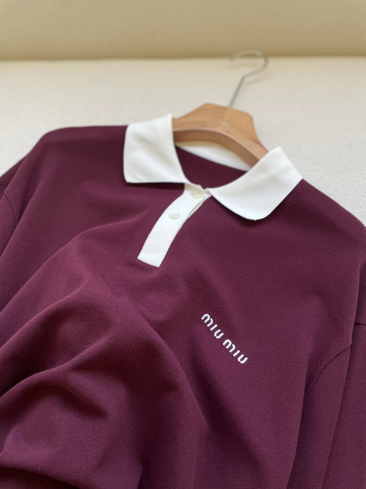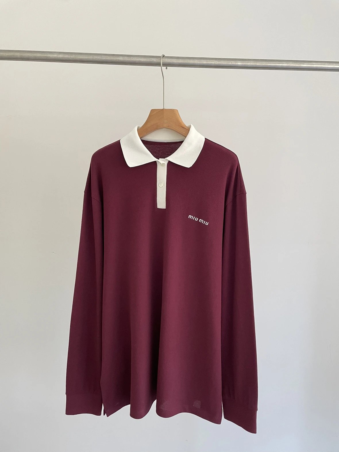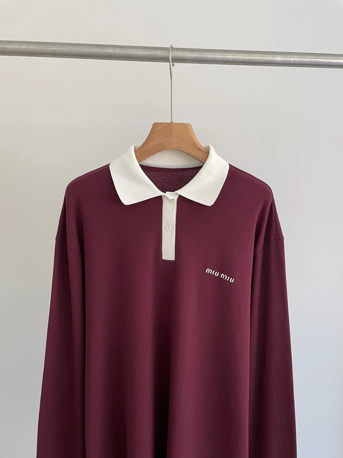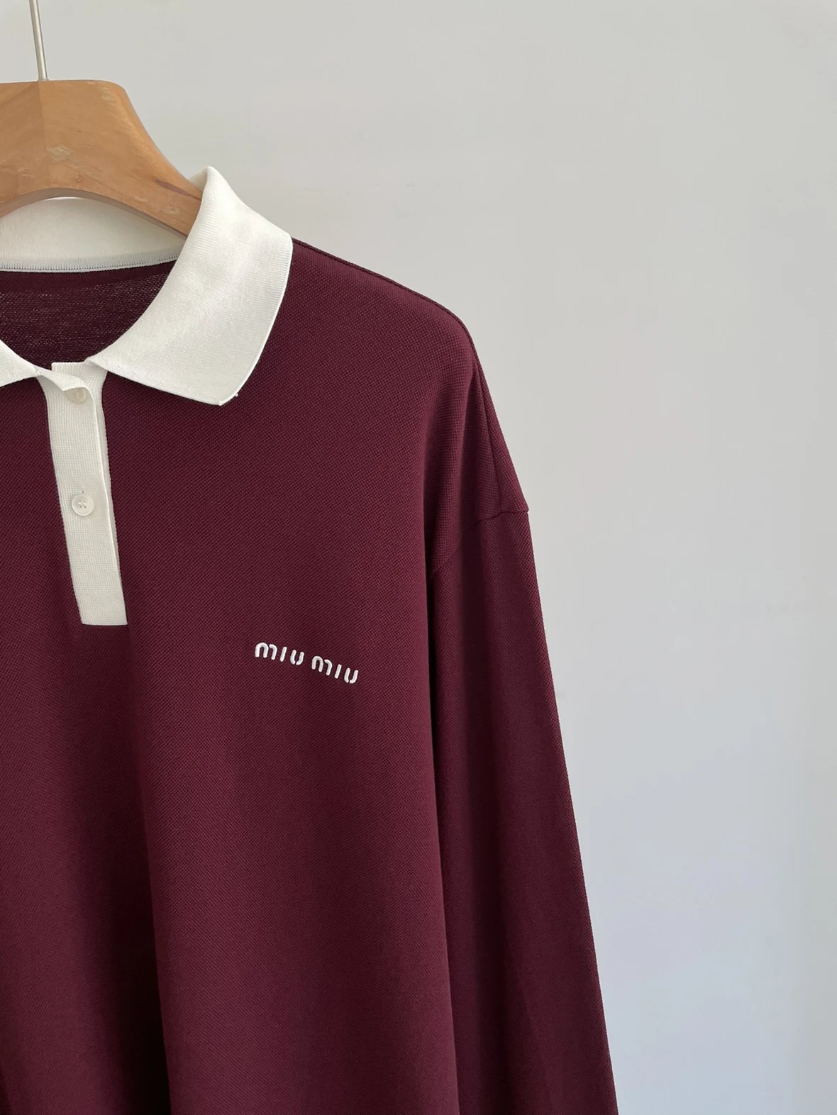 重磅渠道!miu酒红色polo 宽松版型 面料60支双股棉领子针织工艺