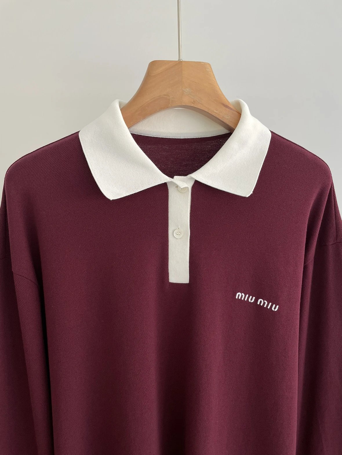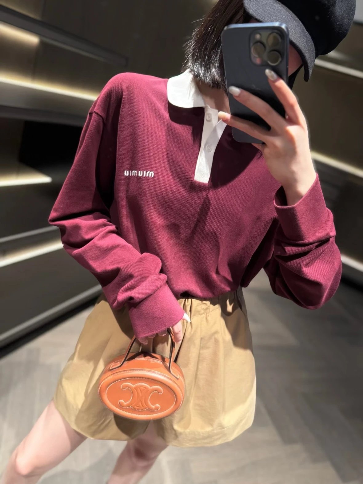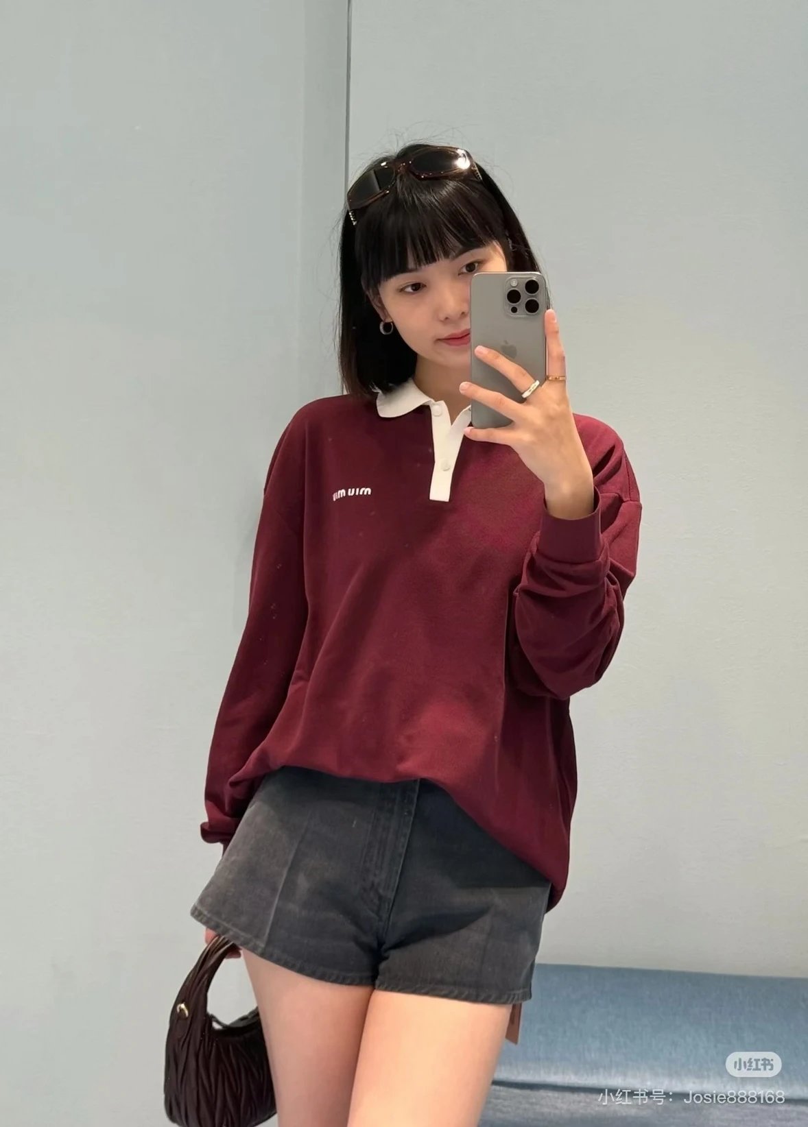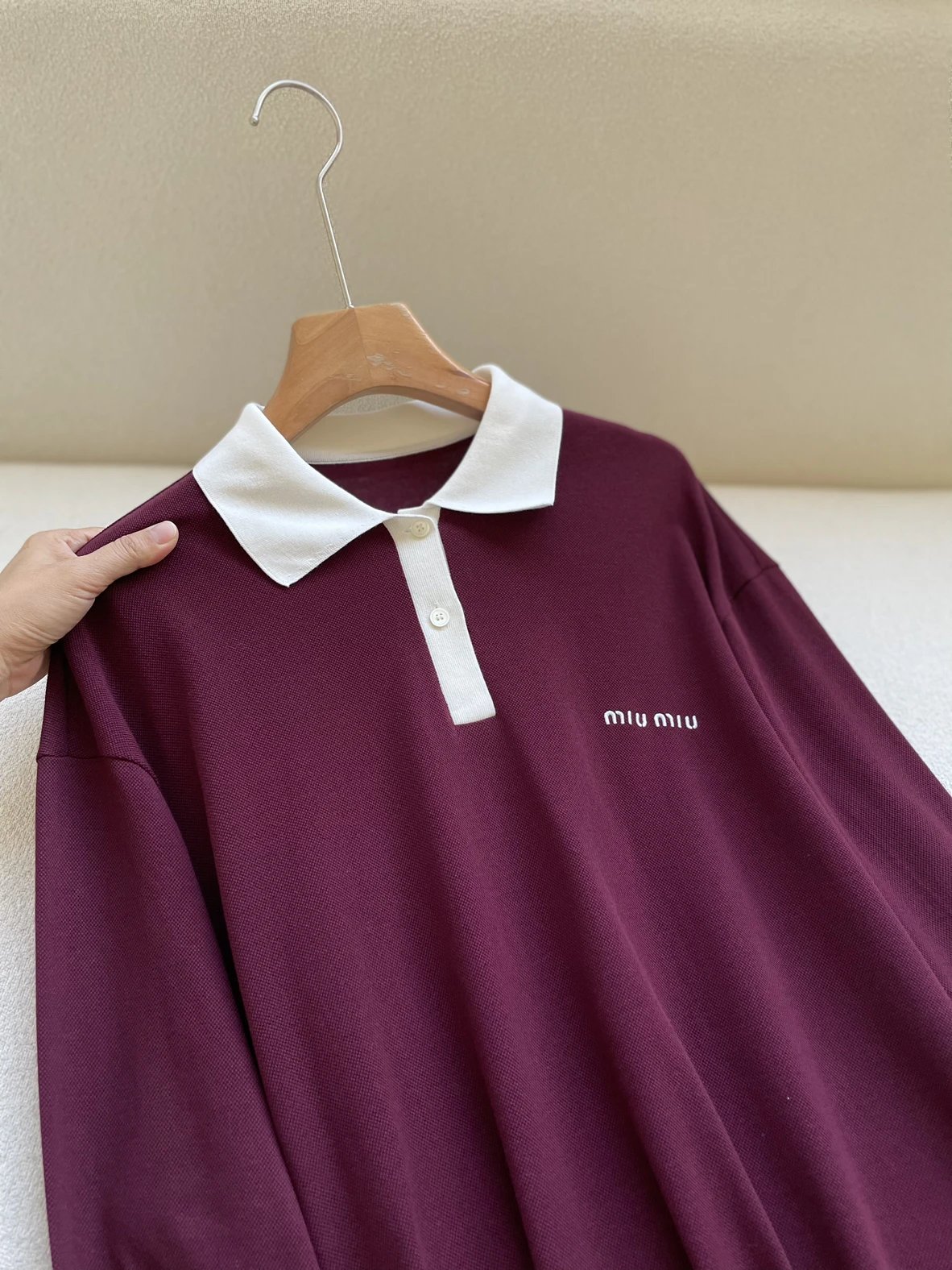 重磅渠道!miu酒红色polo 宽松版型 面料60支双股棉领子针织工艺