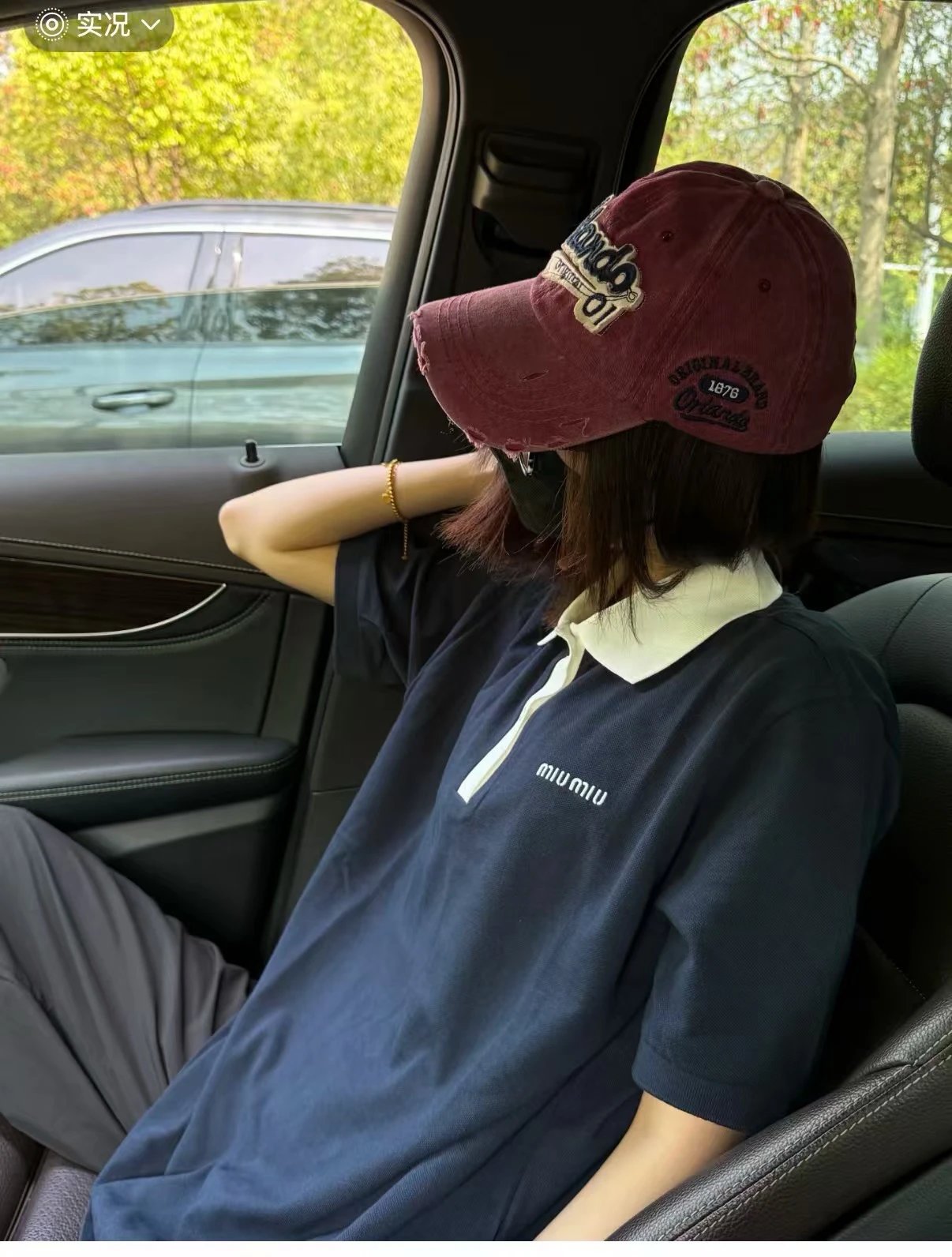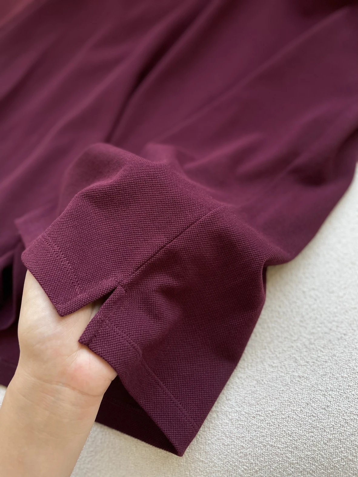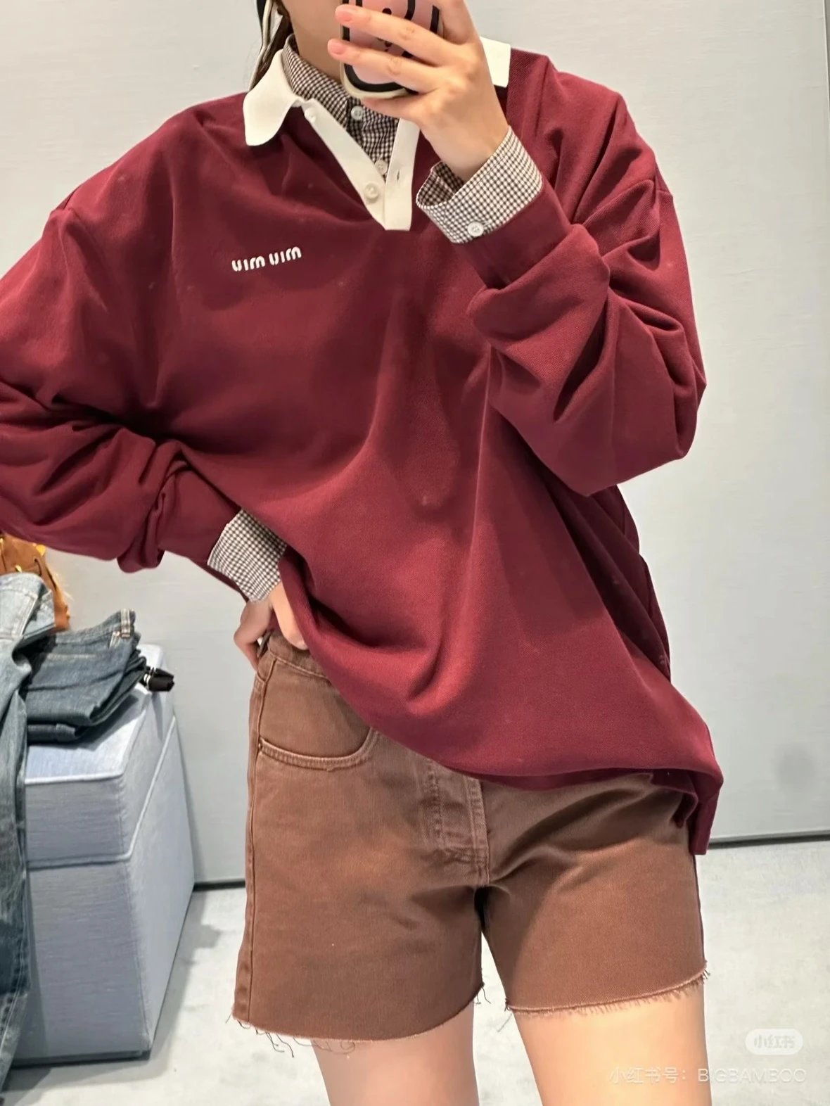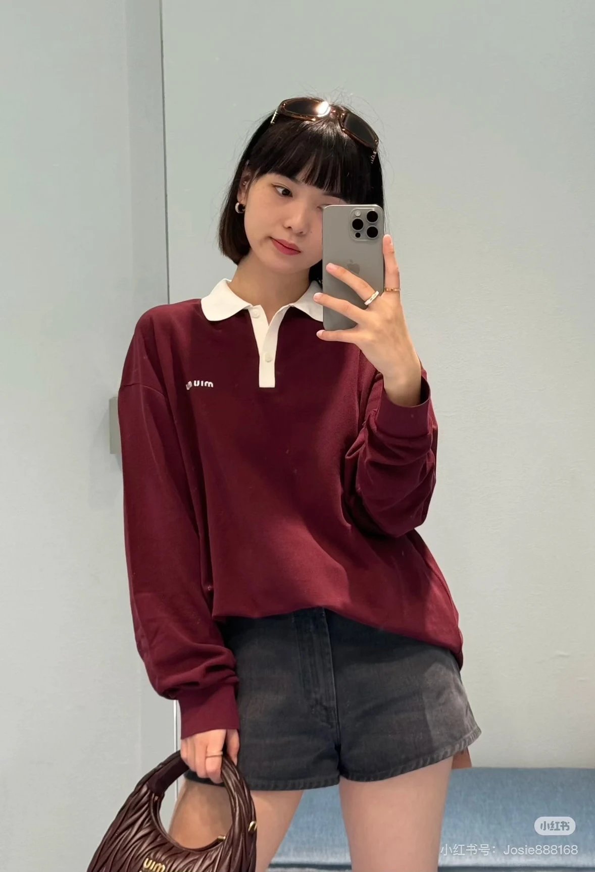 重磅渠道!miu酒红色polo 宽松版型 面料60支双股棉领子针织工艺