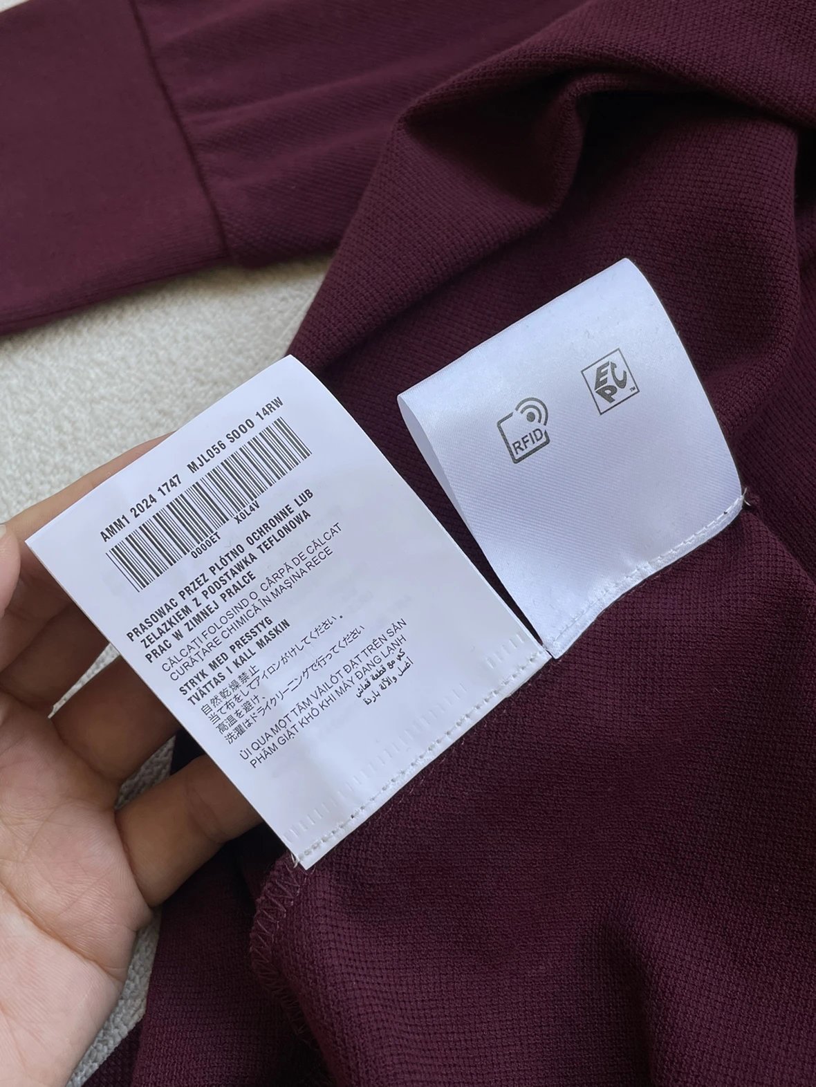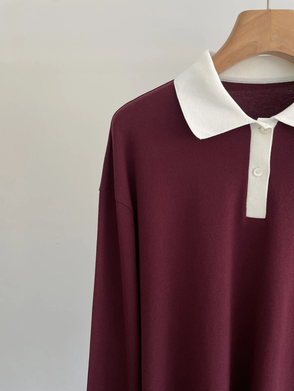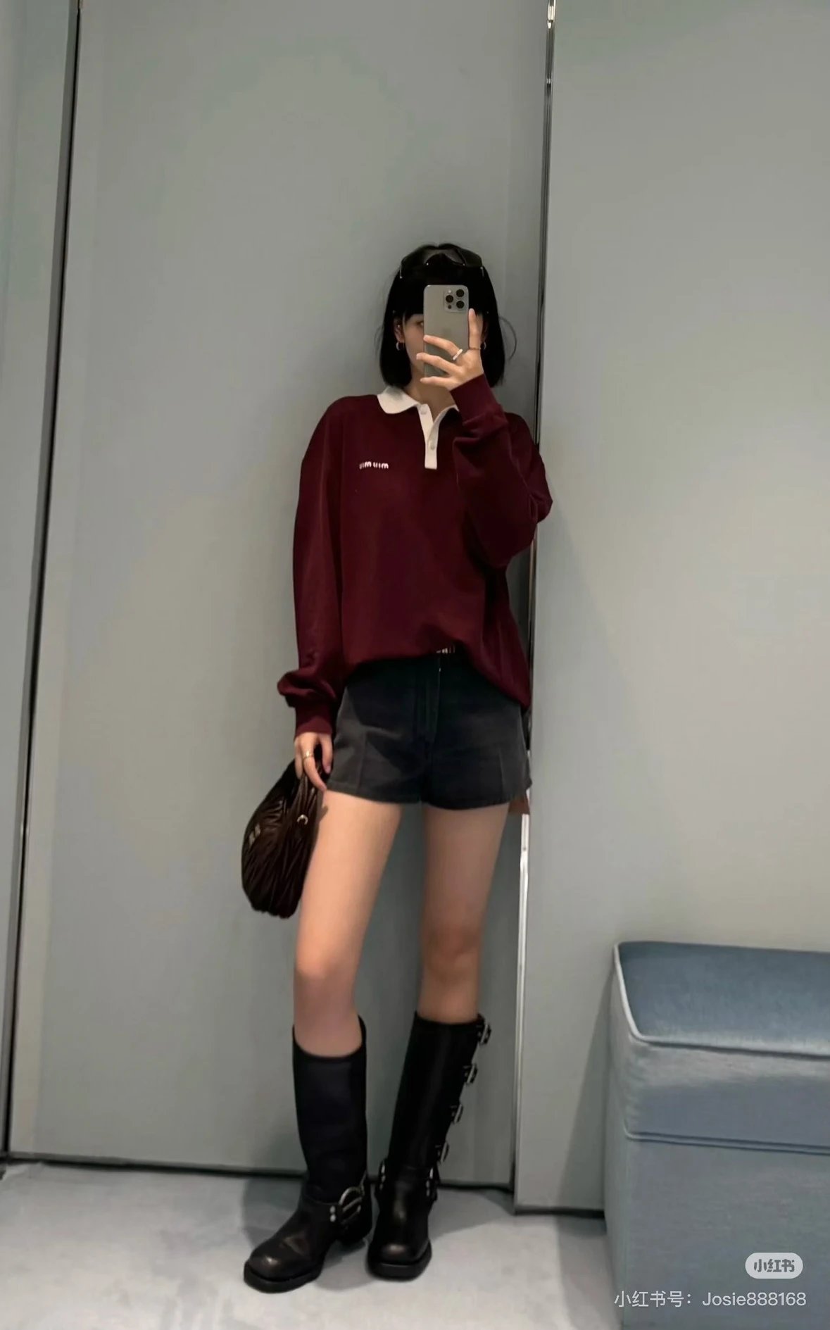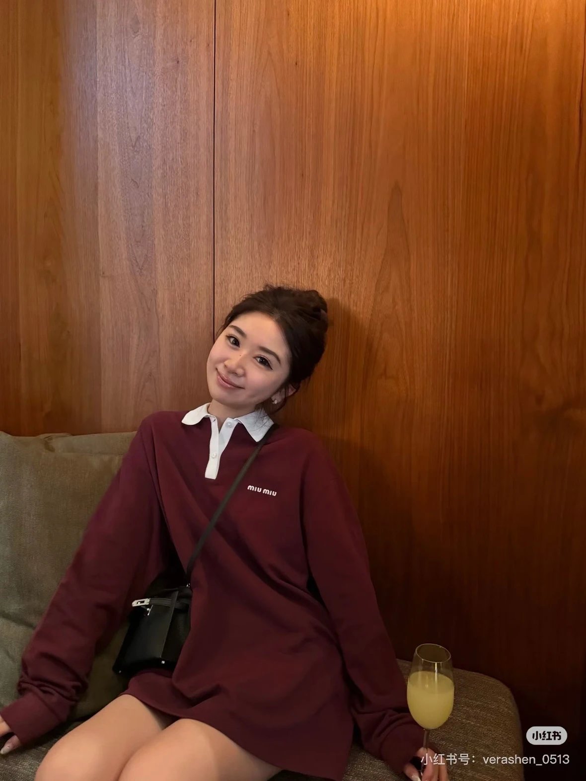 重磅渠道!miu酒红色polo 宽松版型 面料60支双股棉领子针织工艺