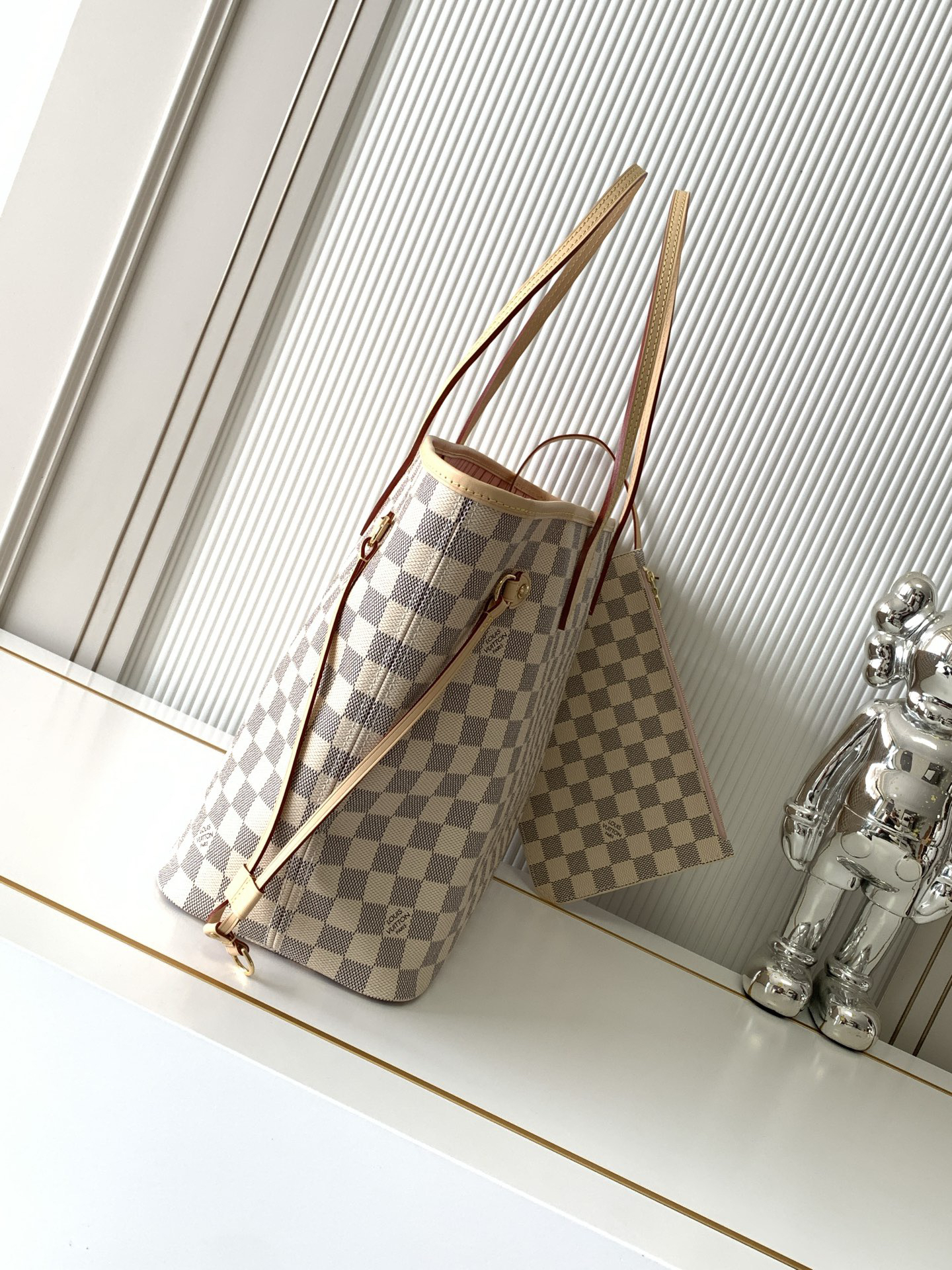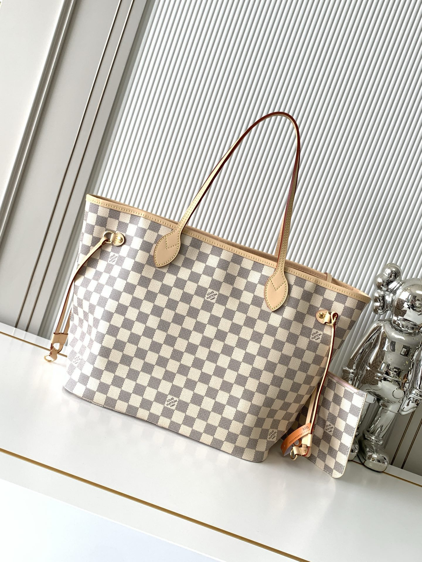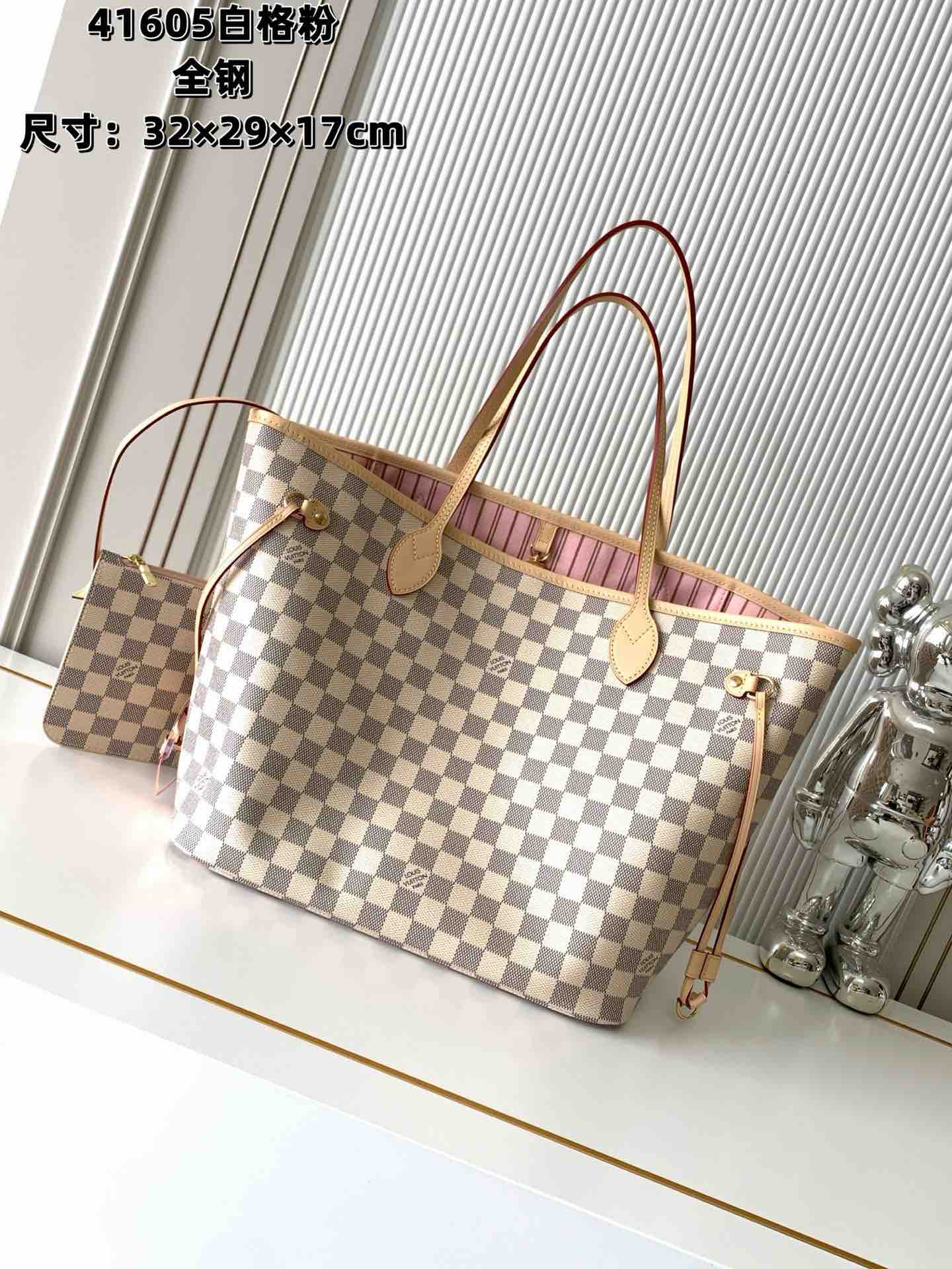 秋冬特惠💰1290 渠道级LV【全钢五金 变码芯片】te级LV 全套包装 41605白格 经典购物袋 中号 路易威登新款 Neverfull 全新演绎经典手袋,探索袋内精致细节。重新设计的内袋采用了清新的织物内衬和灵感源自路易威登档案馆的复古细节,最值得称道的莫过于可脱卸式拉链手包,它既可单独作为一只精致手拿包使用,亦可作为额外的口袋。 明快的内衬色调为 Monogram 经典帆布增加了更多活泼生动之感。