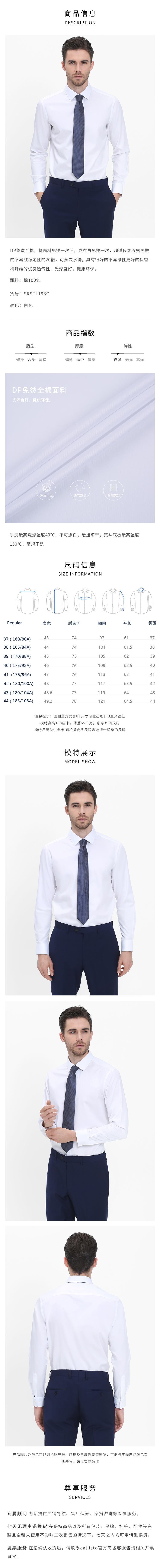 callisto白色DP免烫全棉意式领衬衫 SRSTL193C