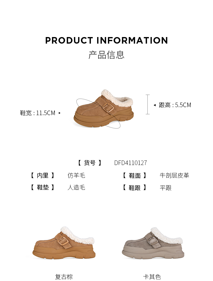 Dfuse迪芙斯2025冬季新款户外风雪地靴毛绒低帮大头勃肯靴DFD4110127