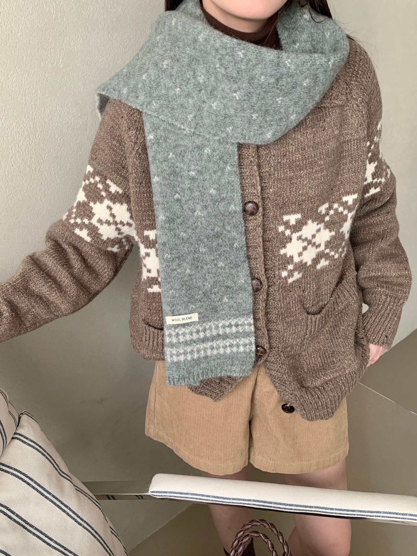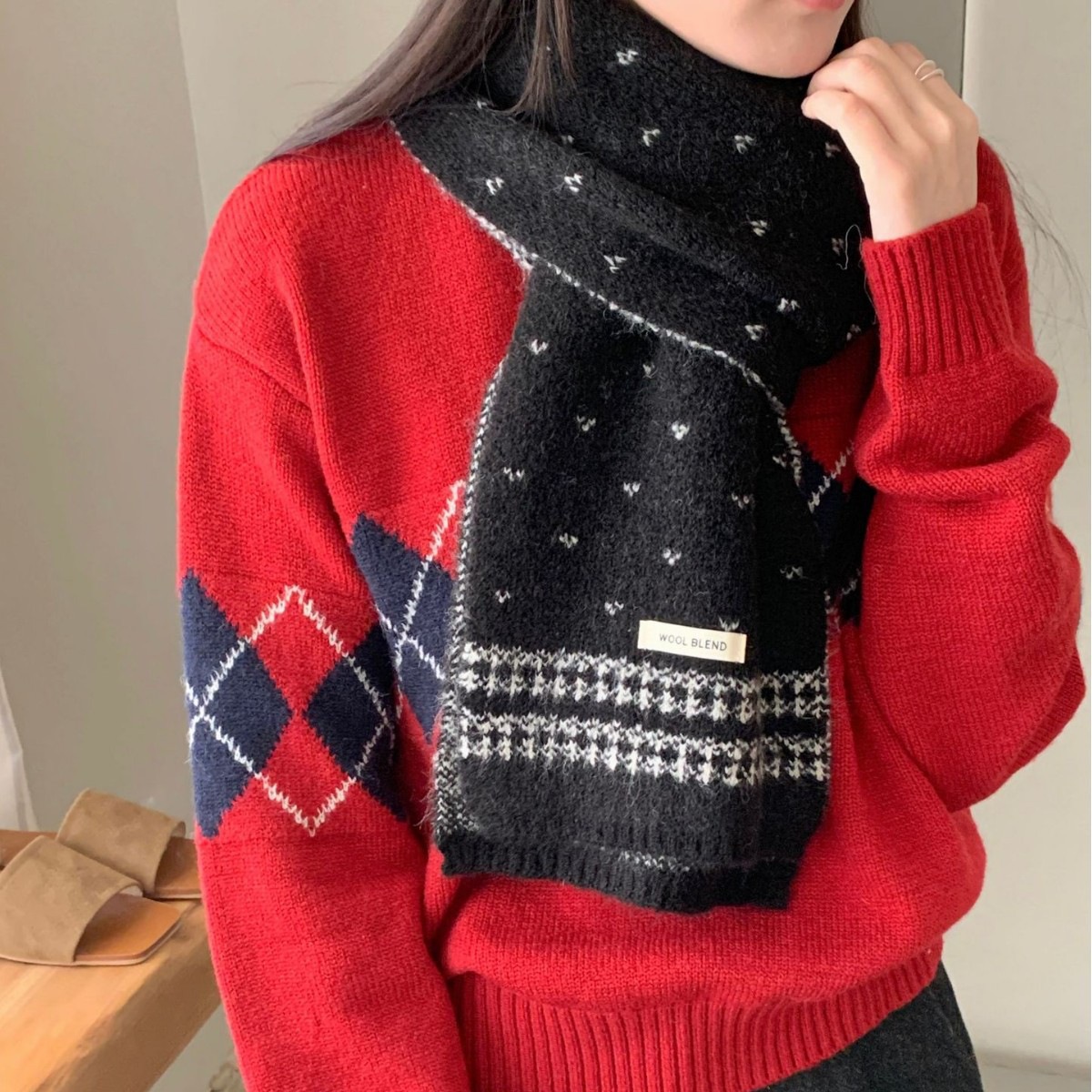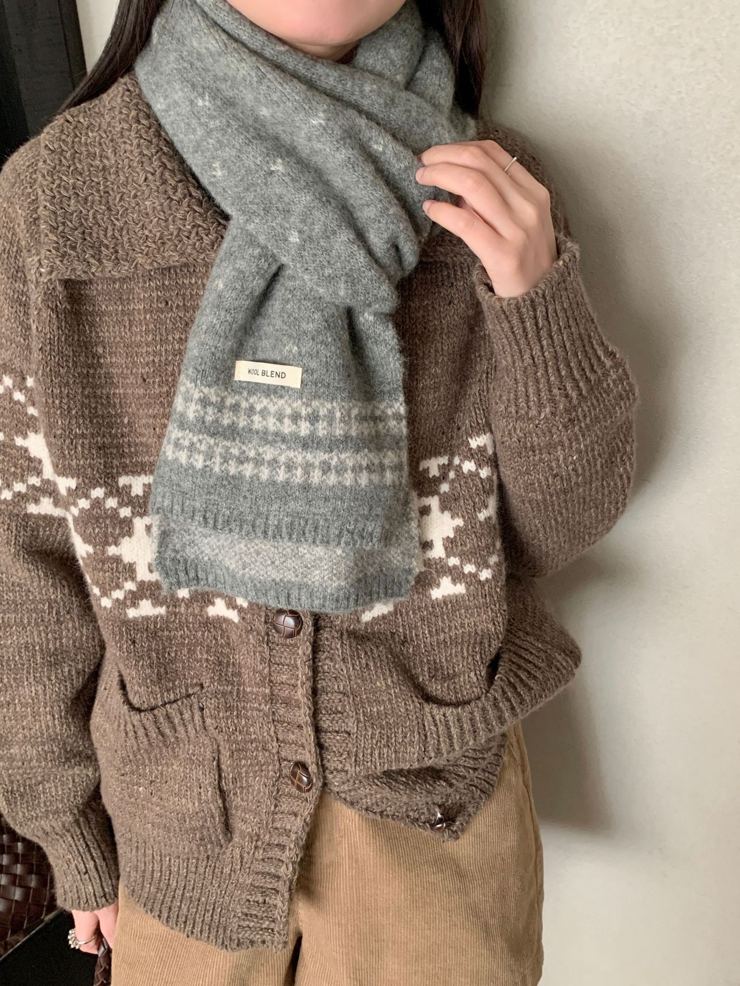 【YW】无忧购复古百搭费尔岛羊毛混纺女款围巾毛线针织冬季针织时尚潮保暖围脖(截单后3-5天发货)