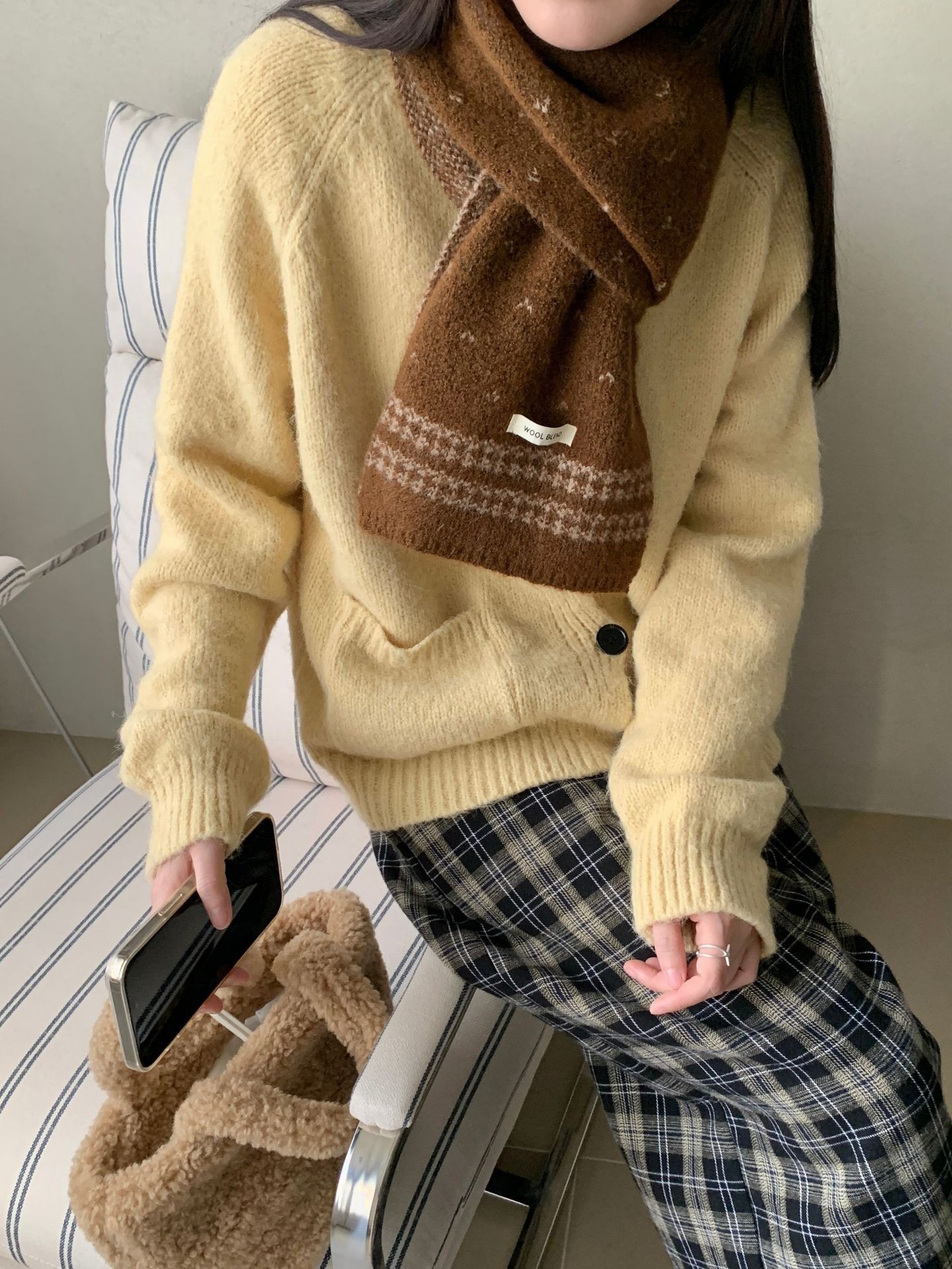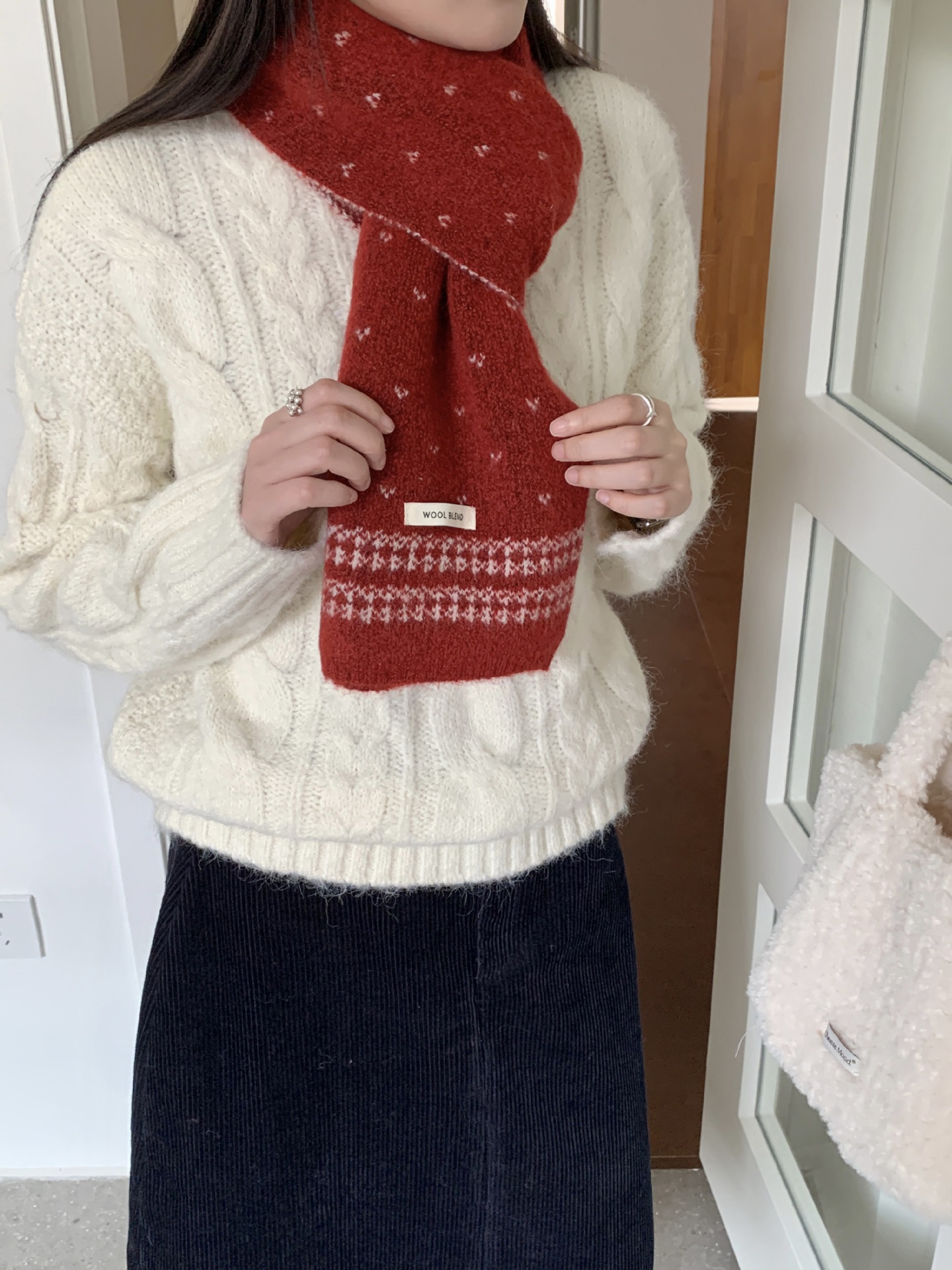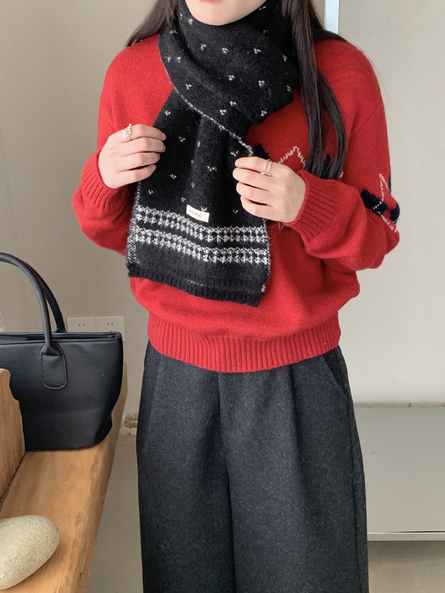 【YW】无忧购复古百搭费尔岛羊毛混纺女款围巾毛线针织冬季针织时尚潮保暖围脖(截单后3-5天发货)