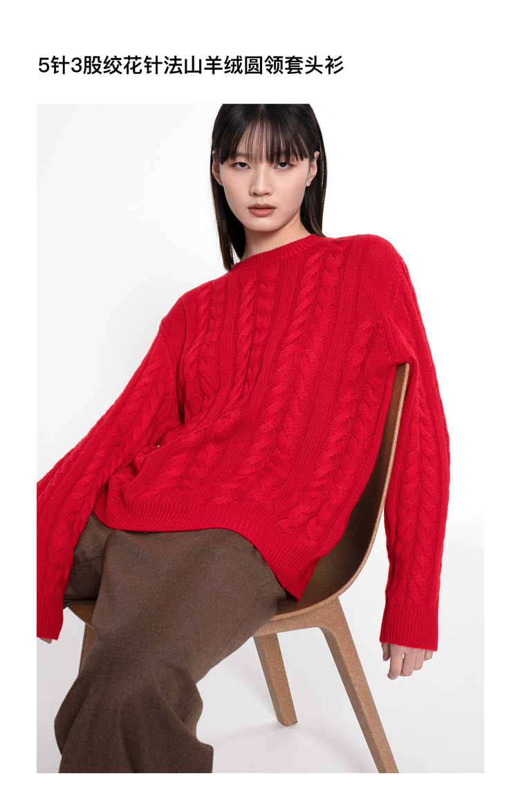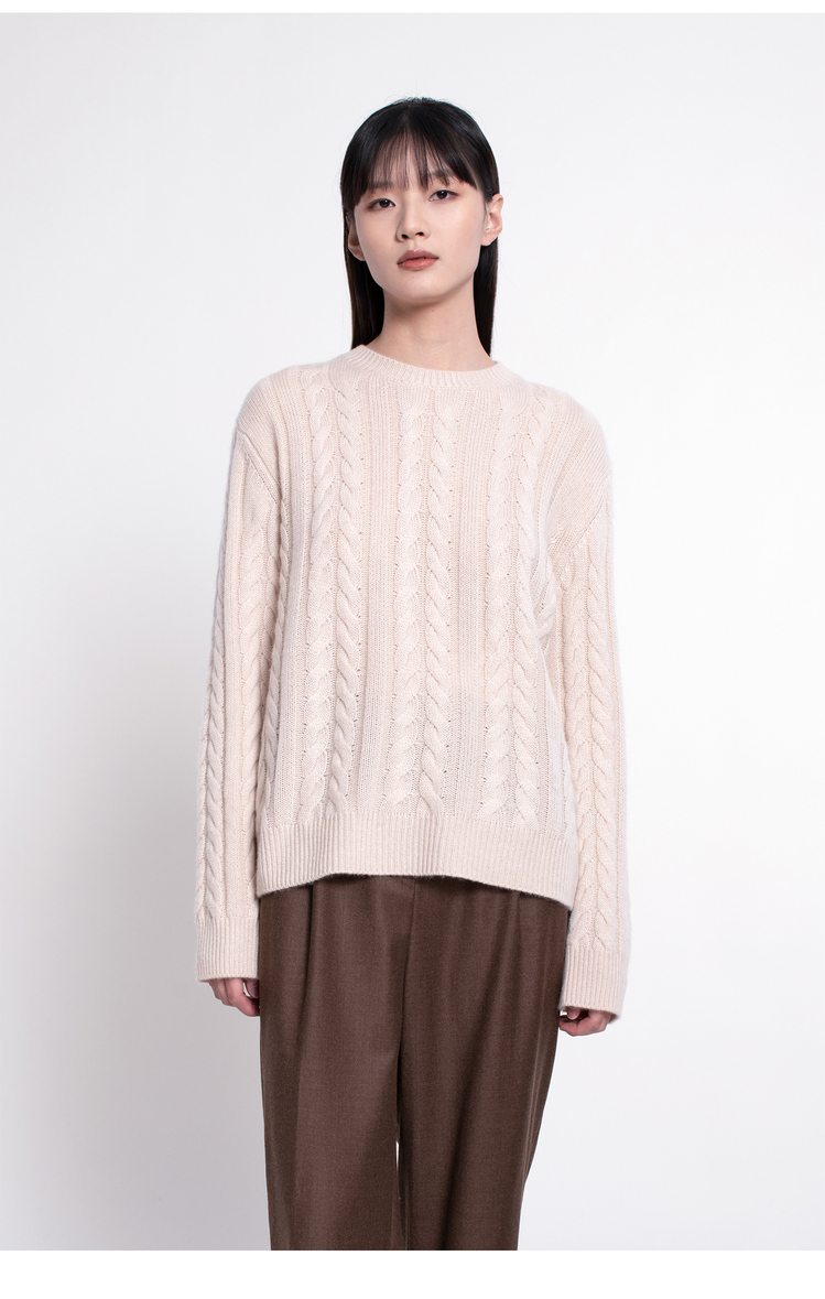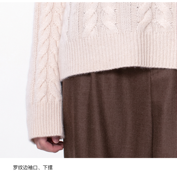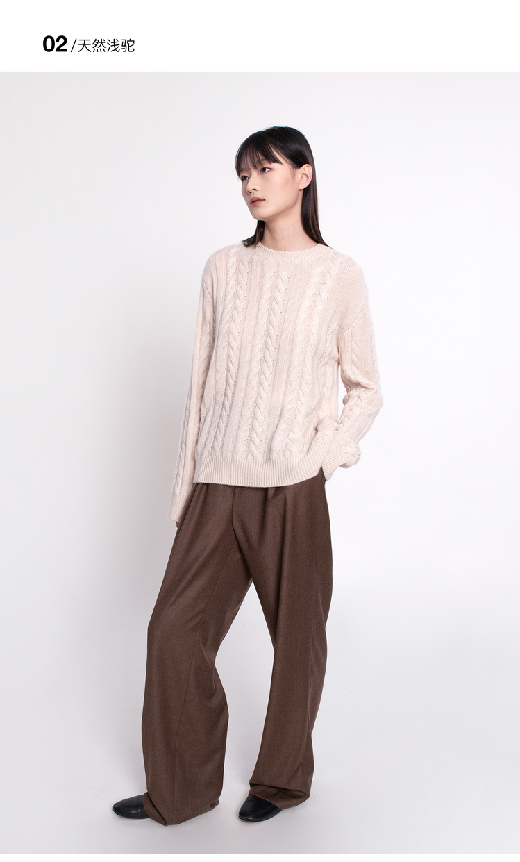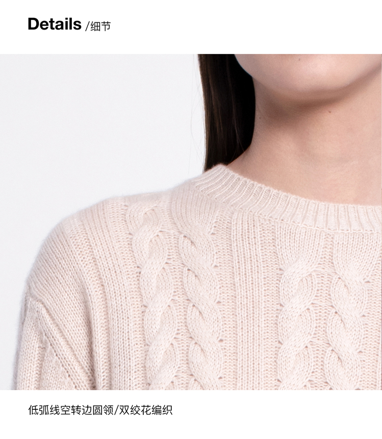女士2022新款纯山羊绒三股加厚绞花圆领套头衫
