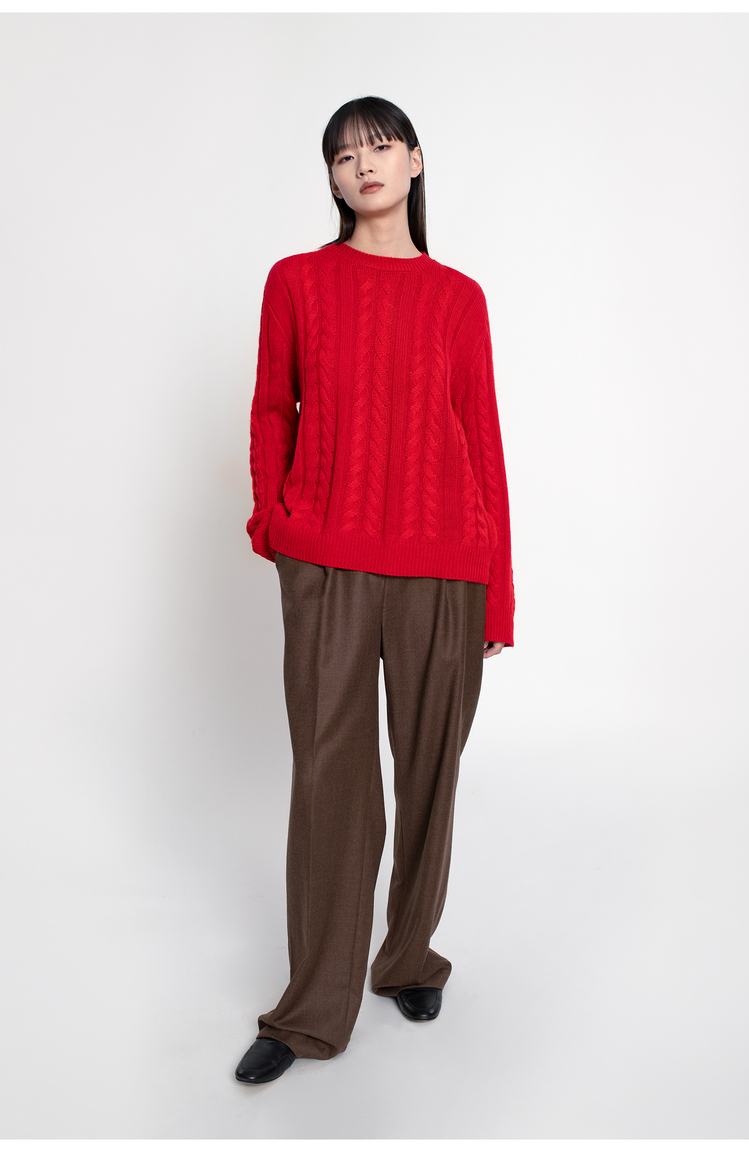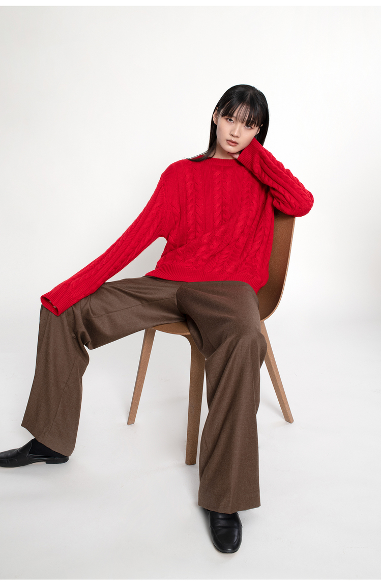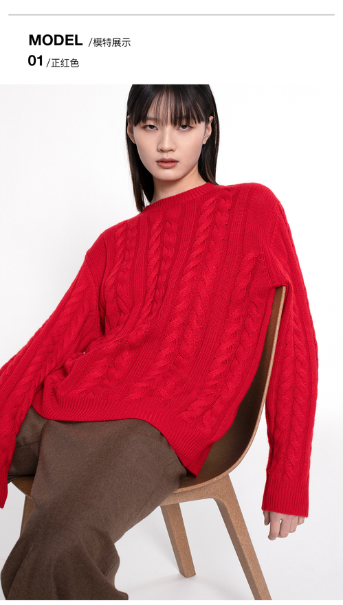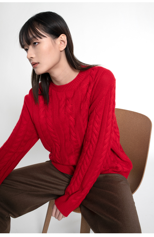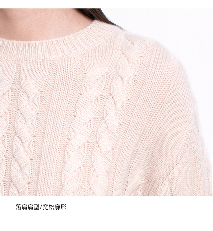 女士2022新款纯山羊绒三股加厚绞花圆领套头衫