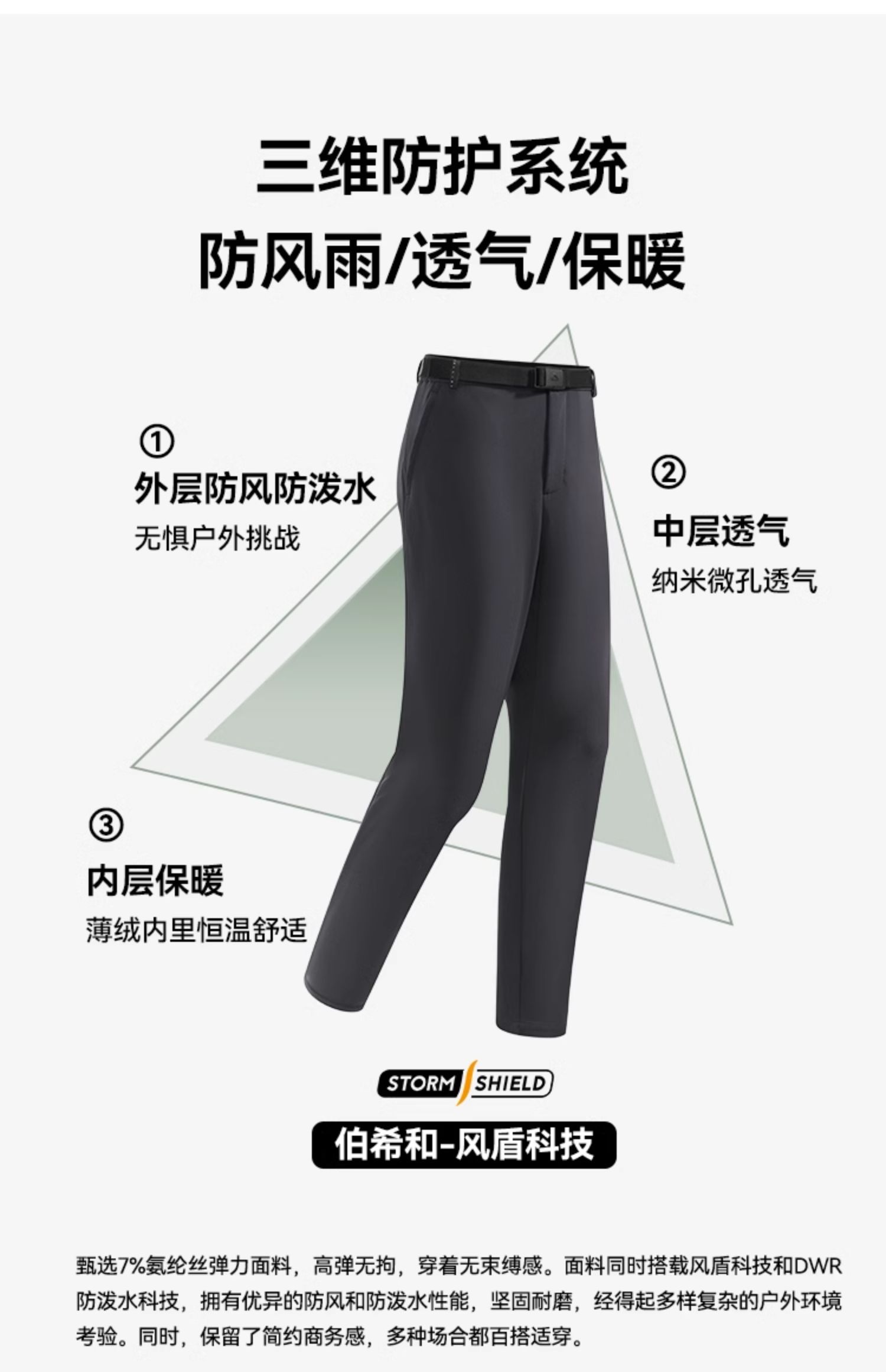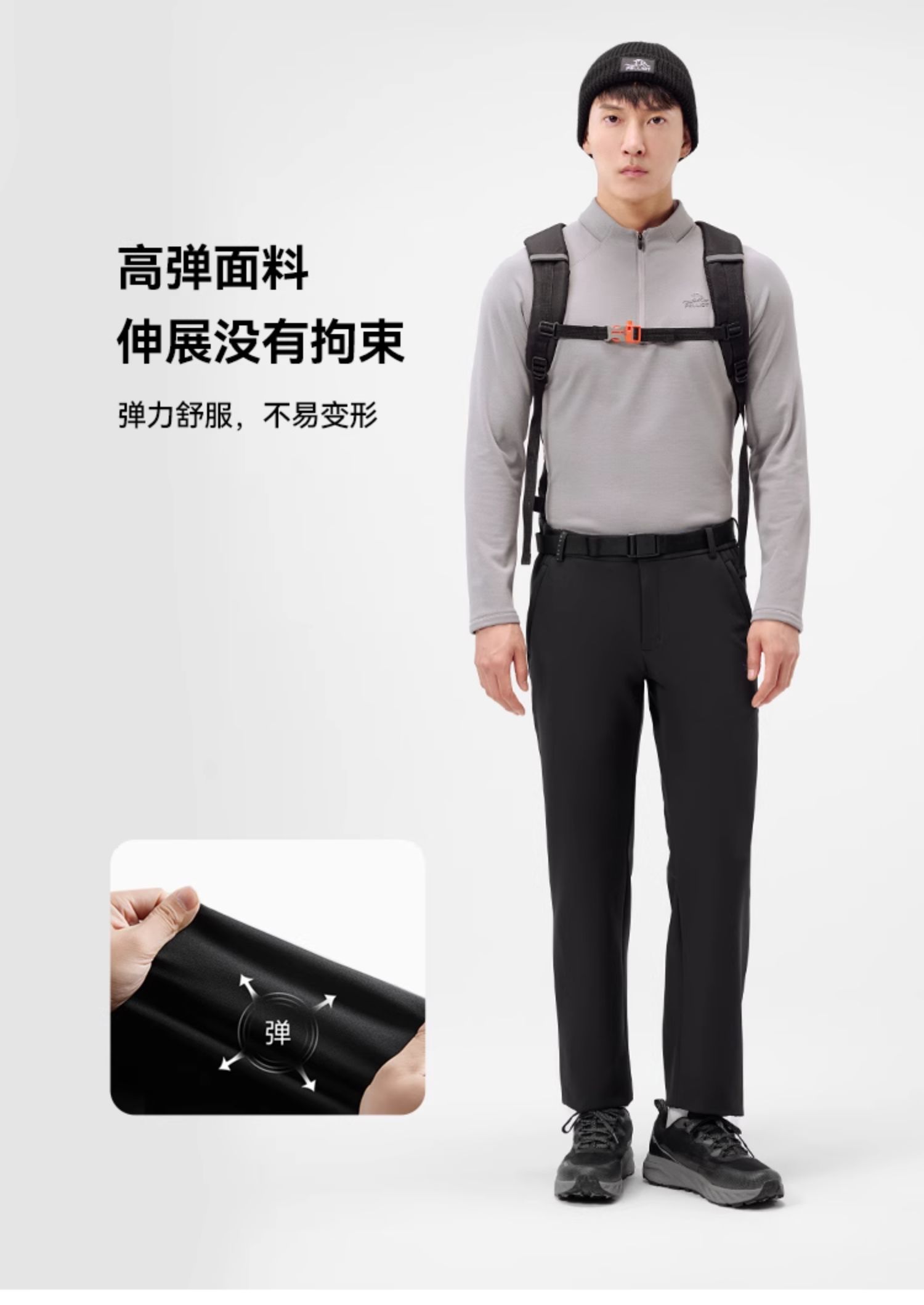 伯希和户外软壳裤男25新款防风防泼水徒步登山裤高弹舒适休闲长裤