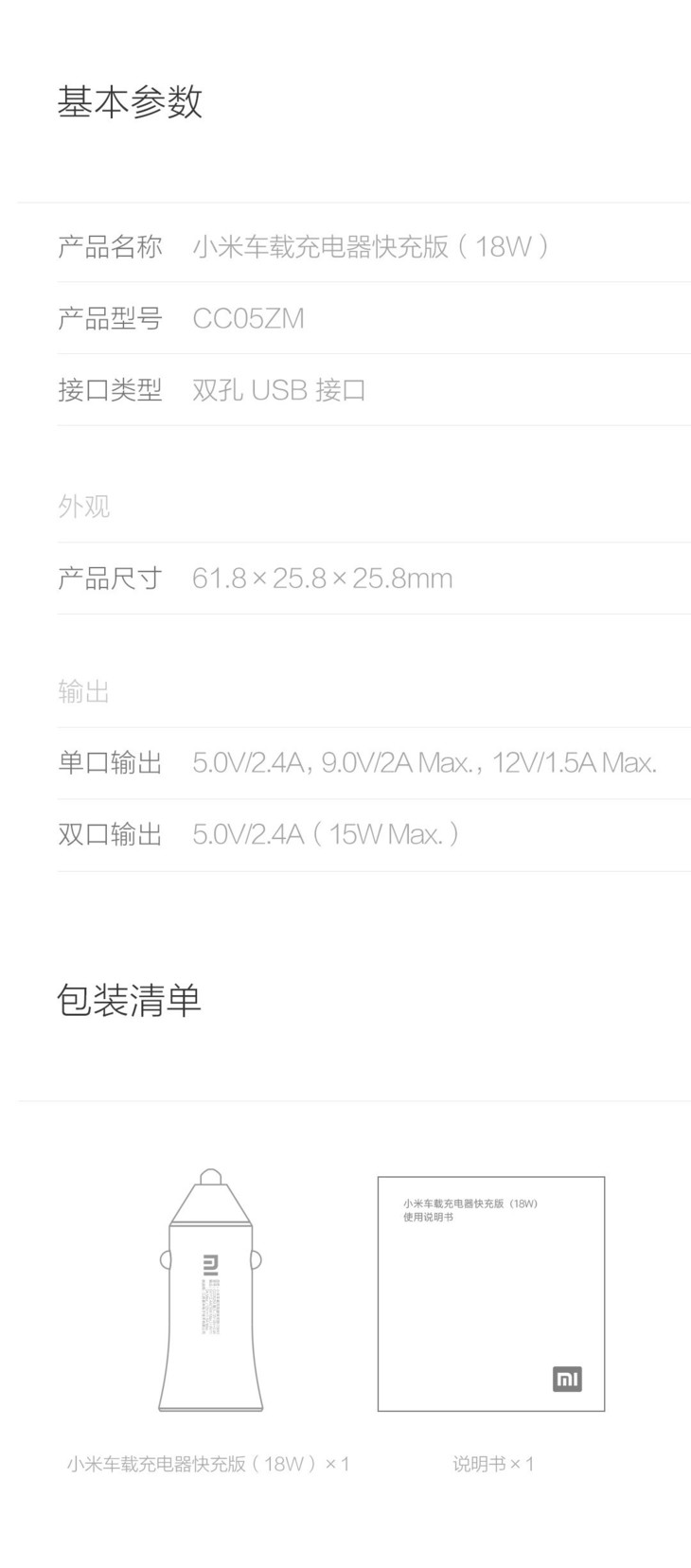 小米车载充电器快充版(18W) 银色