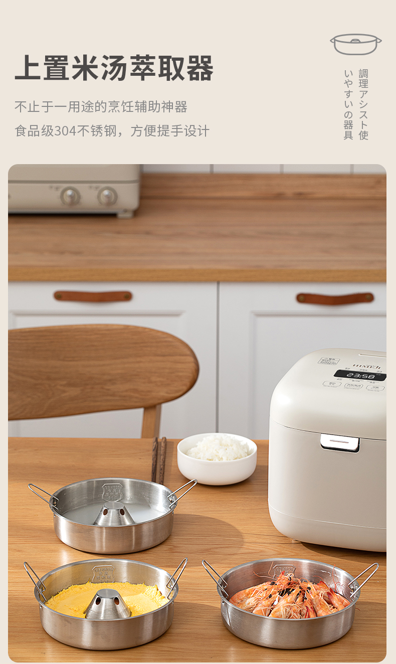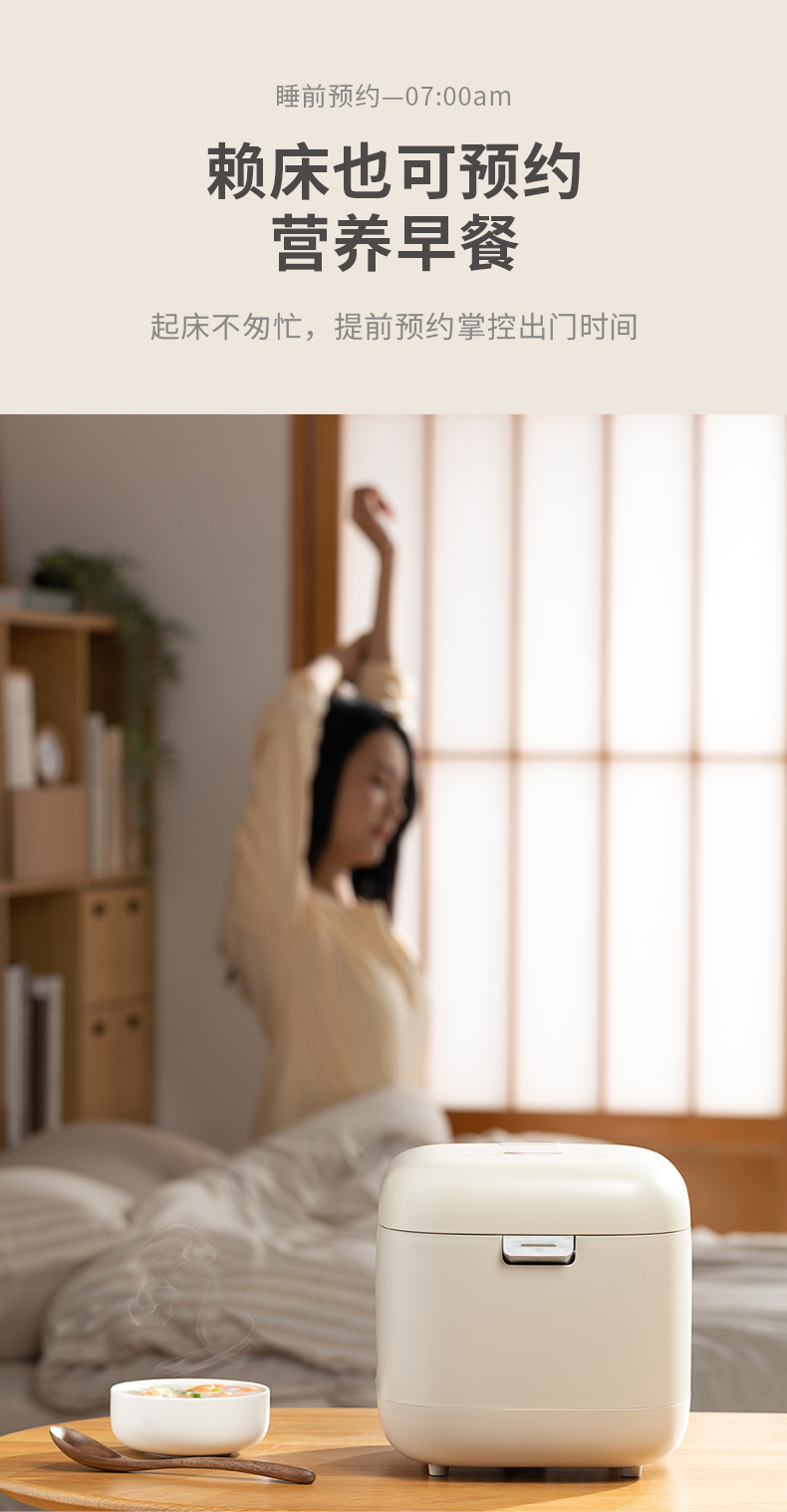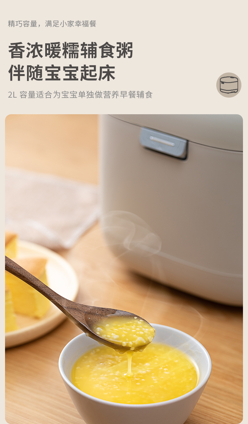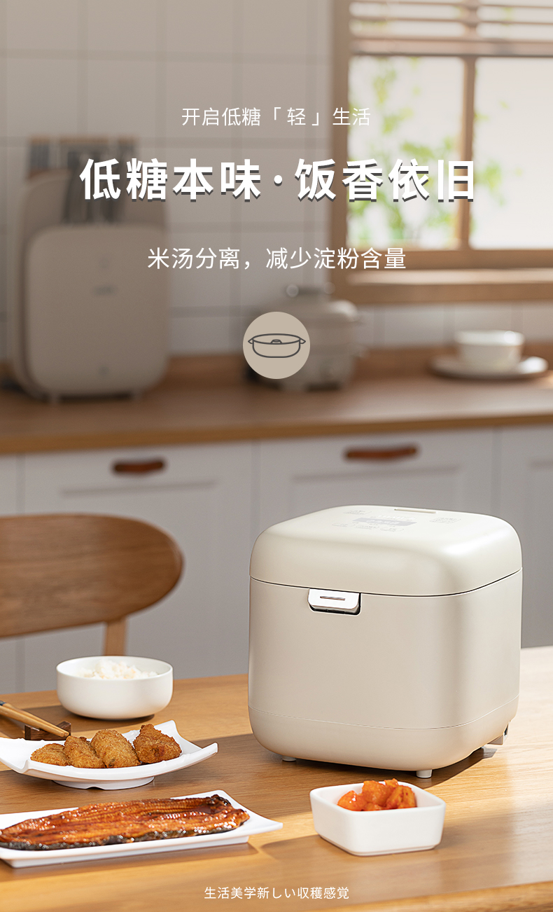 【低糖本味 饭香依旧 】倾厨迷你低糖饭煲2L 米汤萃取器304不锈钢 加厚精铁内胆 一体触屏面板 智能菜单 24h预约 上下NTC双控温探头 汤粥防溢出