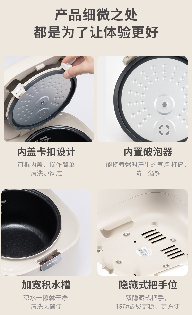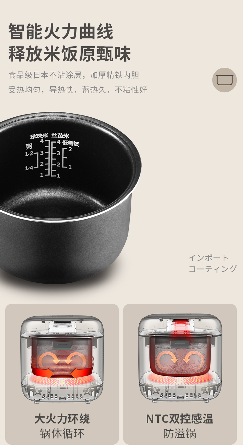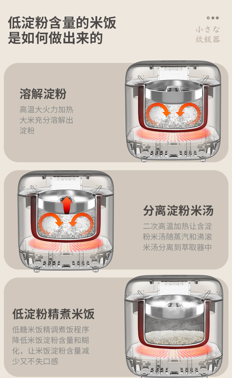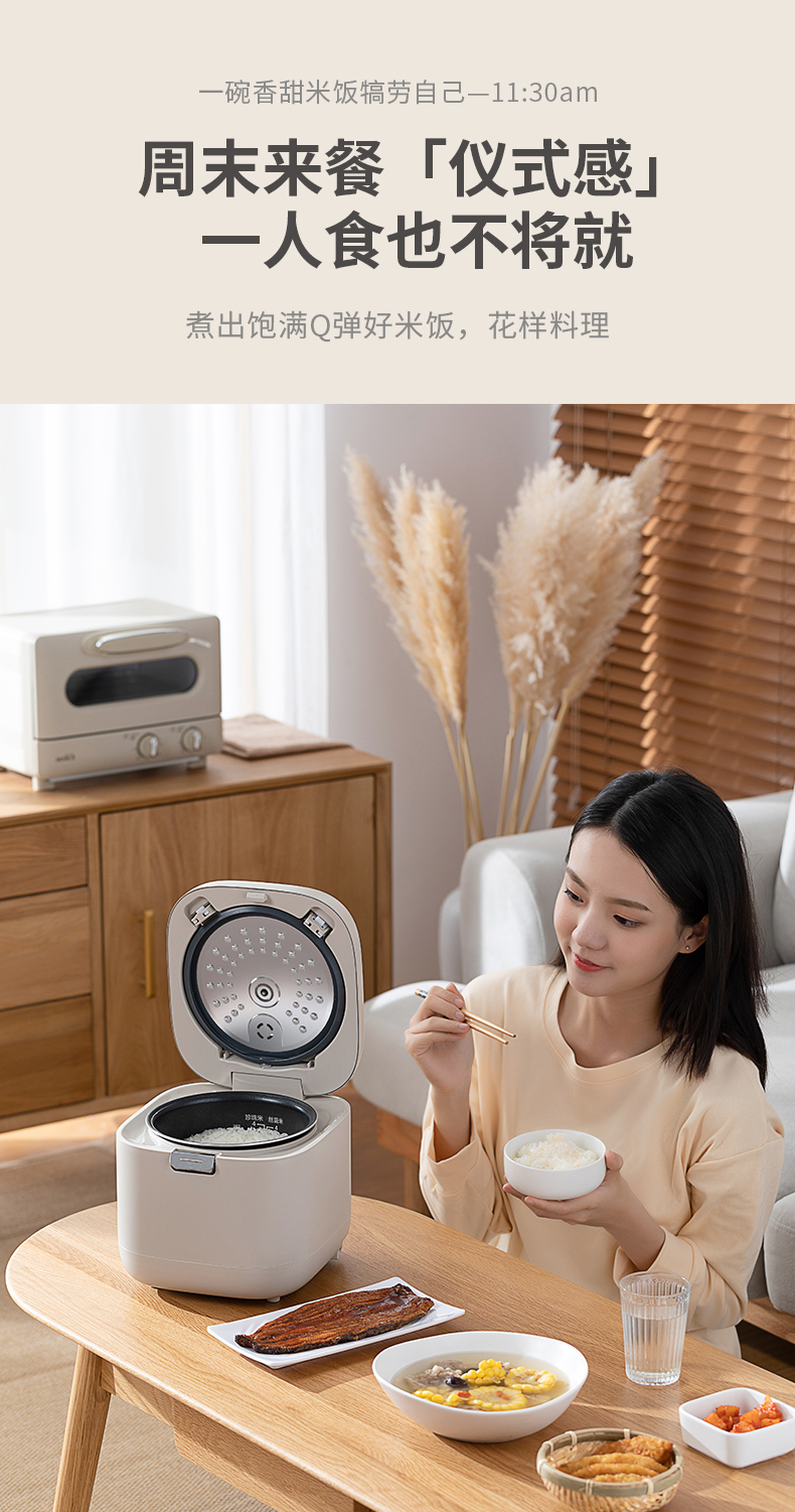 【低糖本味 饭香依旧 】倾厨迷你低糖饭煲2L 米汤萃取器304不锈钢 加厚精铁内胆 一体触屏面板 智能菜单 24h预约 上下NTC双控温探头 汤粥防溢出
