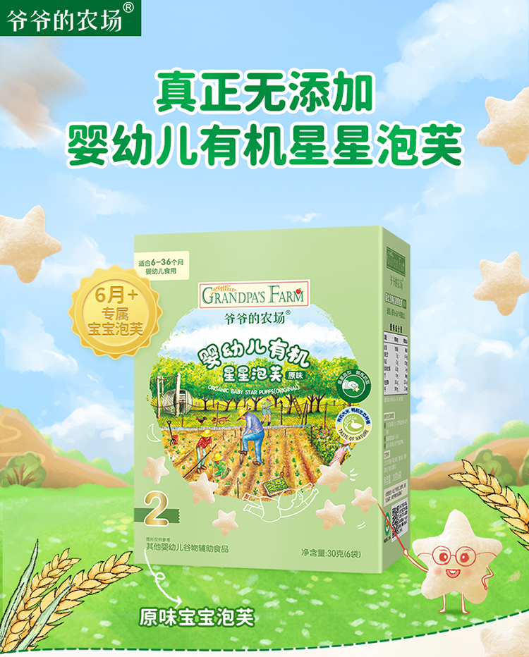 爷爷的农场 原味鲜虾片39g*2+泡芙30g*2