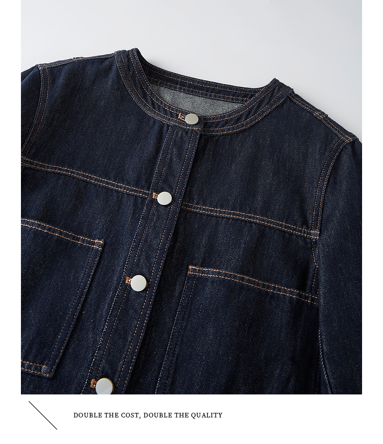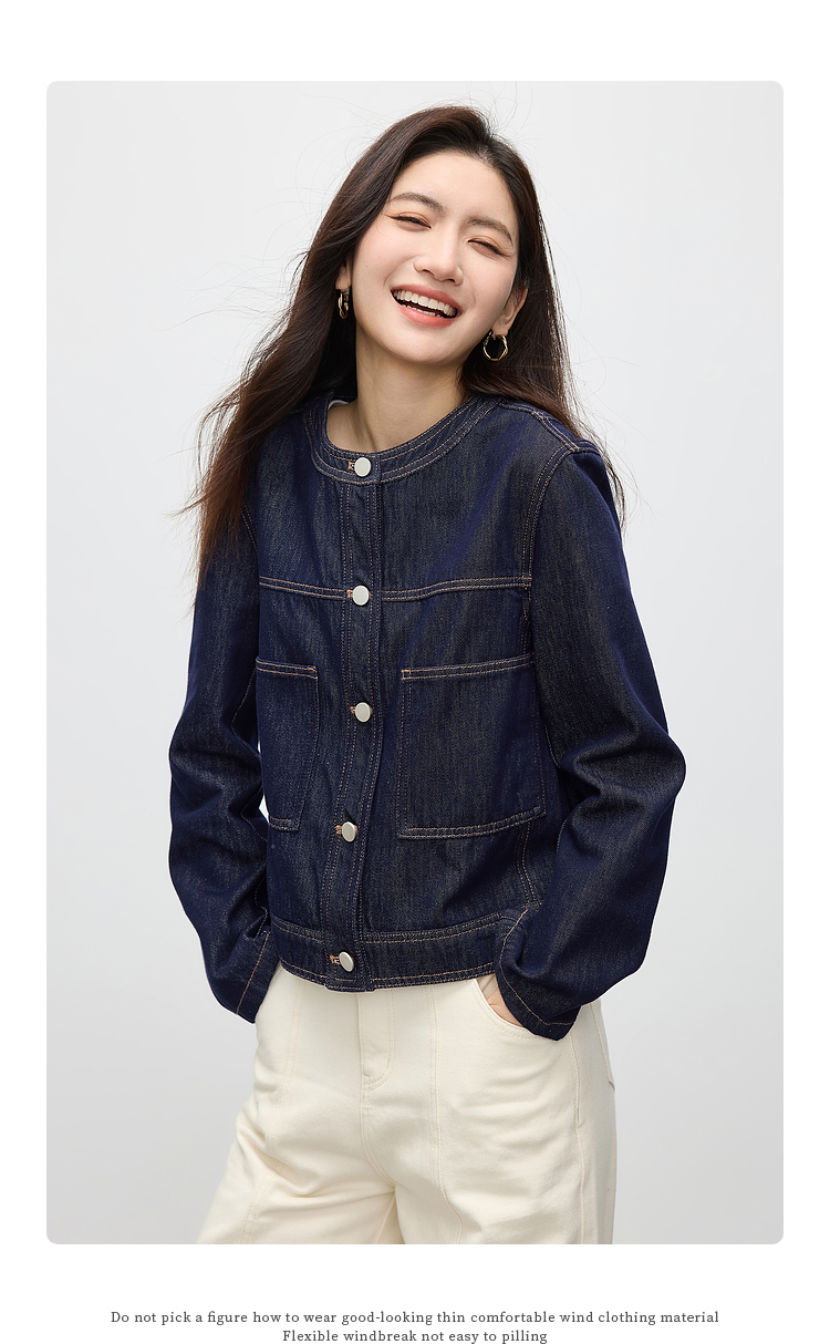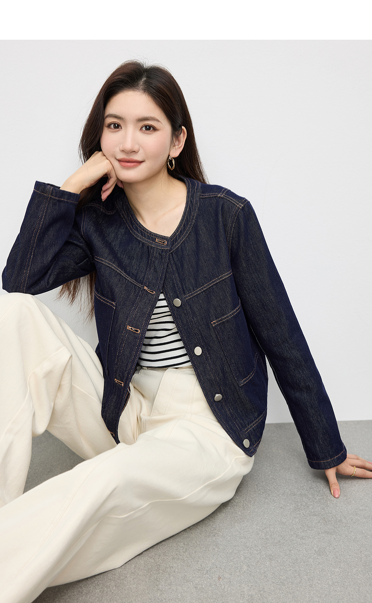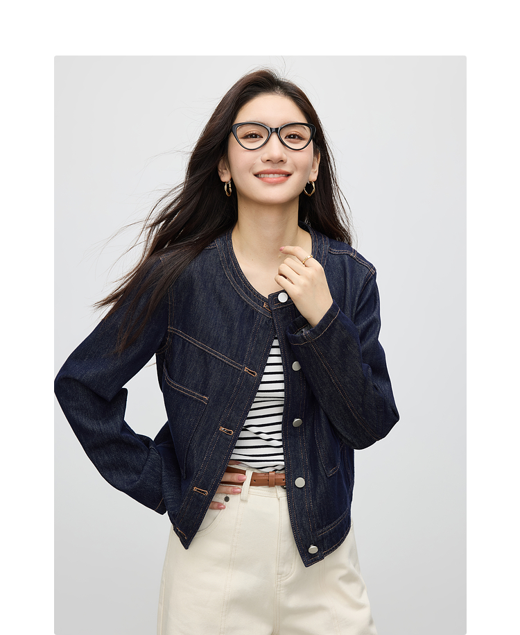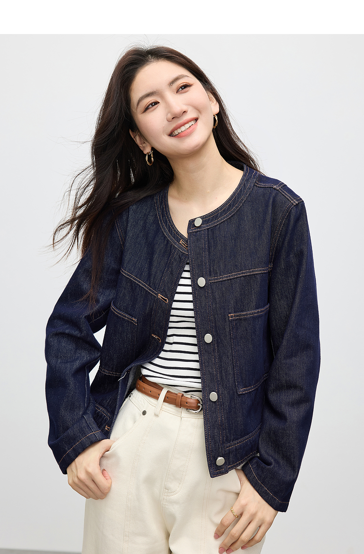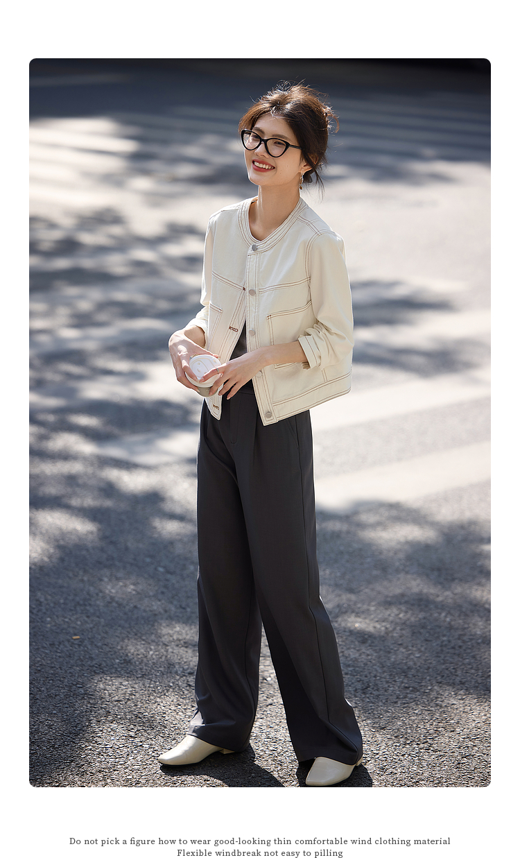 【春夏新品】熙世界小香风白色牛仔外套女2025春装新款重工明线短款夹克上衣