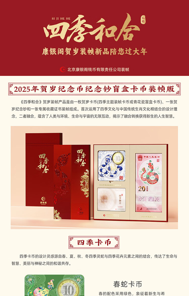 《四季和合》2025年蛇年纪念钞纪念币康银阁盲盒卡币装帧限量版