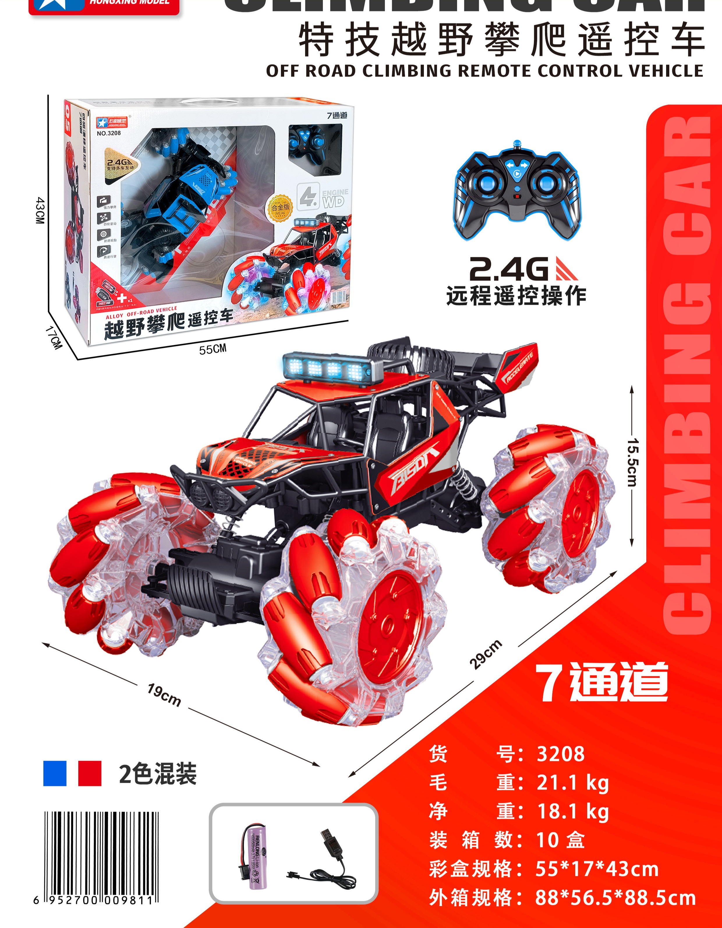 【宏星】遥控赛车越野攀爬车男女孩玩具汽车