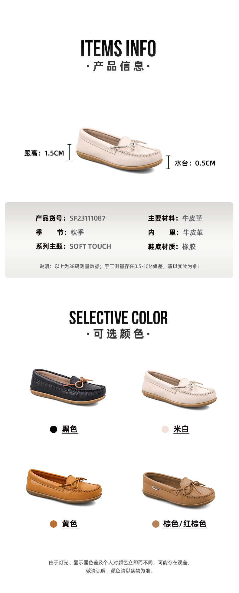 Safiya/索菲娅 商场同款2022秋季新款豆豆鞋舒适软底一脚蹬蝴蝶结百搭浅口单鞋 SF23111087