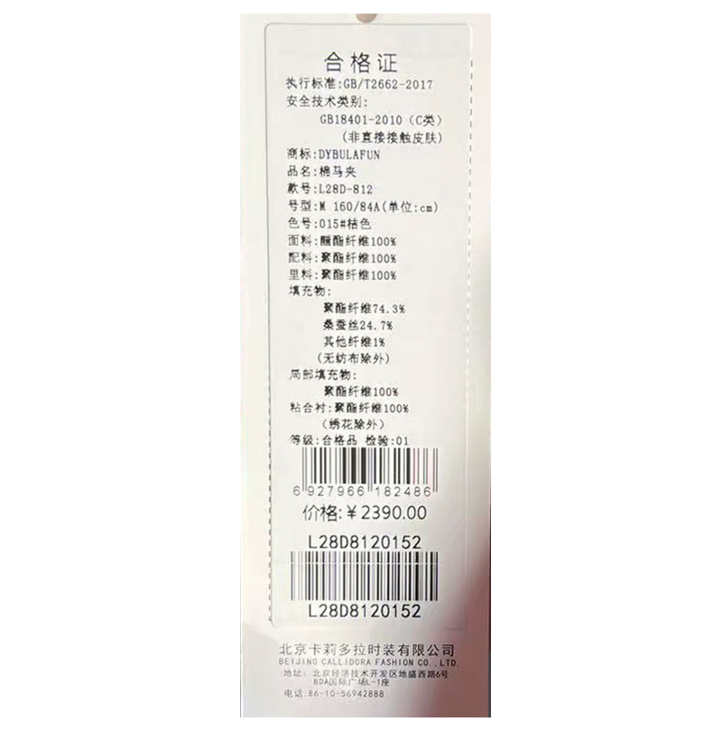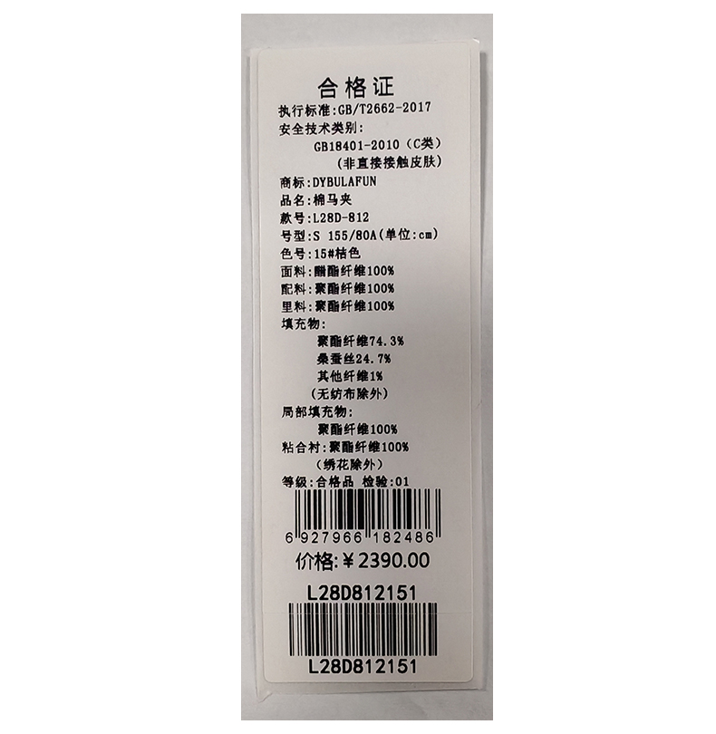 戴布拉芬棉马夹L28D812