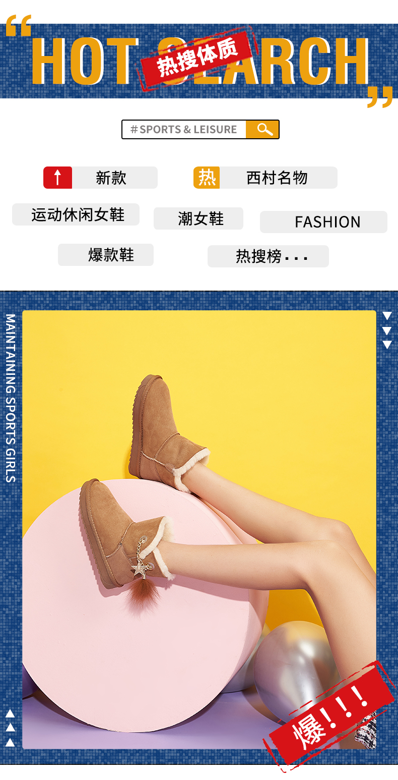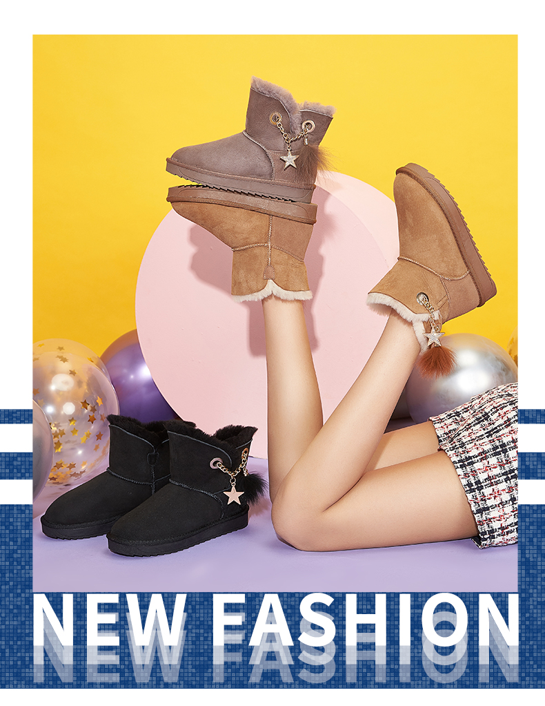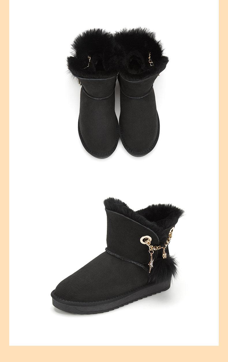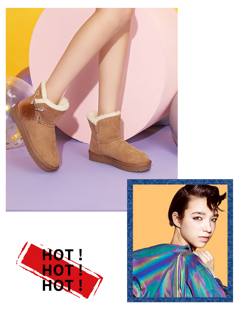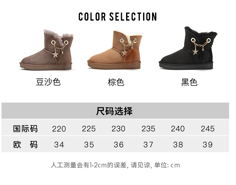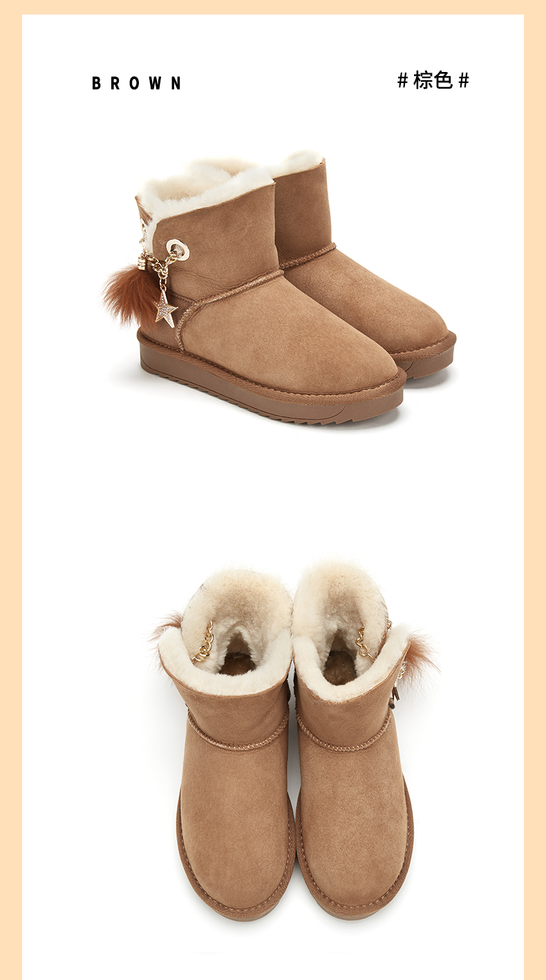 西村名物羊皮雪地靴女2020秋冬季新款皮毛一体厚底时尚短靴T29DS40941
