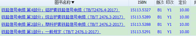 铁路信号电缆 共4部分((TB/T 2476.1~4 -2017))