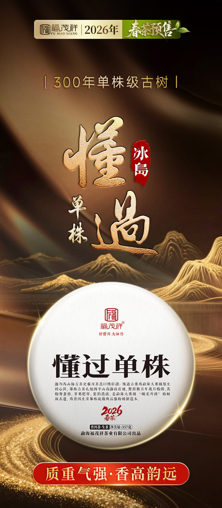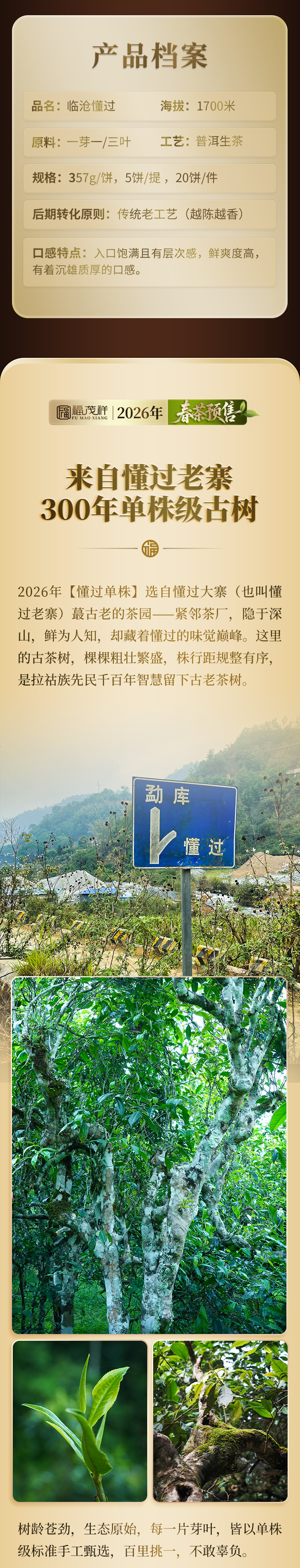 最后4饼!2026年春茶【懂过单株】古树茶,临沧茶区懂过核心茶地纯料古树茶357克普洱生茶