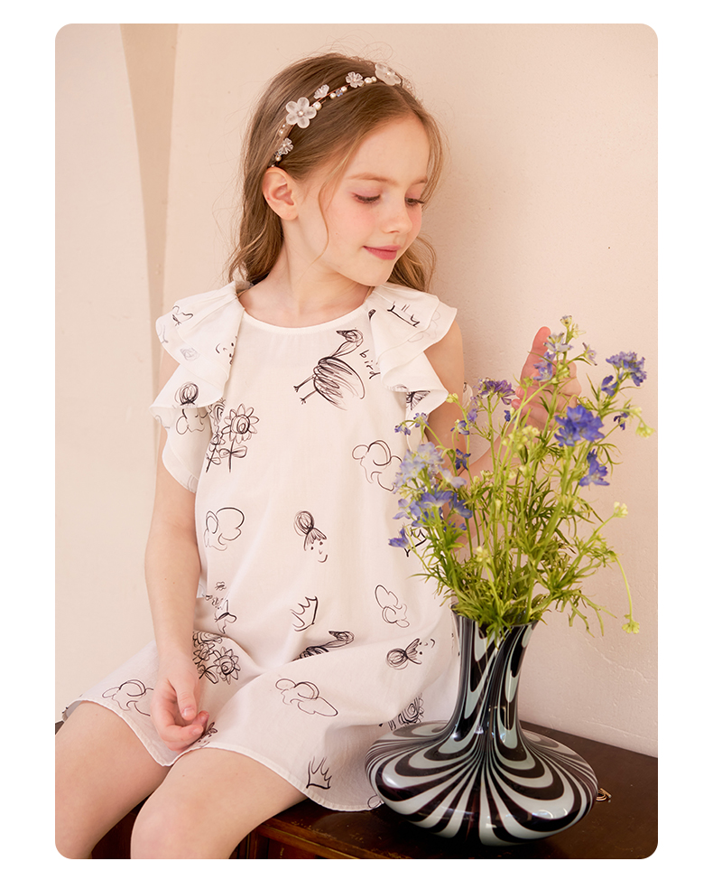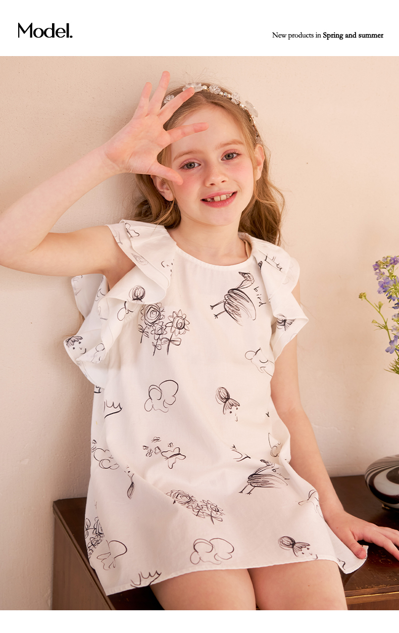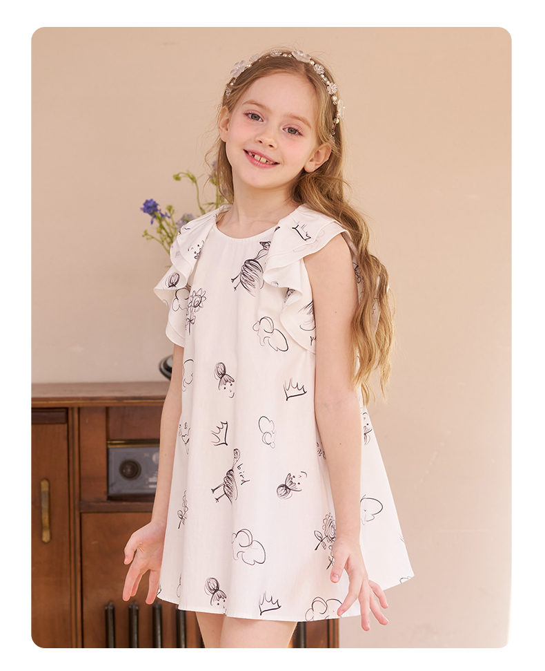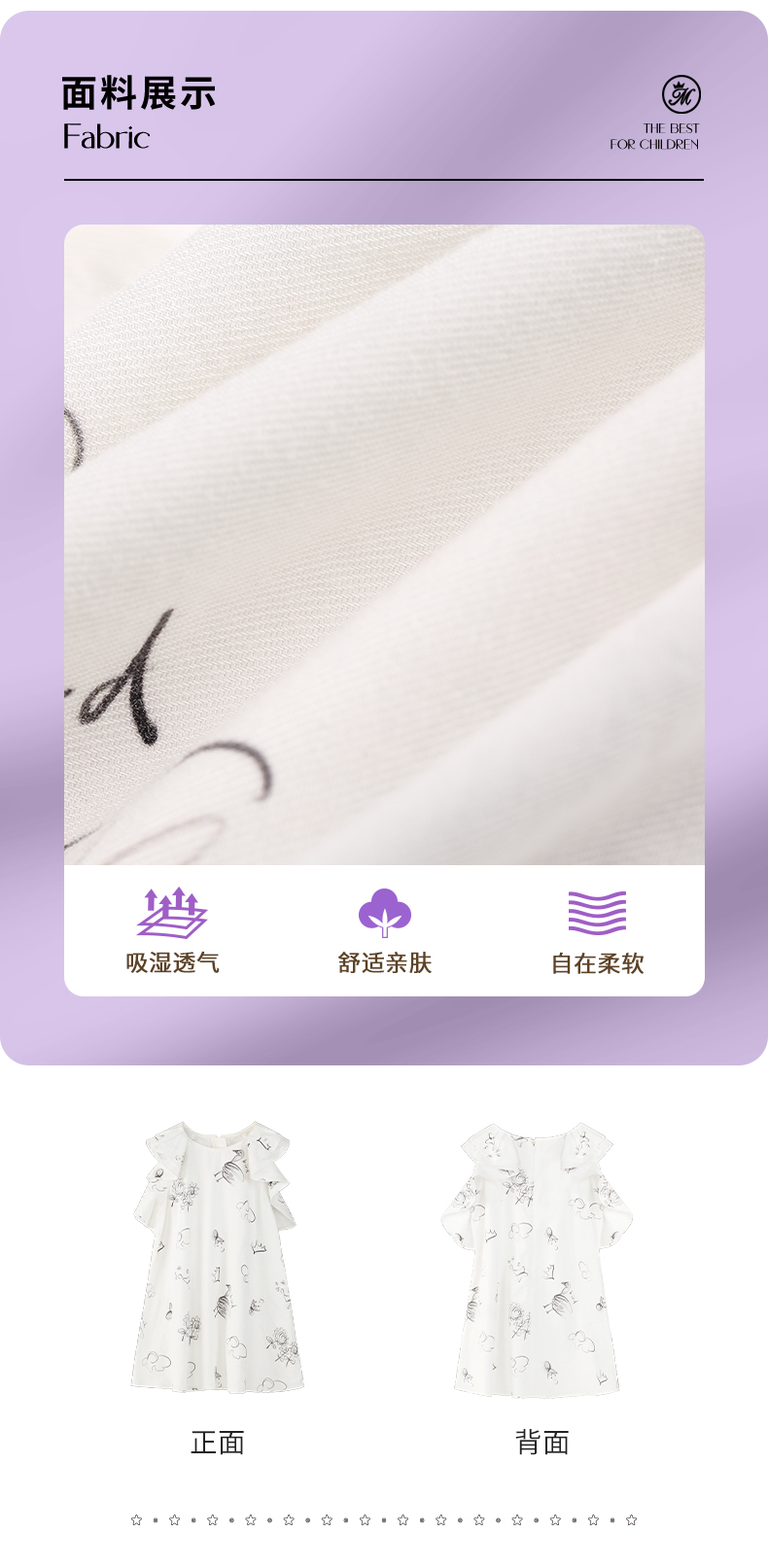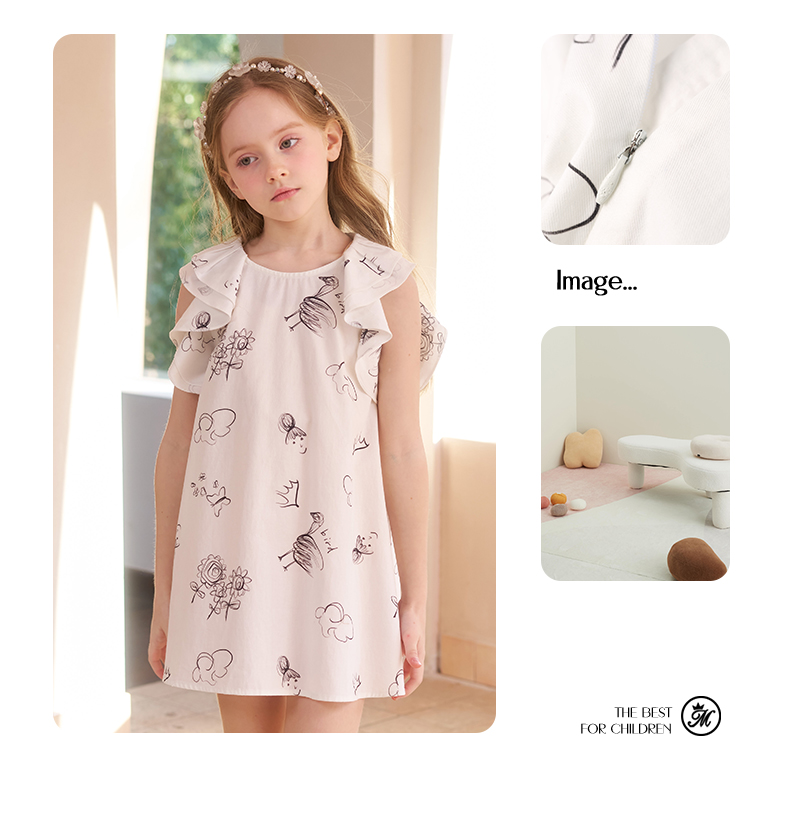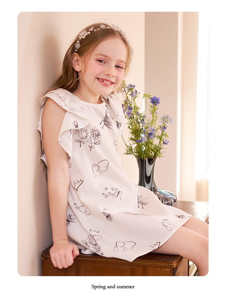 mettekids女童连衣裙夏季女孩白色印花公主裙儿童洋气纯棉裙子