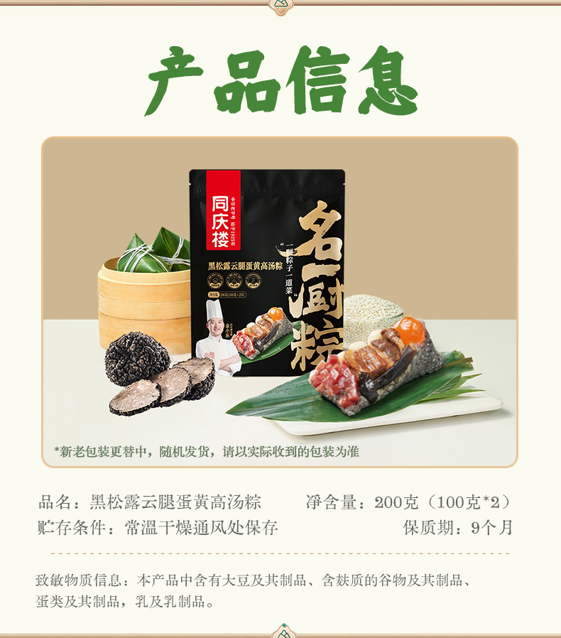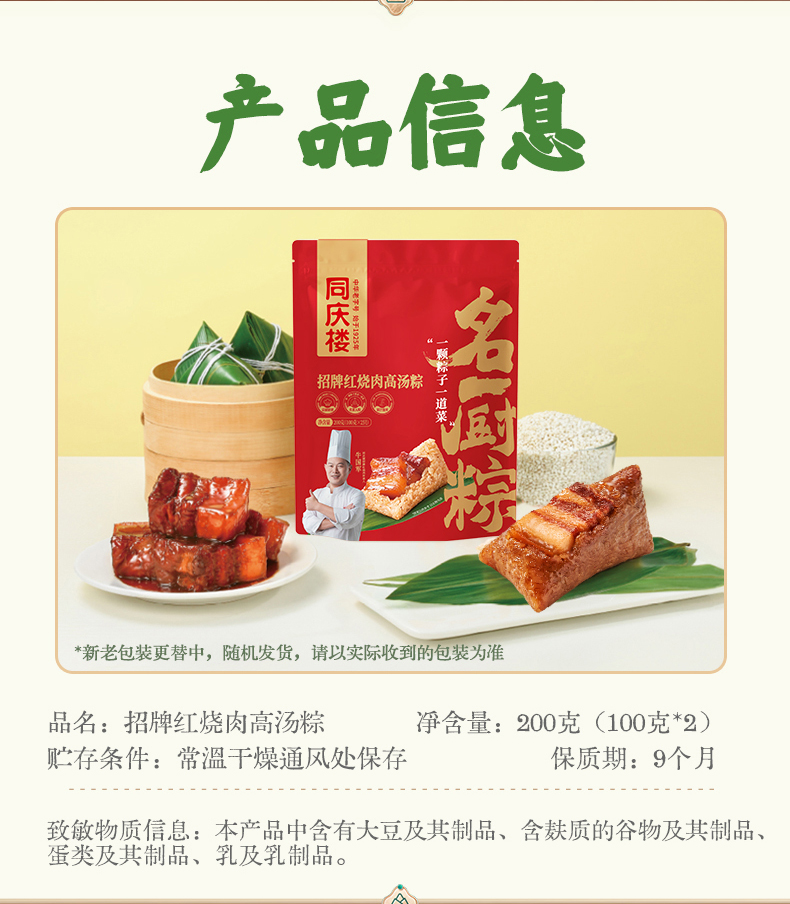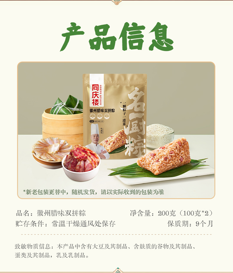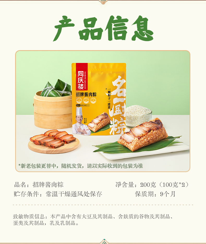 同庆楼 招牌肉粽 200g*3袋 端午粽子 鲜香软糯 48小时发货