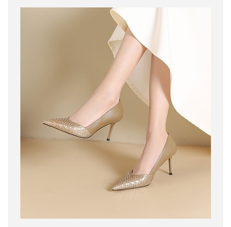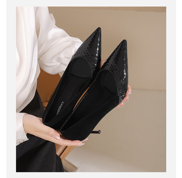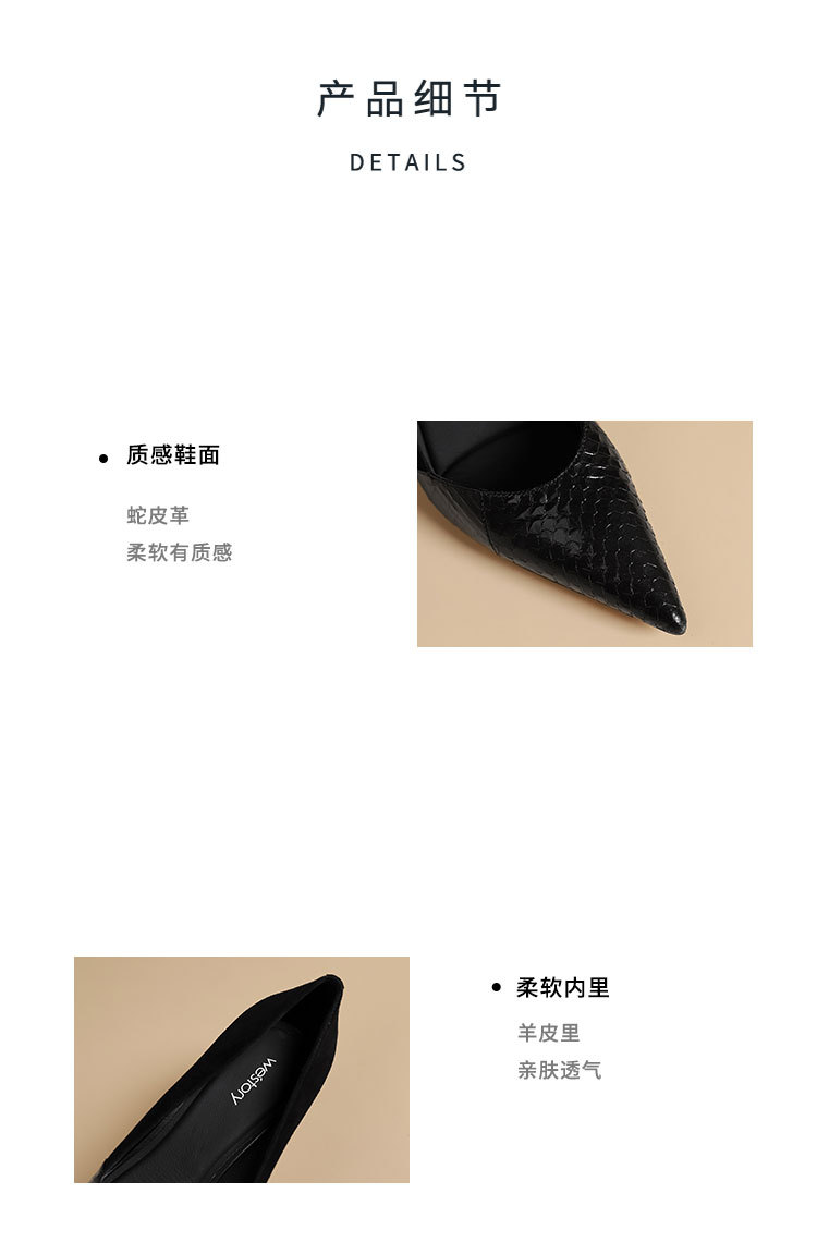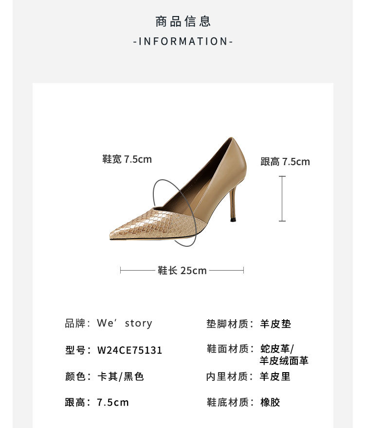 westory秋季新款纯色小尖头细高跟舒适优雅单鞋W24CE75131