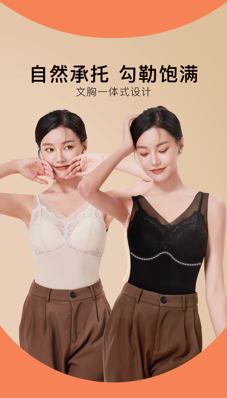 皇家丽美海姆绒保暖背心文胸一体式无痕V领托胸冬季收腰美体上衣BNX9181