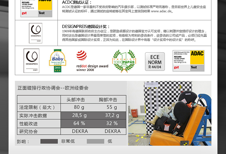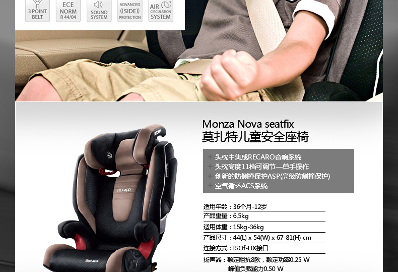 【样品清仓】第一站RECARO莫扎特2代儿童汽车安全座椅3-12岁正向安装15110040
