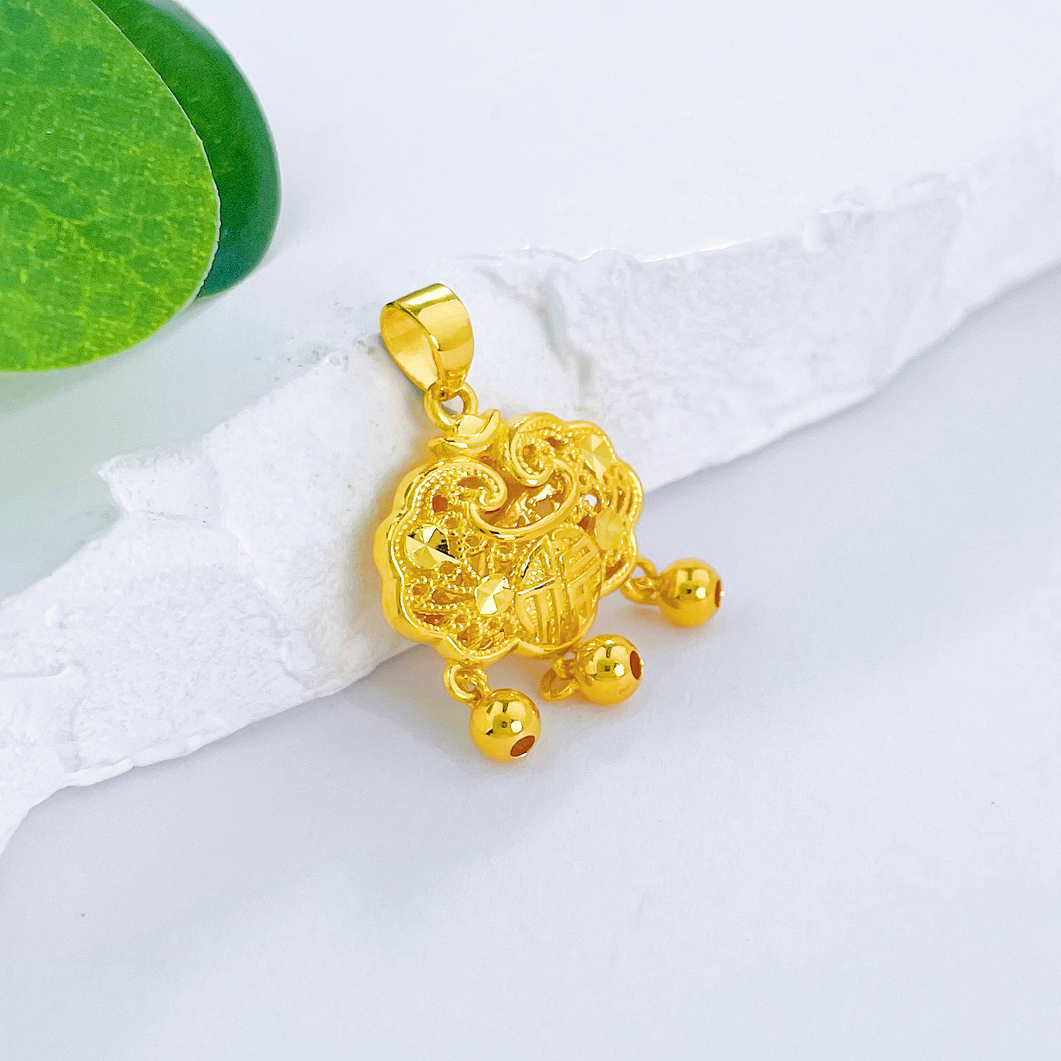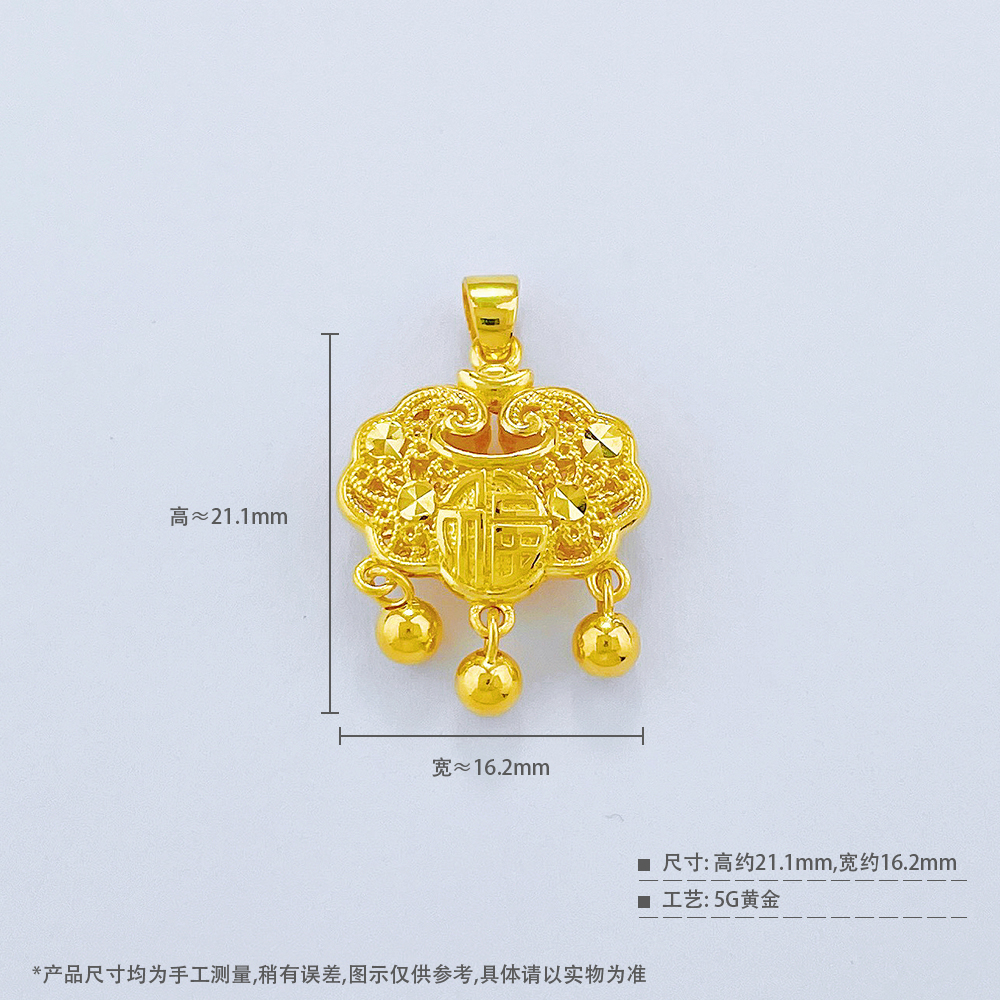 【限时克减150元】足金999 (足金999字印)5G黄金镂空铃铛双面如意福字锁包吊坠(5GDZ00256)(预售产品下单后不退款不退货不换货不补差价)