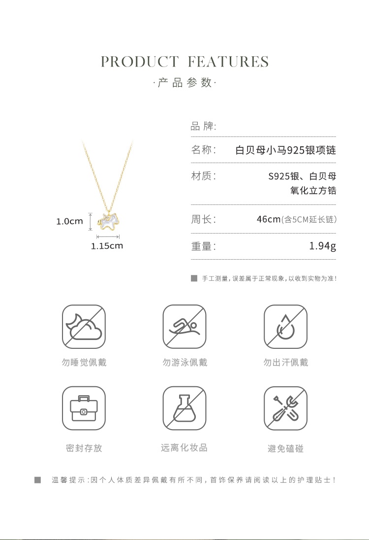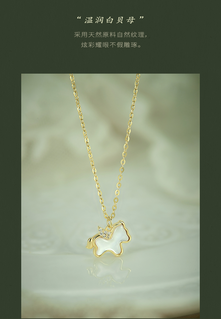 Oflye潮流饰品 S925银白贝母小马项链女锆石新款生肖马吊坠锁骨链高级感马年配饰