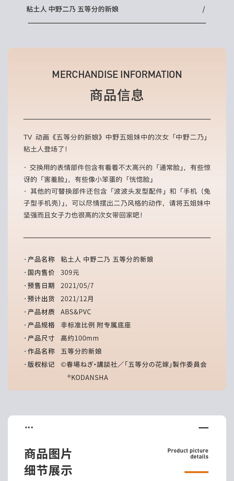 【GSC现货】粘土人 中野二乃 五等分的新娘