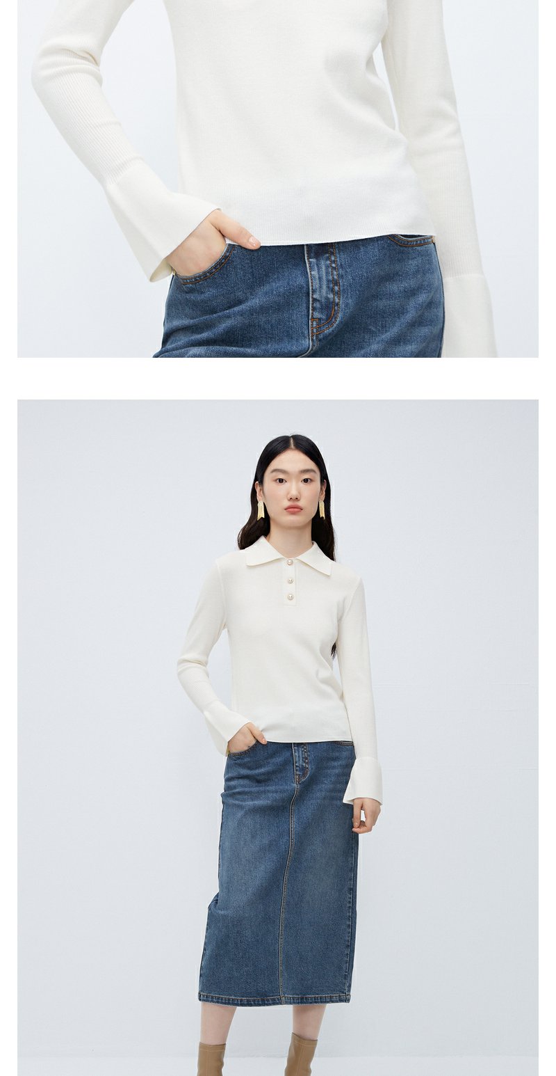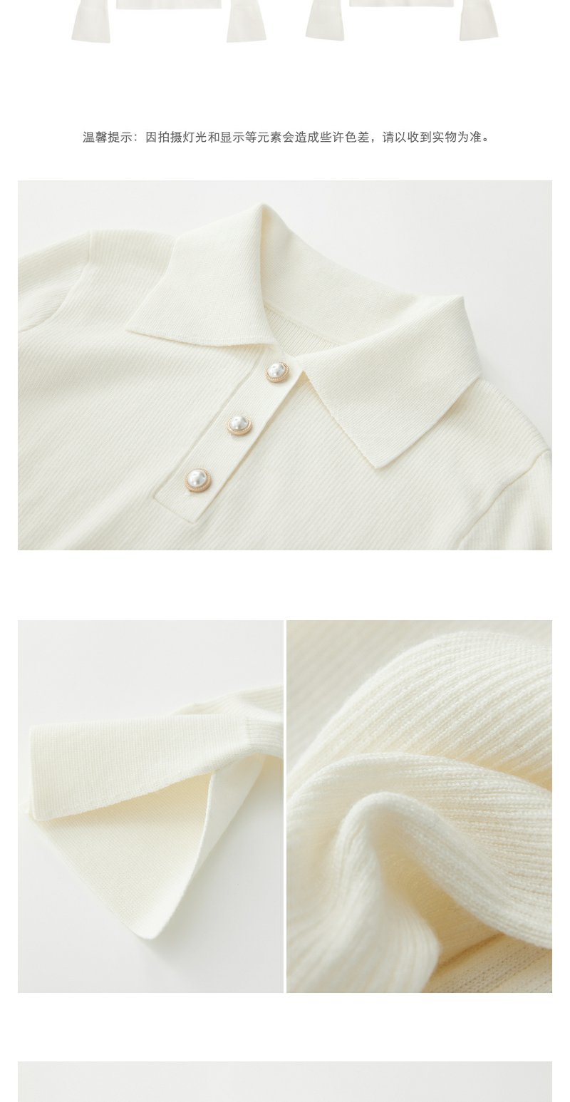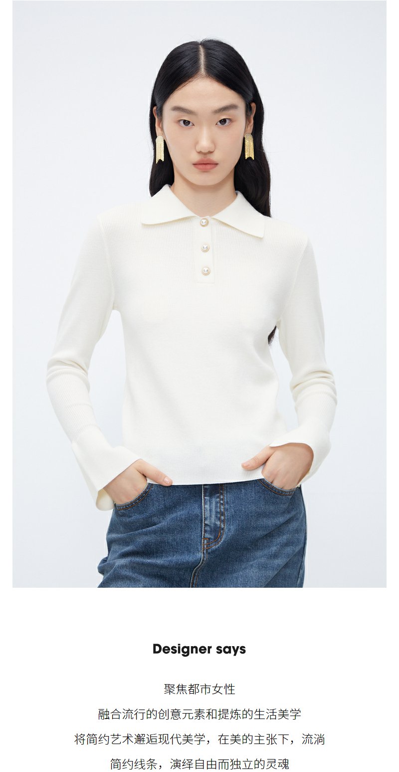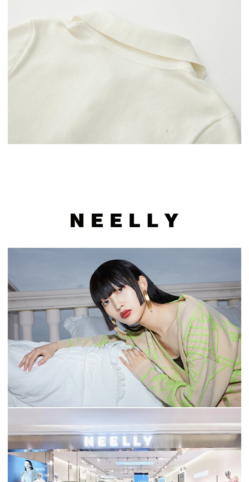 NEELLY纳俪商场同款POLO领毛衣女新款时尚喇叭袖套头针织百搭上衣N23102A01034