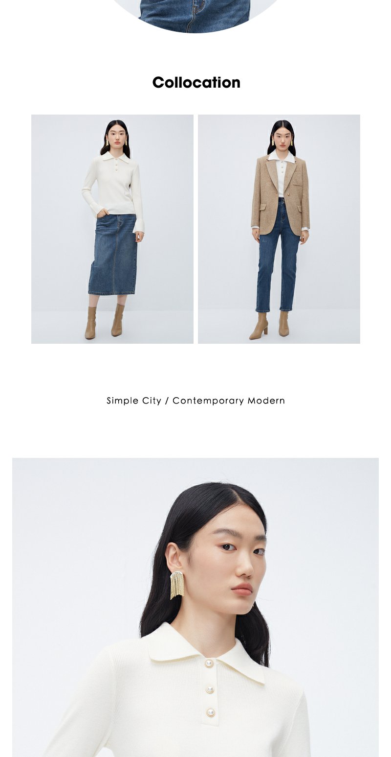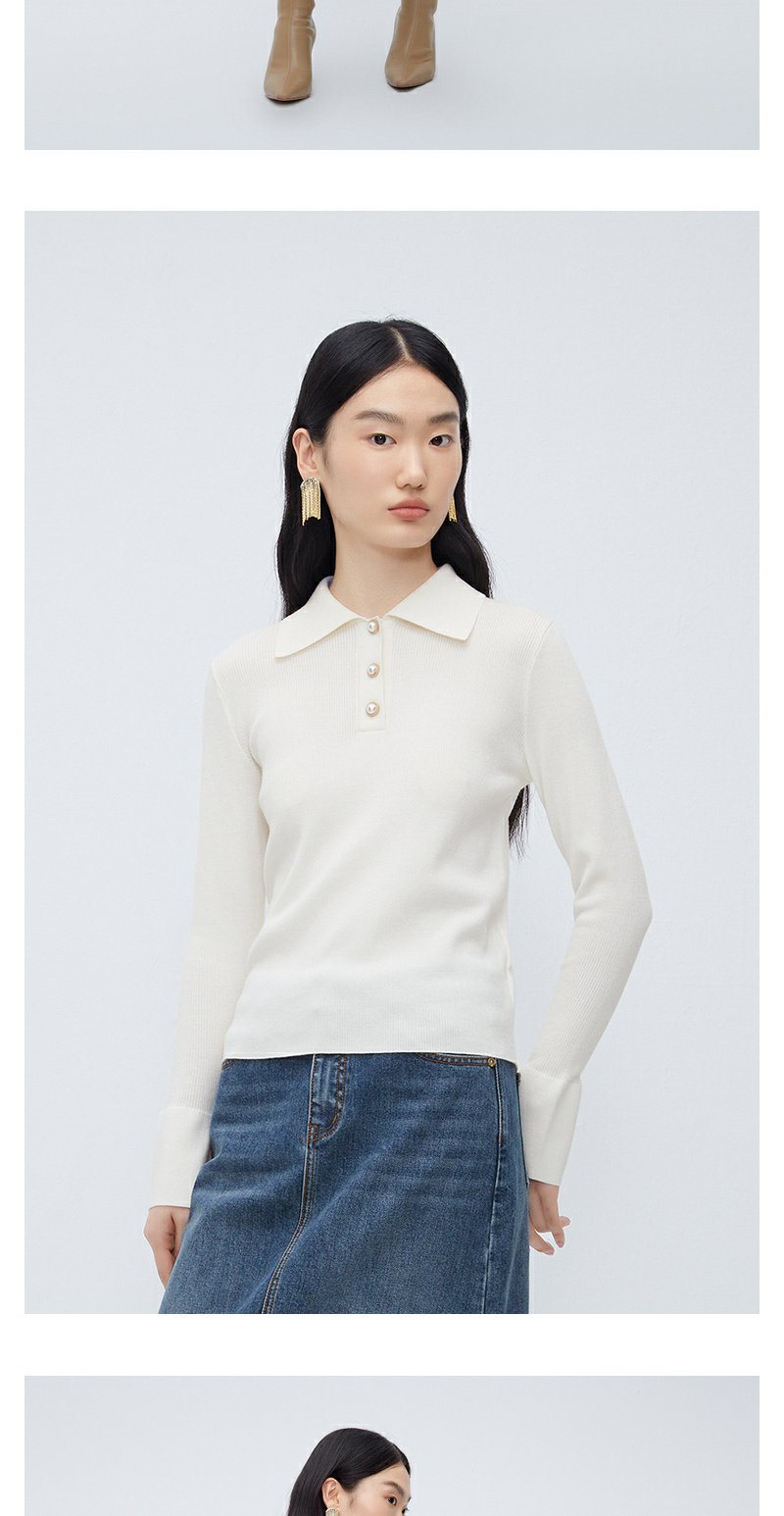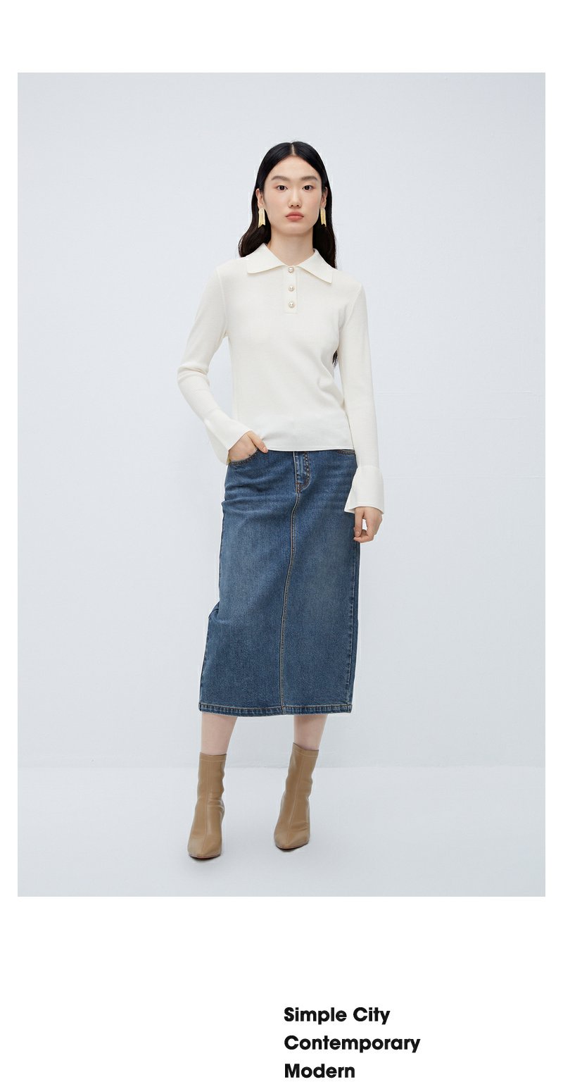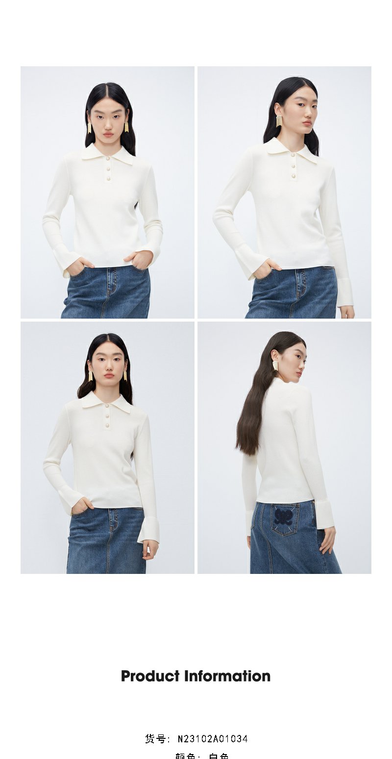 NEELLY纳俪商场同款POLO领毛衣女新款时尚喇叭袖套头针织百搭上衣N23102A01034