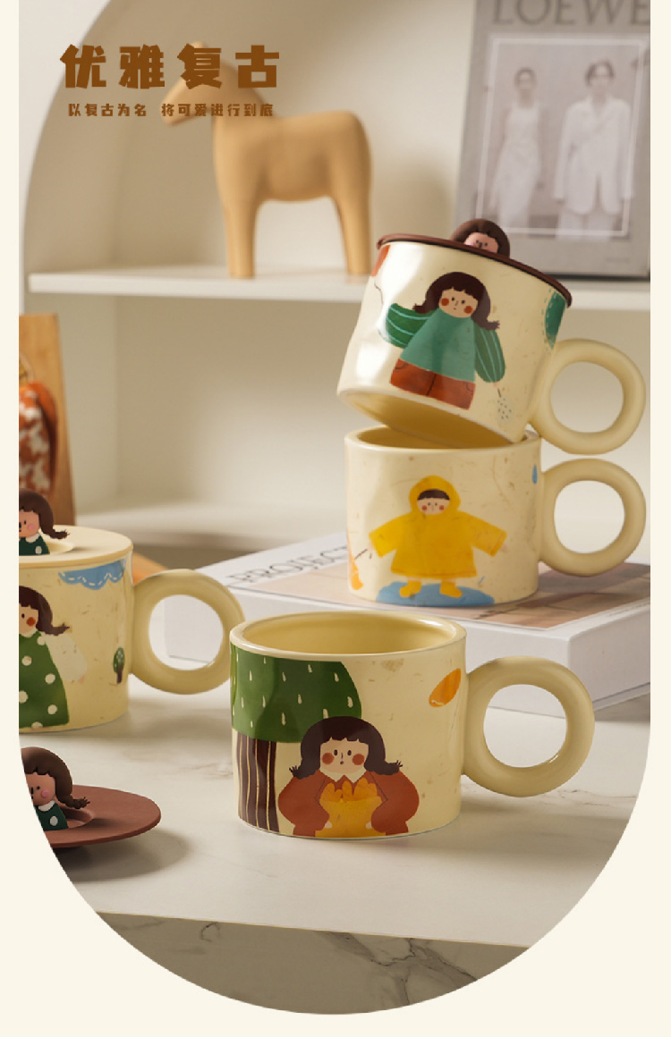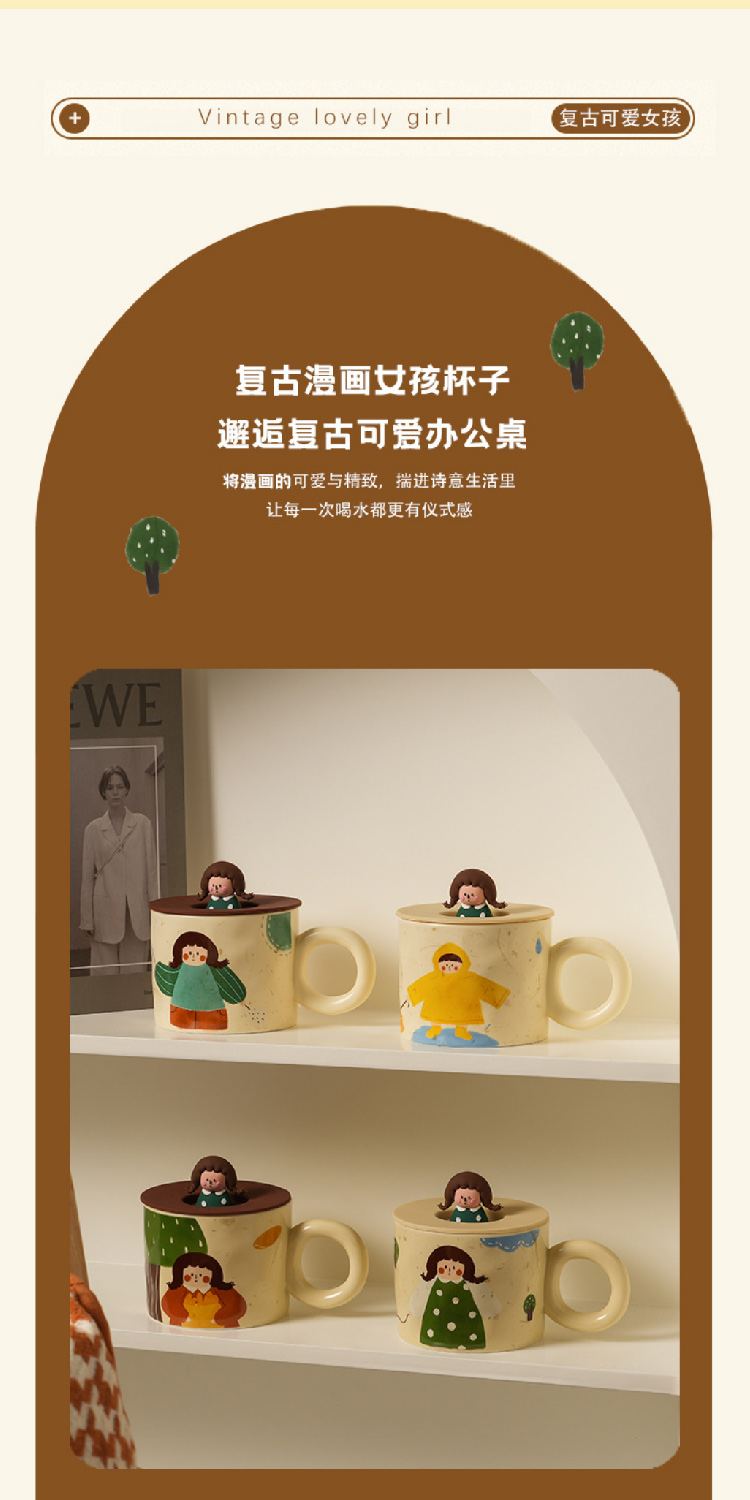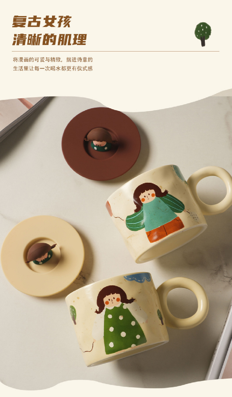 【元气少女马克杯】创意可爱杯子带盖马克杯陶瓷杯 家用潮流早餐杯咖啡杯情侣水杯