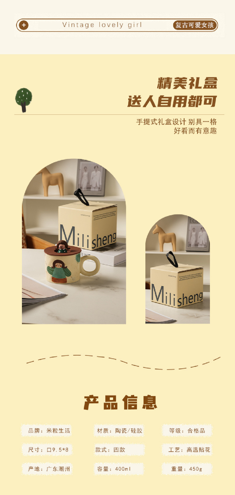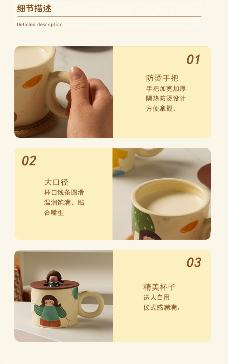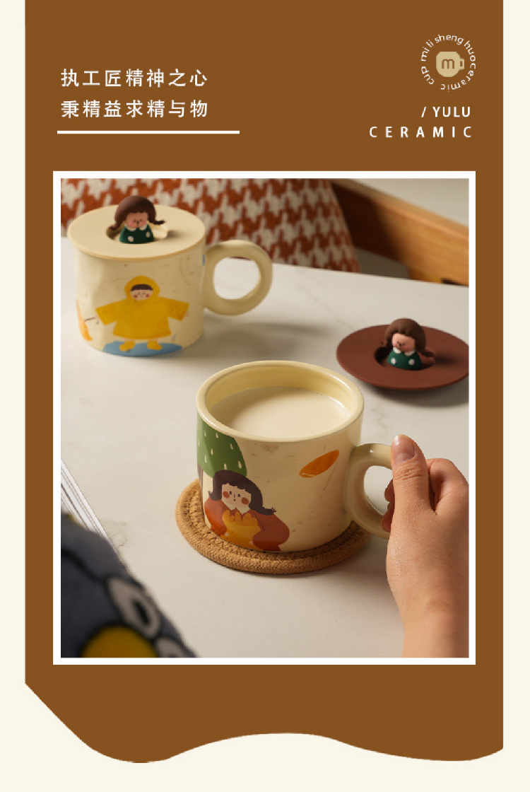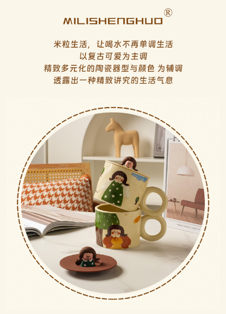 【元气少女马克杯】创意可爱杯子带盖马克杯陶瓷杯 家用潮流早餐杯咖啡杯情侣水杯