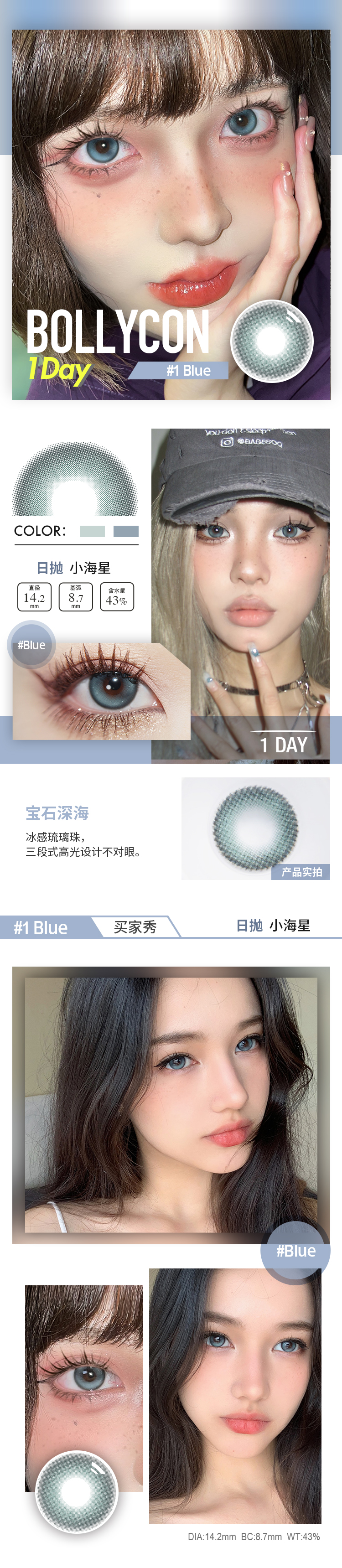bollycon 日抛 小幽灵/小海星(棕绿 14.2最高800)
