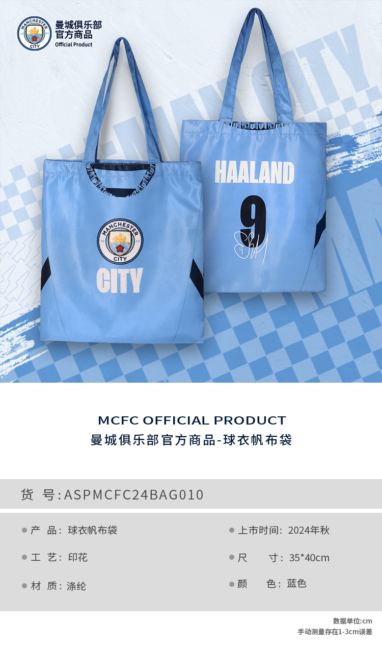 【官方正版】曼城俱乐部 | 球衣帆布袋手提包纪念球迷印签款