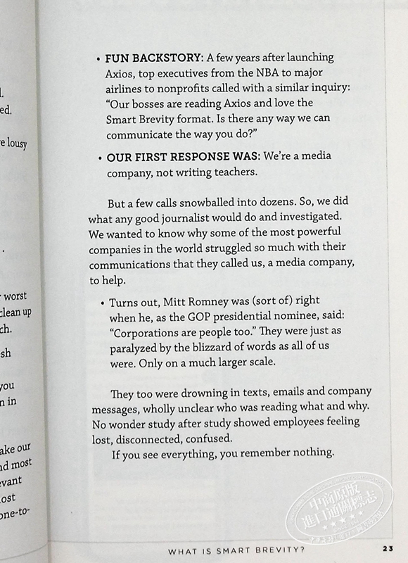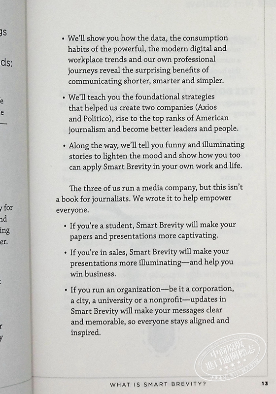 【中商原版】智能简洁 事半功倍的力量 Smart Brevity 英文原版 The Power of Saying More with Less Jim VandeHei