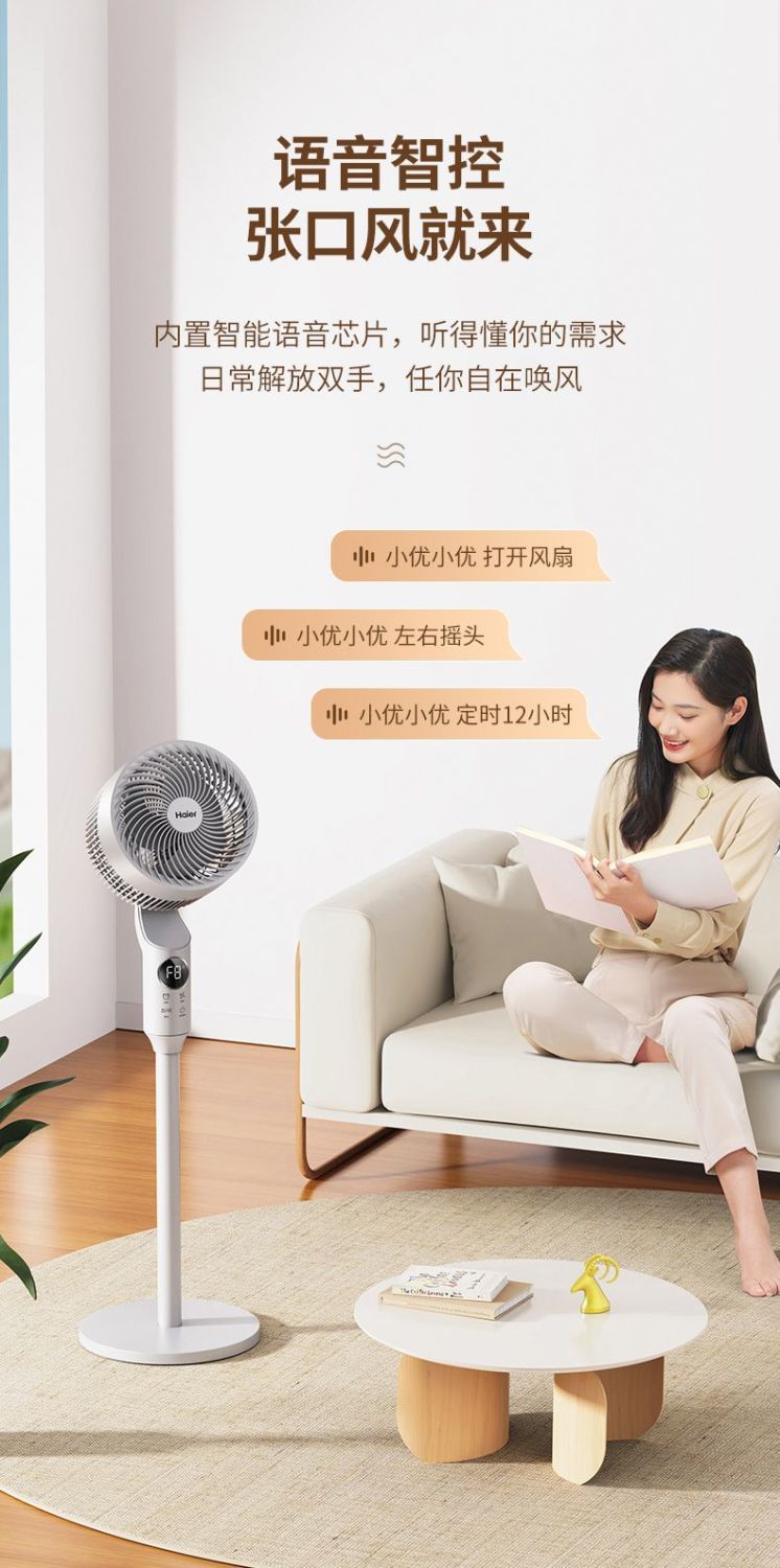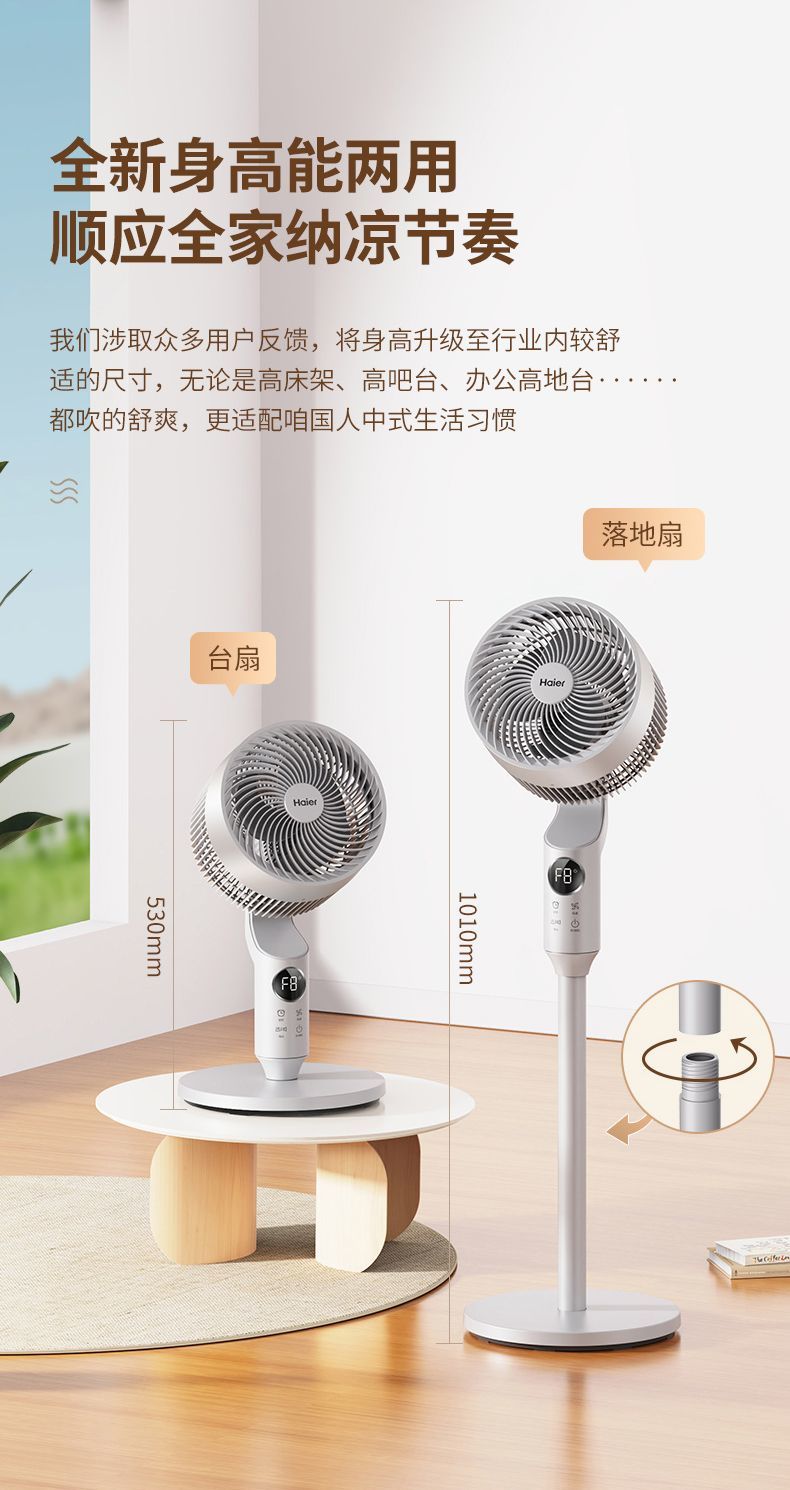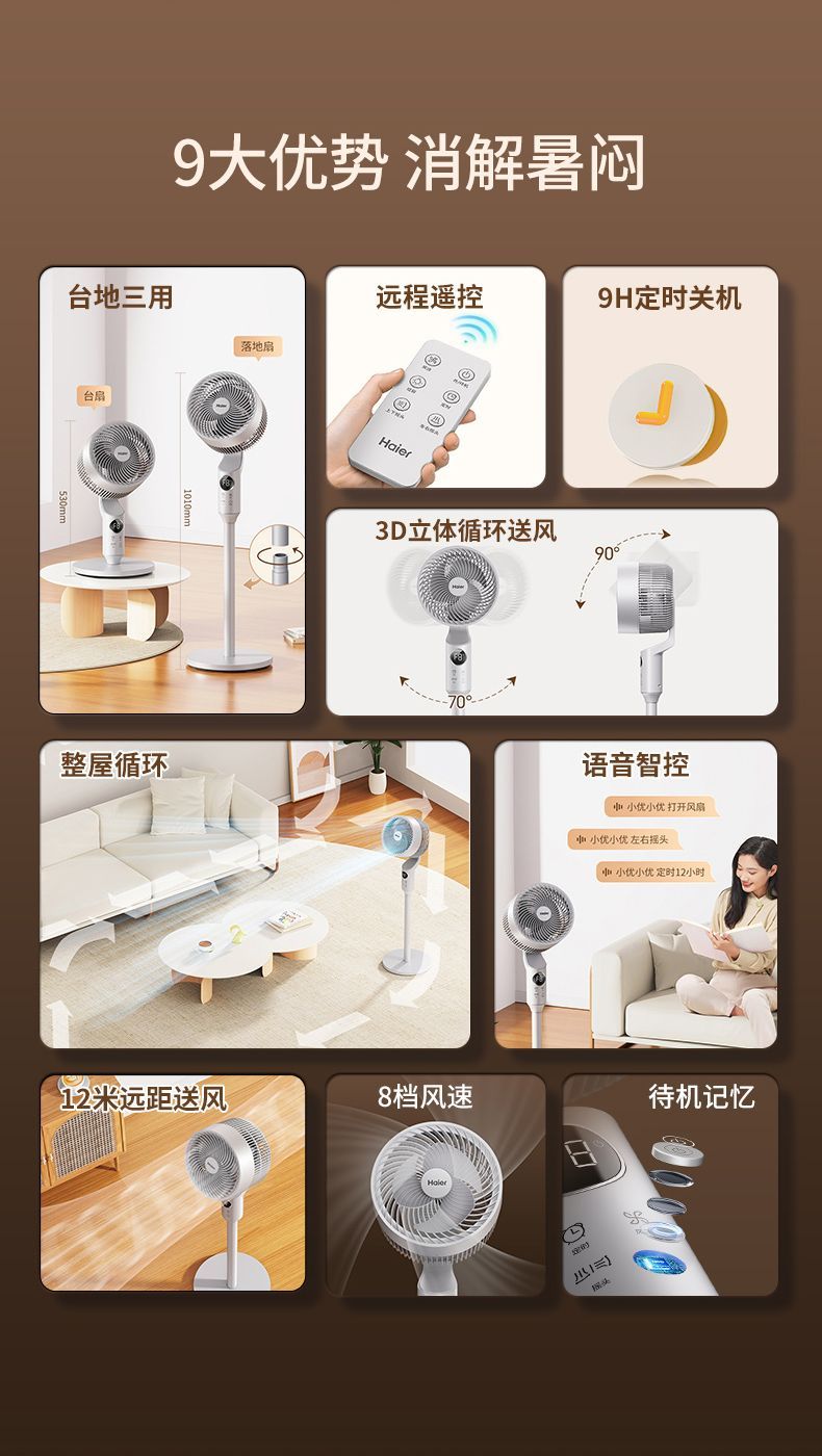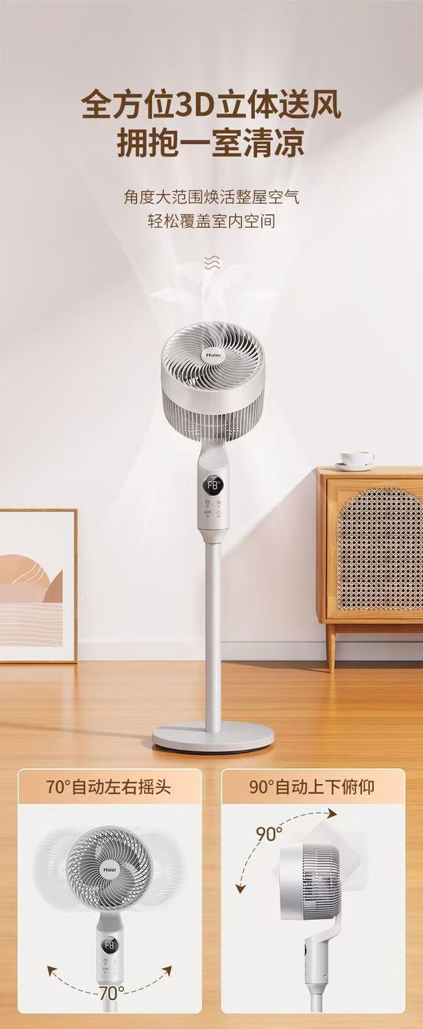 海尔空气循环扇电风扇遥控定时台式落地家用立式语音涡轮对流风扇