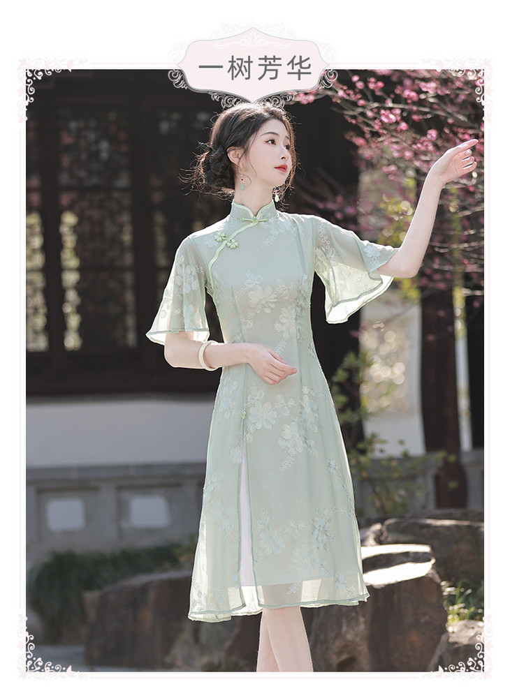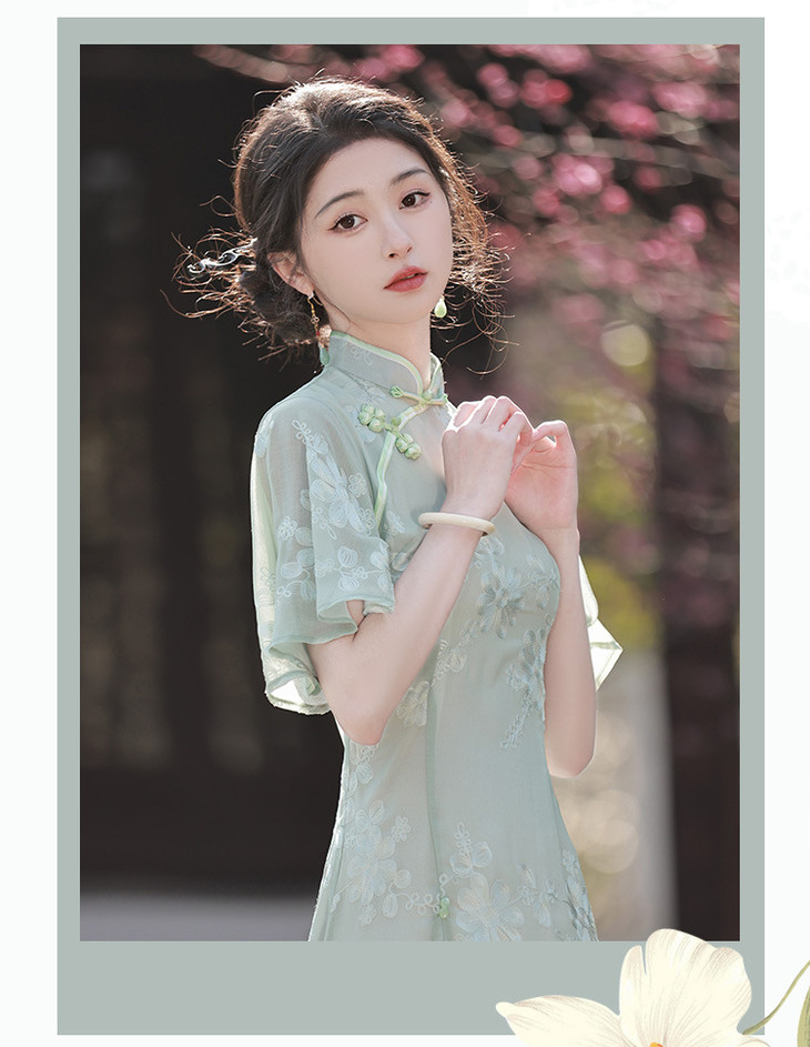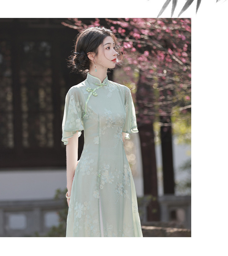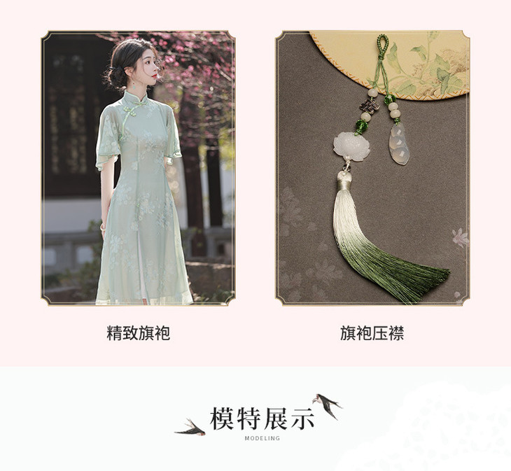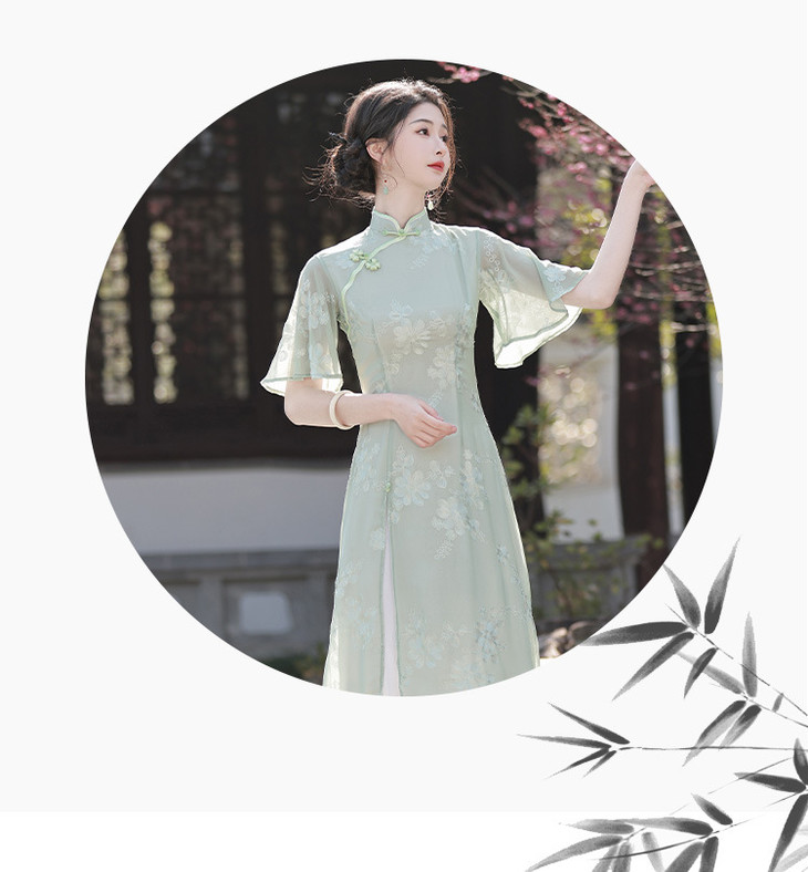 【预售3天】改良绿色旗袍小清新,年轻款高端气质少女奥黛连衣裙夏LSB2176