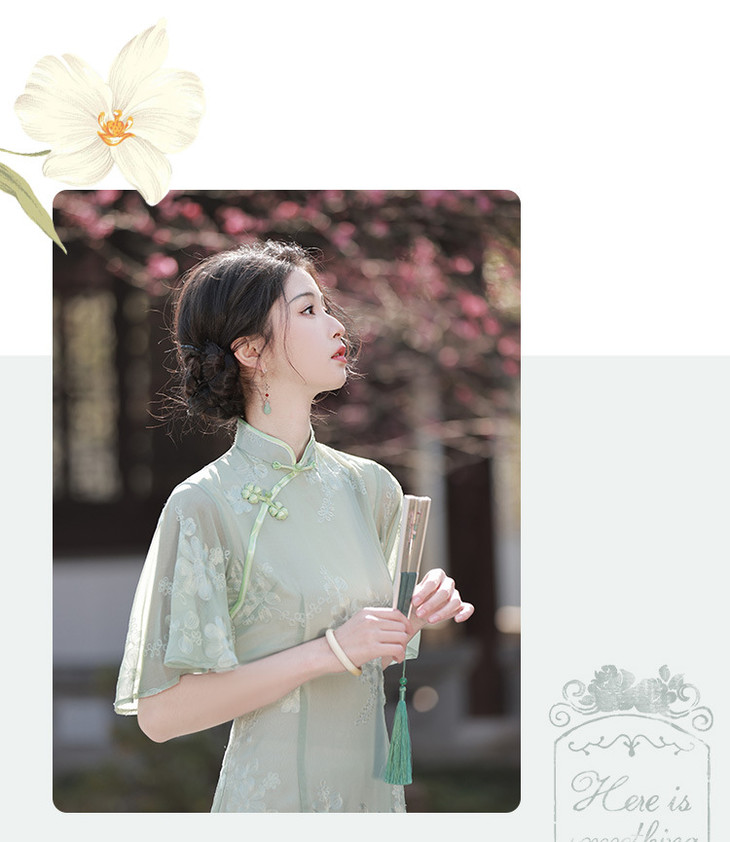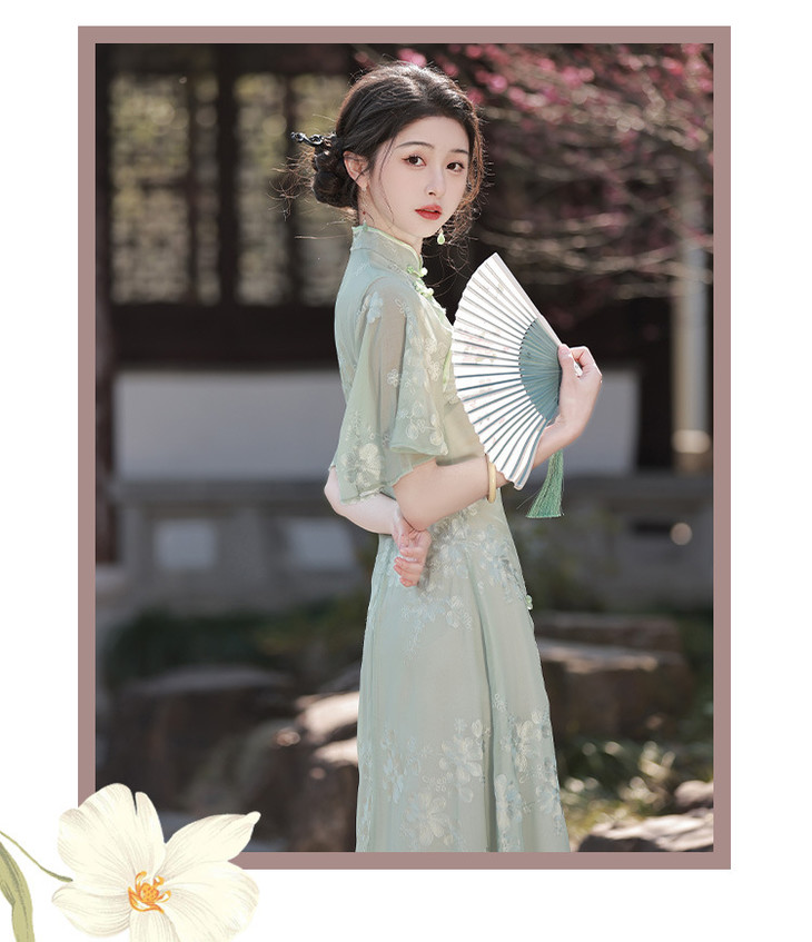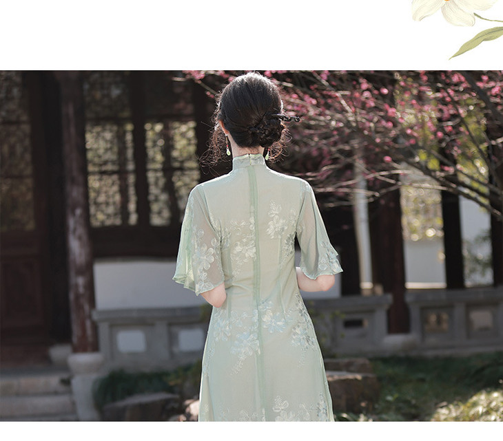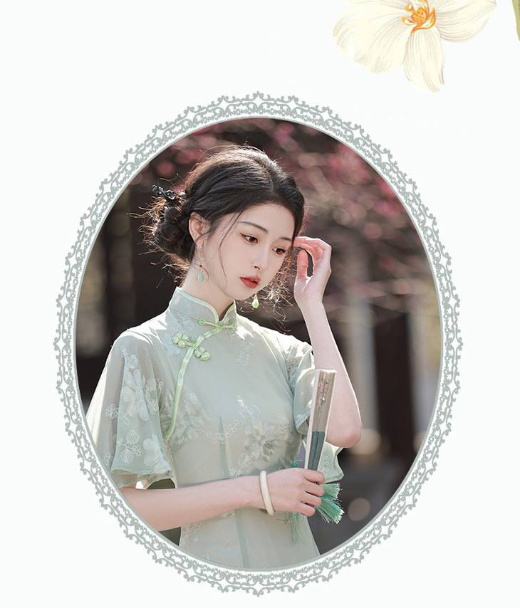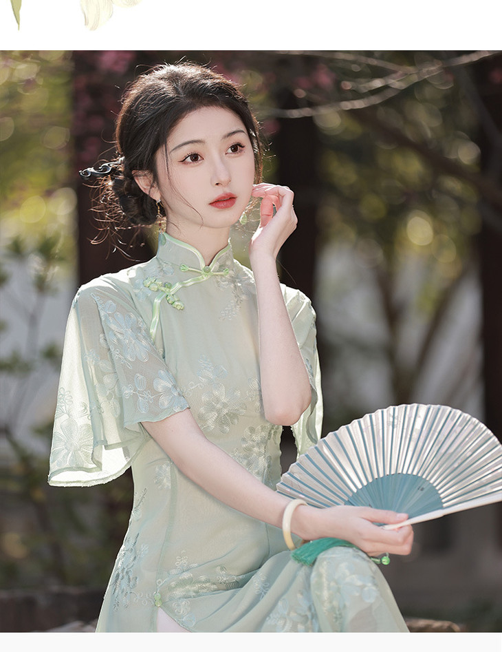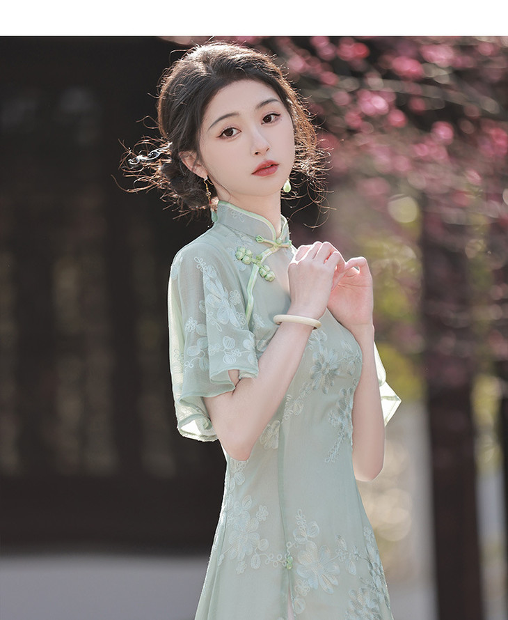 【预售3天】改良绿色旗袍小清新,年轻款高端气质少女奥黛连衣裙夏LSB2176
