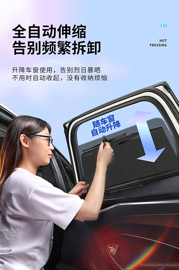 汽车车窗遮阳帘自动升降侧窗遮阳挡板防晒隔热车载伸缩式隐私帘