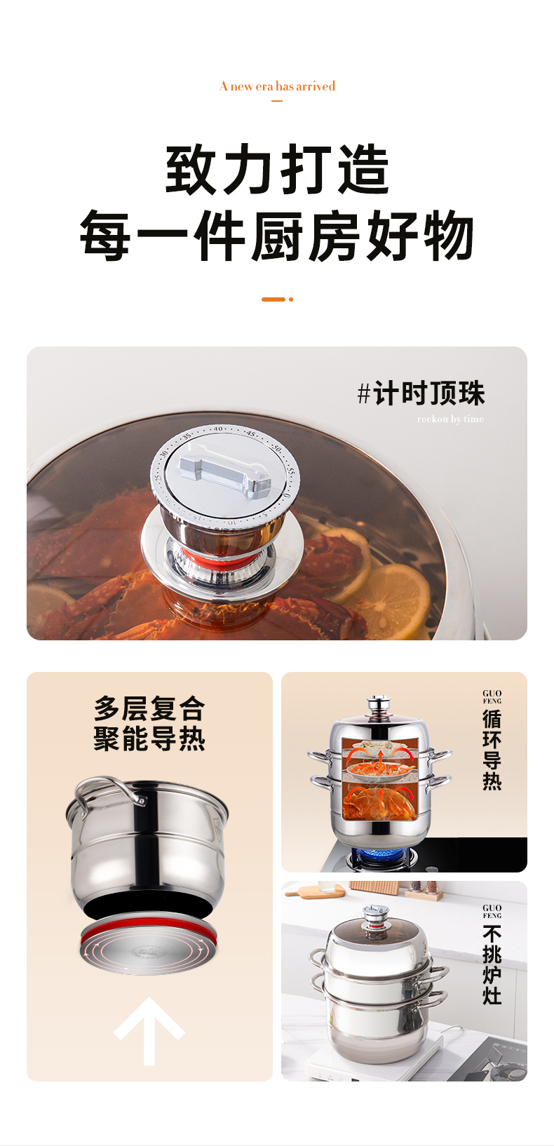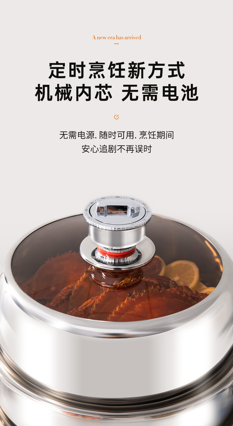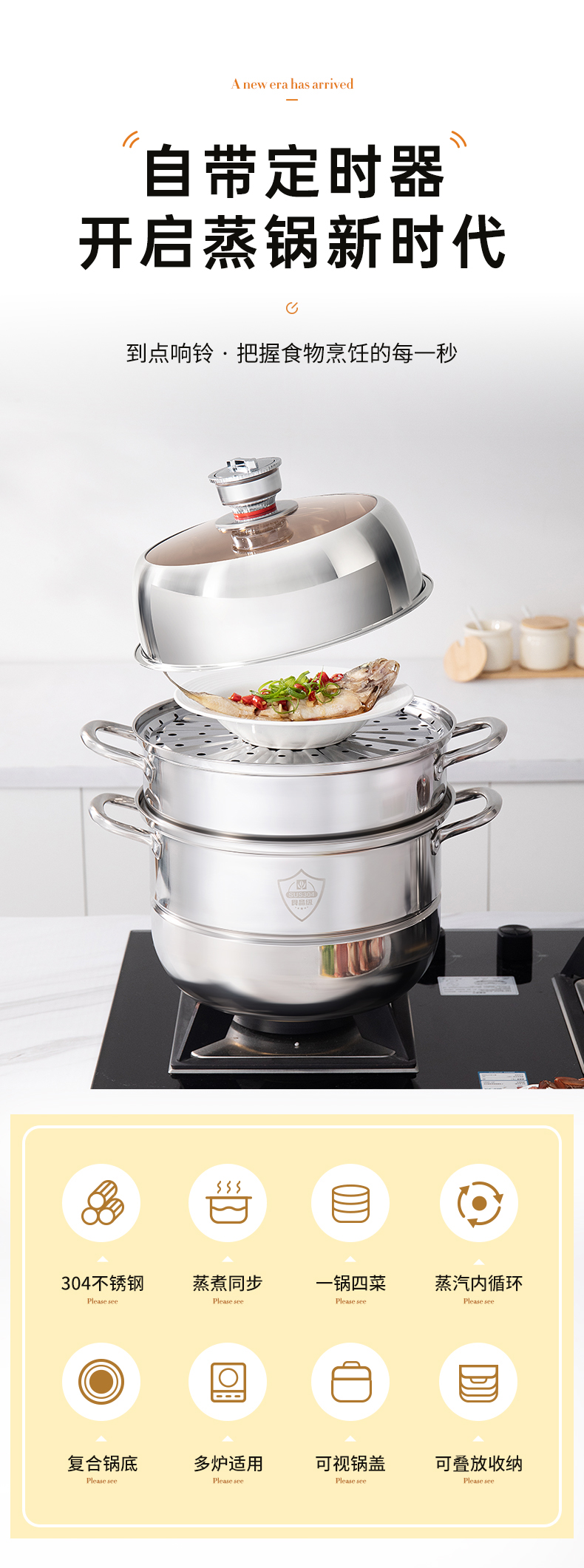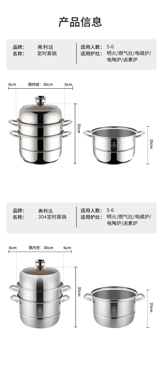 德国弗利达自带定时器的304不锈钢加厚款多层蒸锅