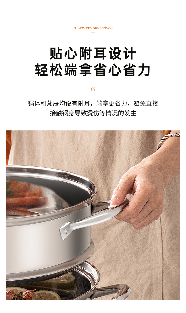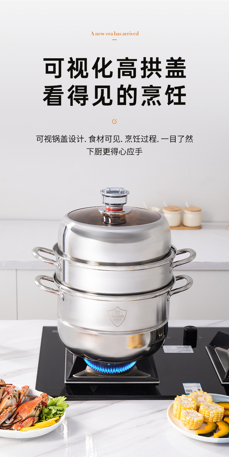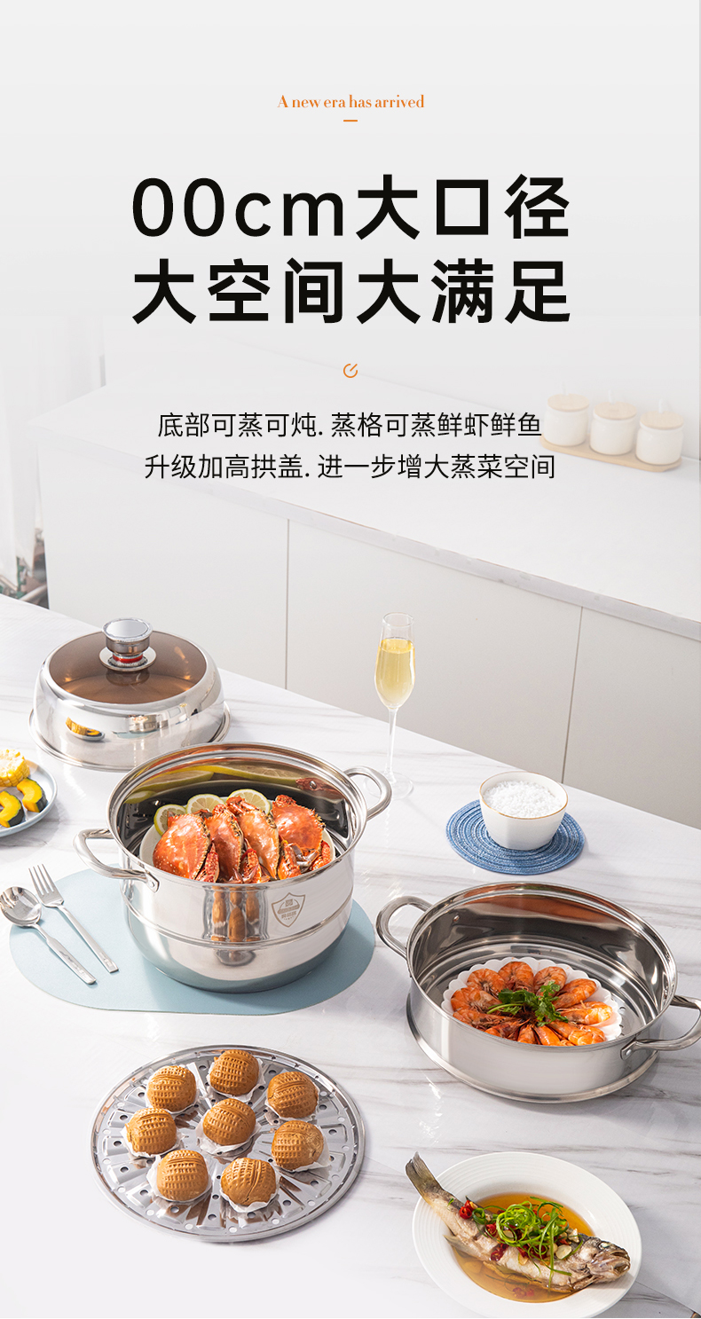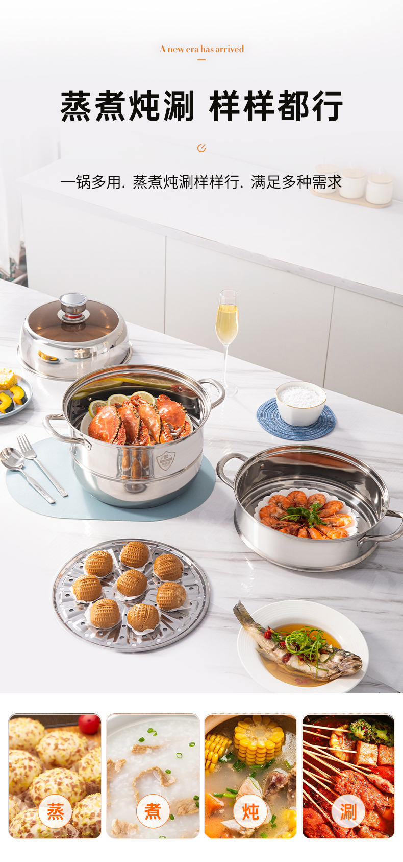 德国弗利达自带定时器的304不锈钢加厚款多层蒸锅