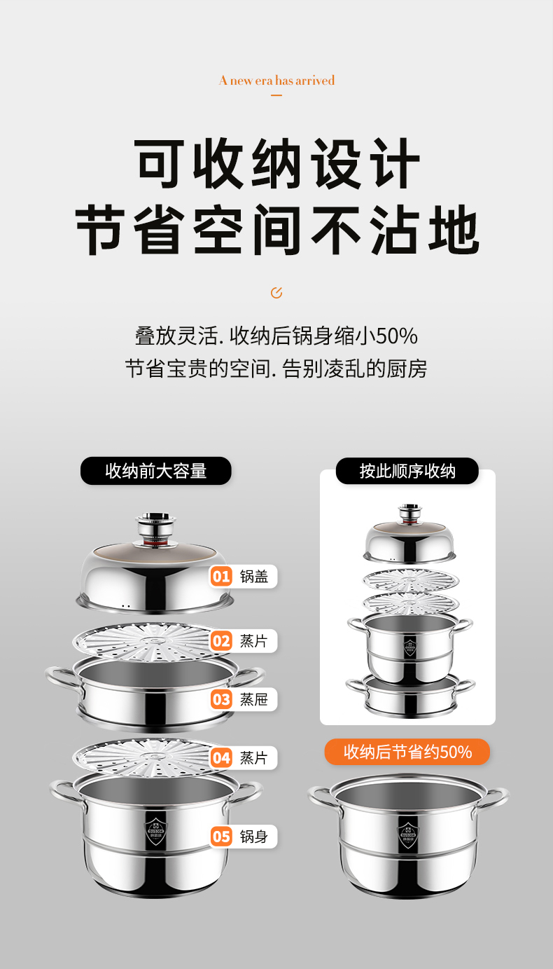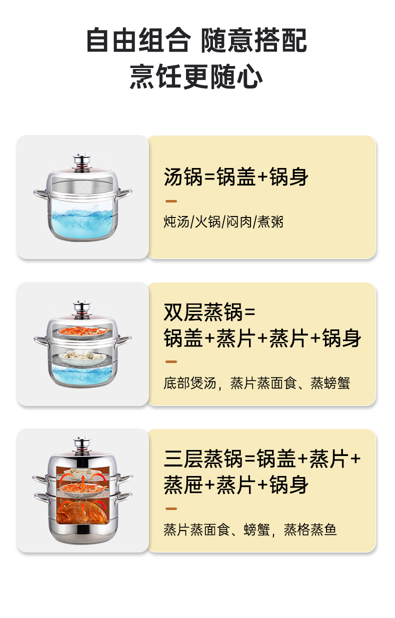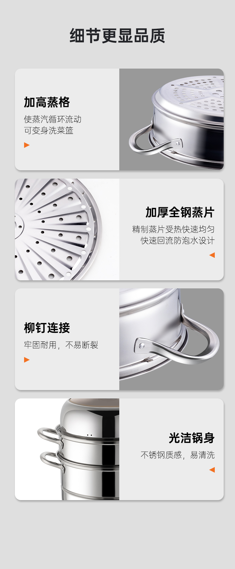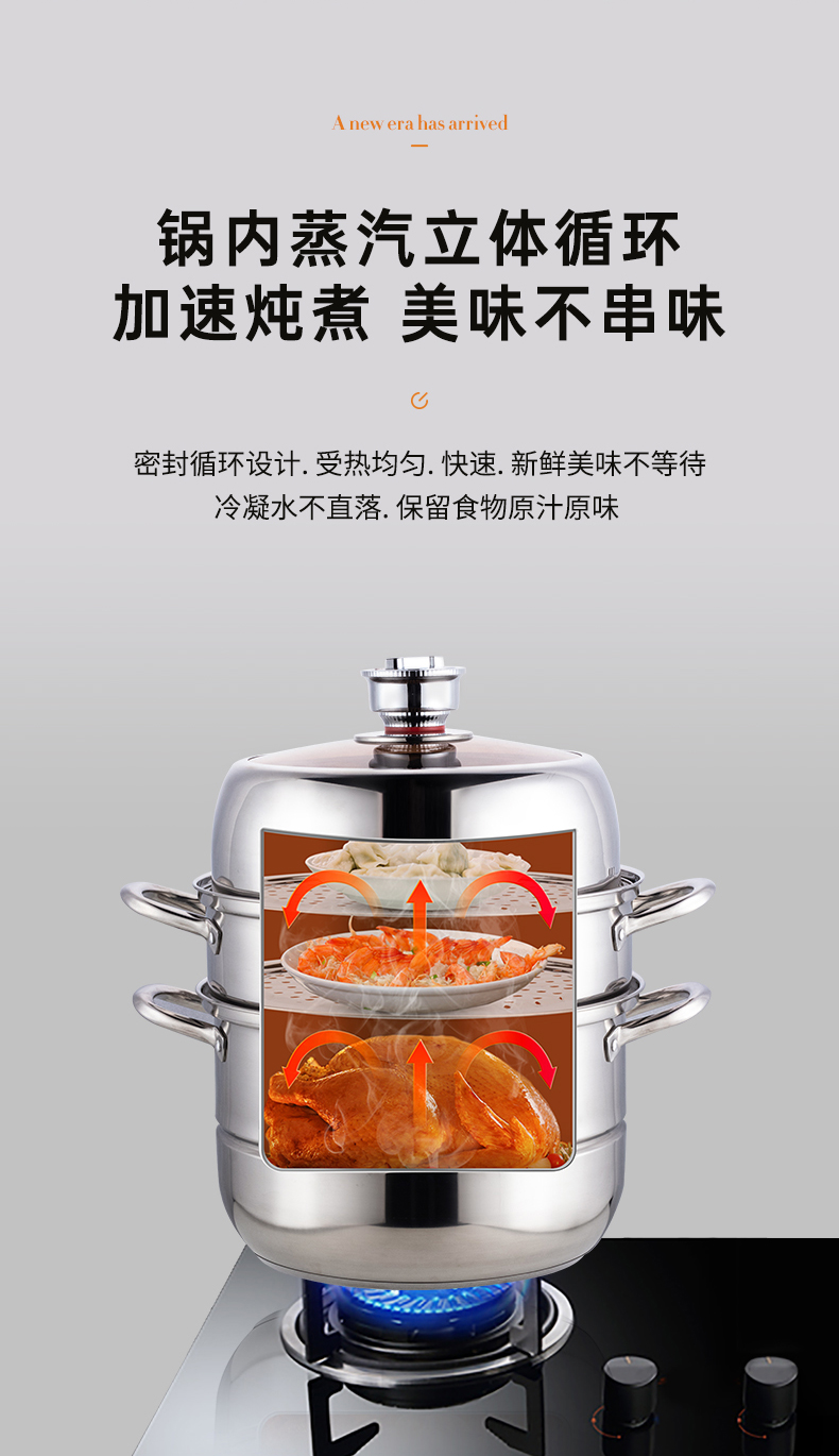 德国弗利达自带定时器的304不锈钢加厚款多层蒸锅