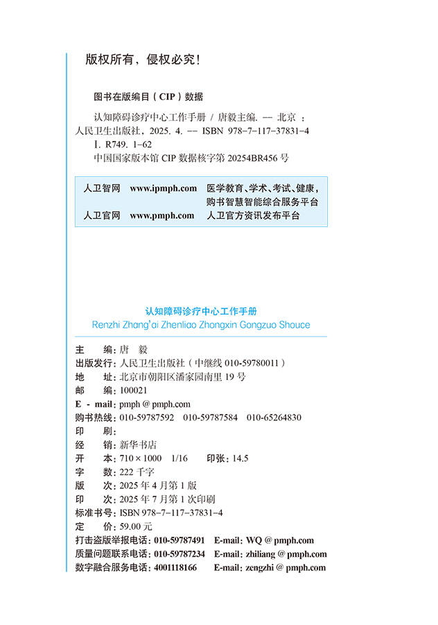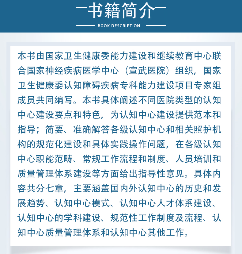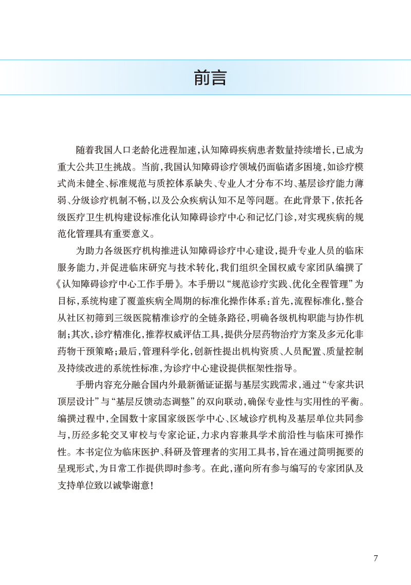 书名:认知障碍诊疗中心工作手册(培训教材/其他培训教材/其他培训教材)