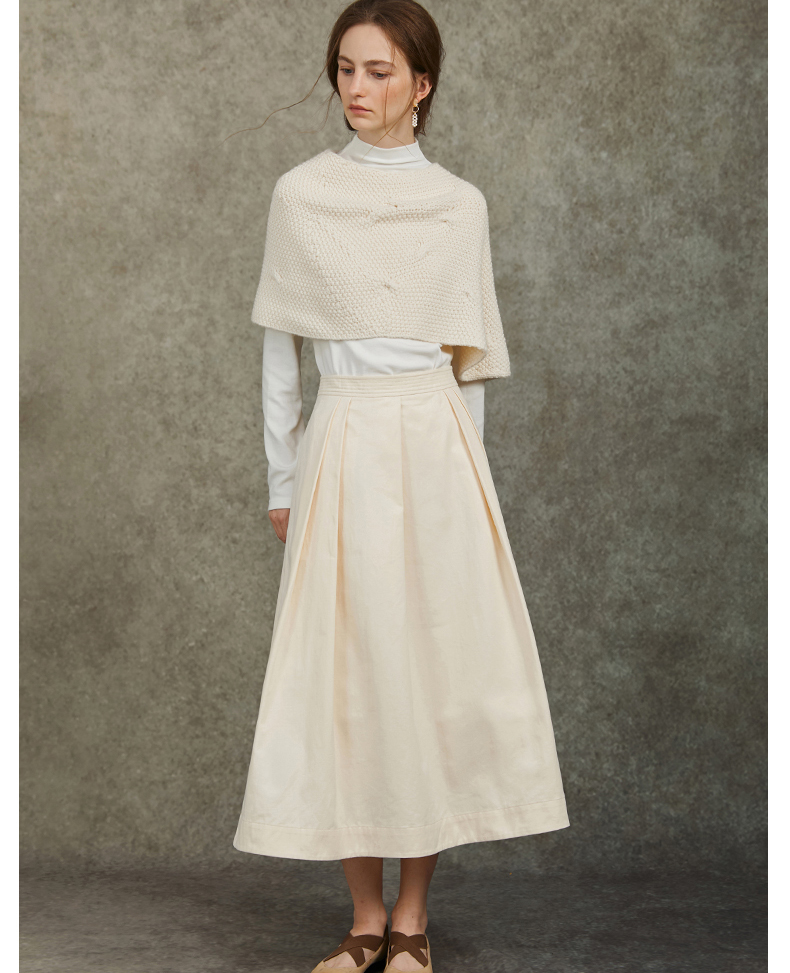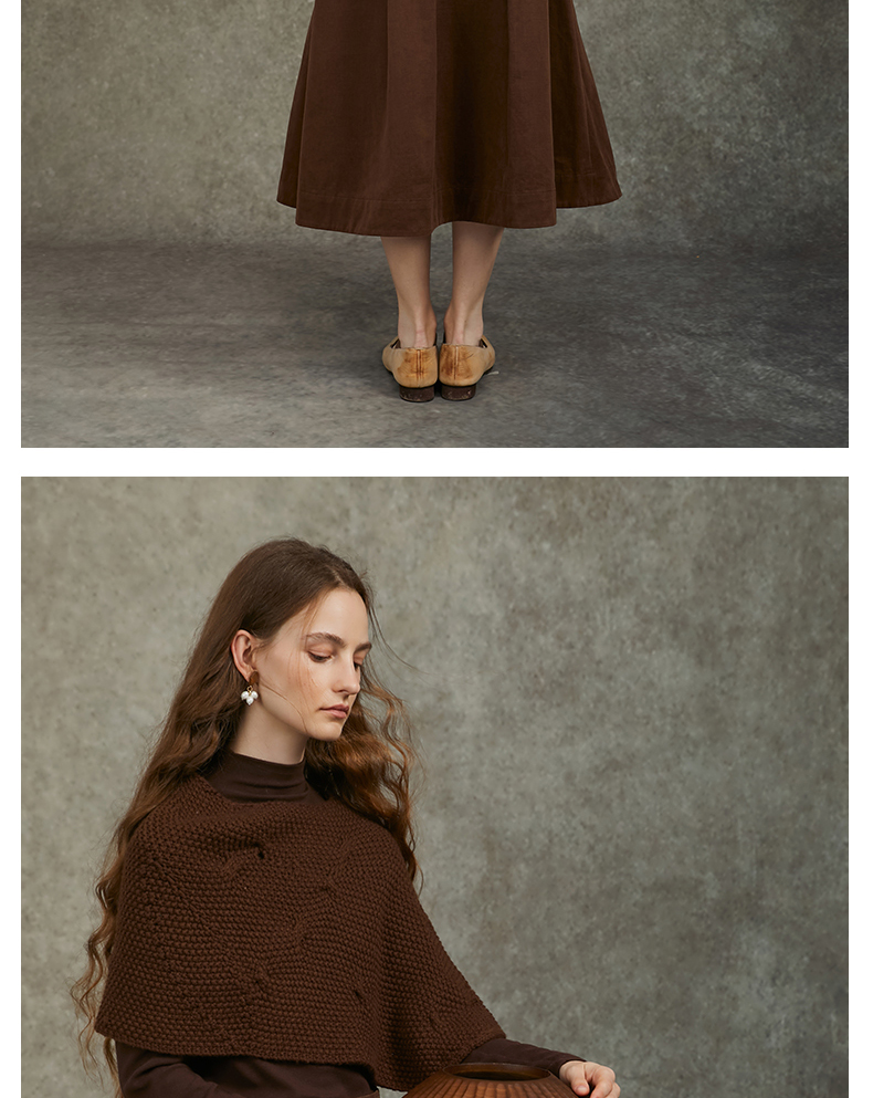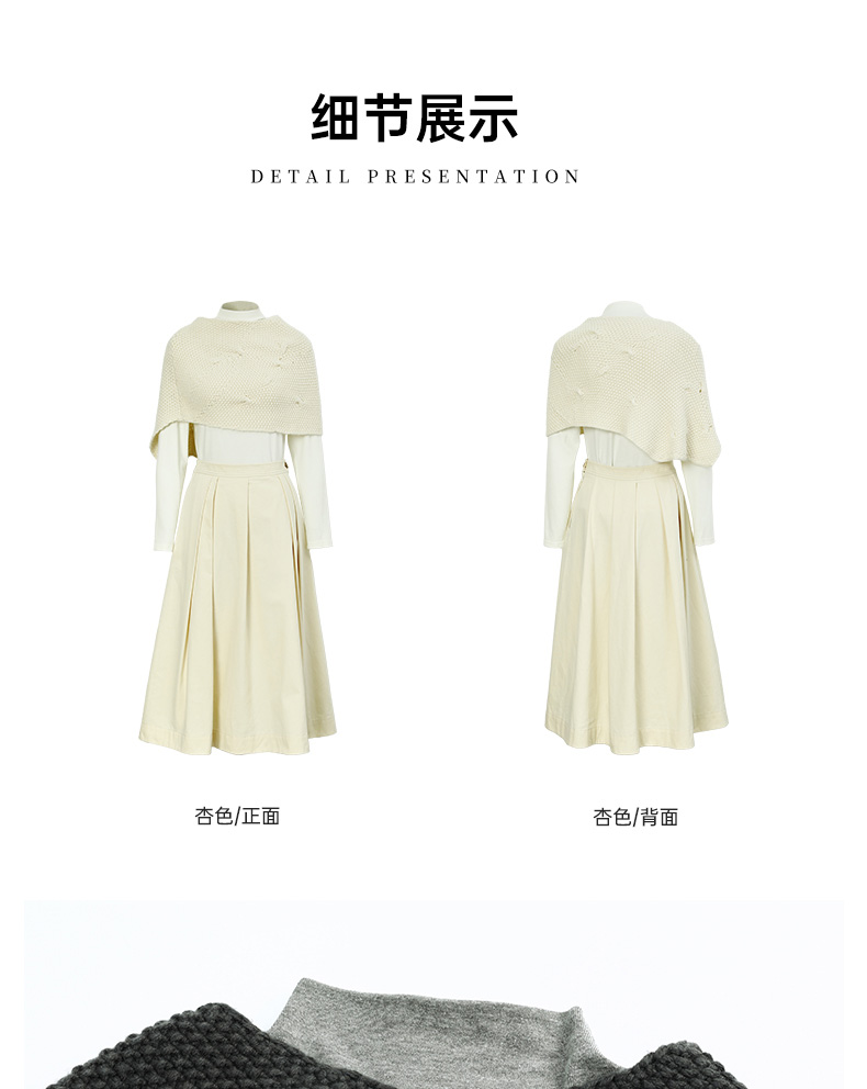 Famecoco范可儿文艺风半身裙羊毛针织衫外搭三件套FAC6EA008