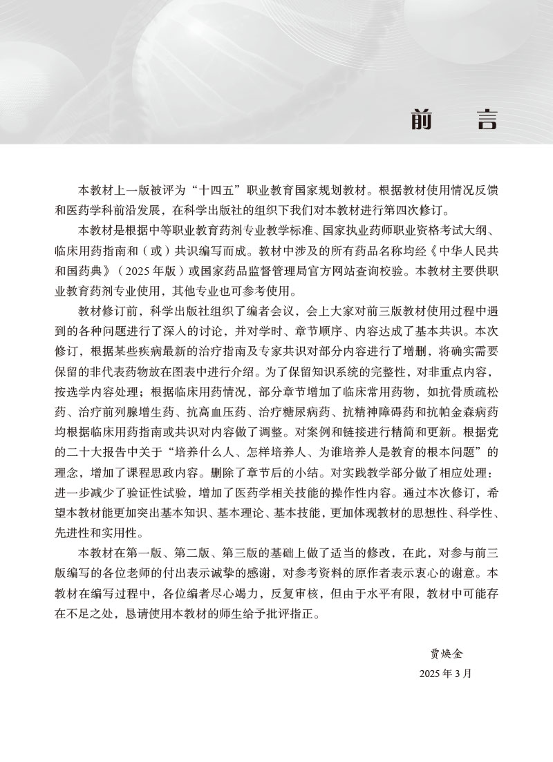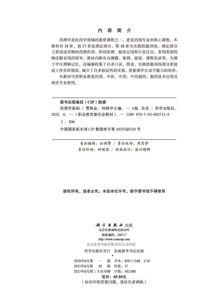 药理学基础 第4四版 贾焕金 何树华 主编 供职业教育药剂中医中药中药制药制药技术应用及相关专业使用 9787030827128科学出版社